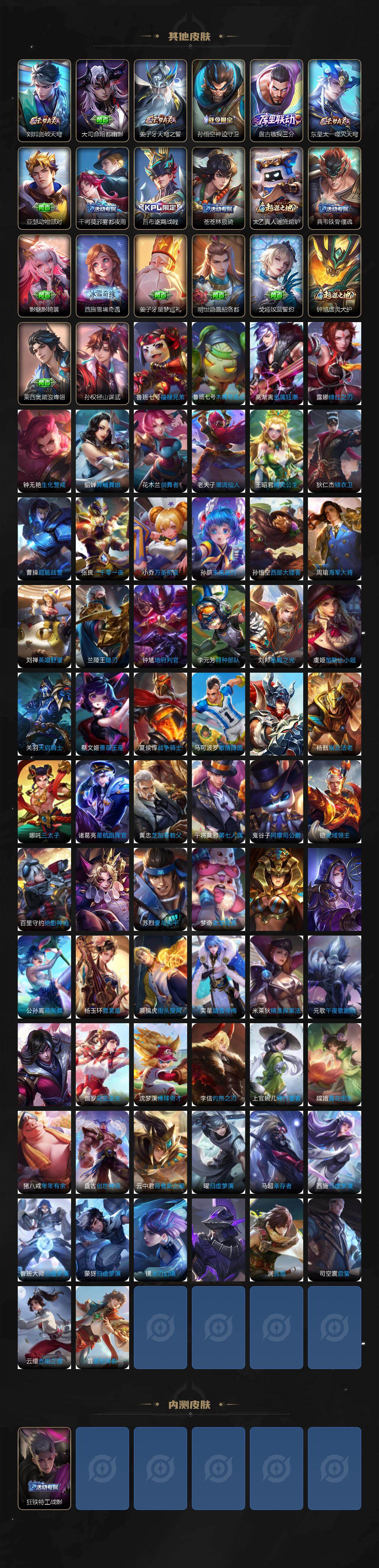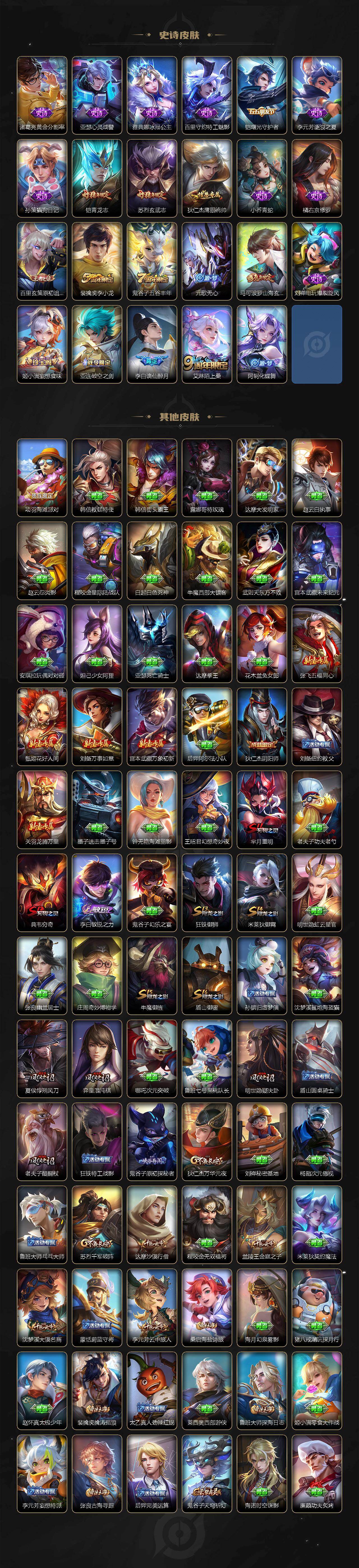 【限定皮肤】:姜子牙天穹之誓,李白谪仙醉月,狄仁杰阴阳师,赵云皇家上将,芈月重明,