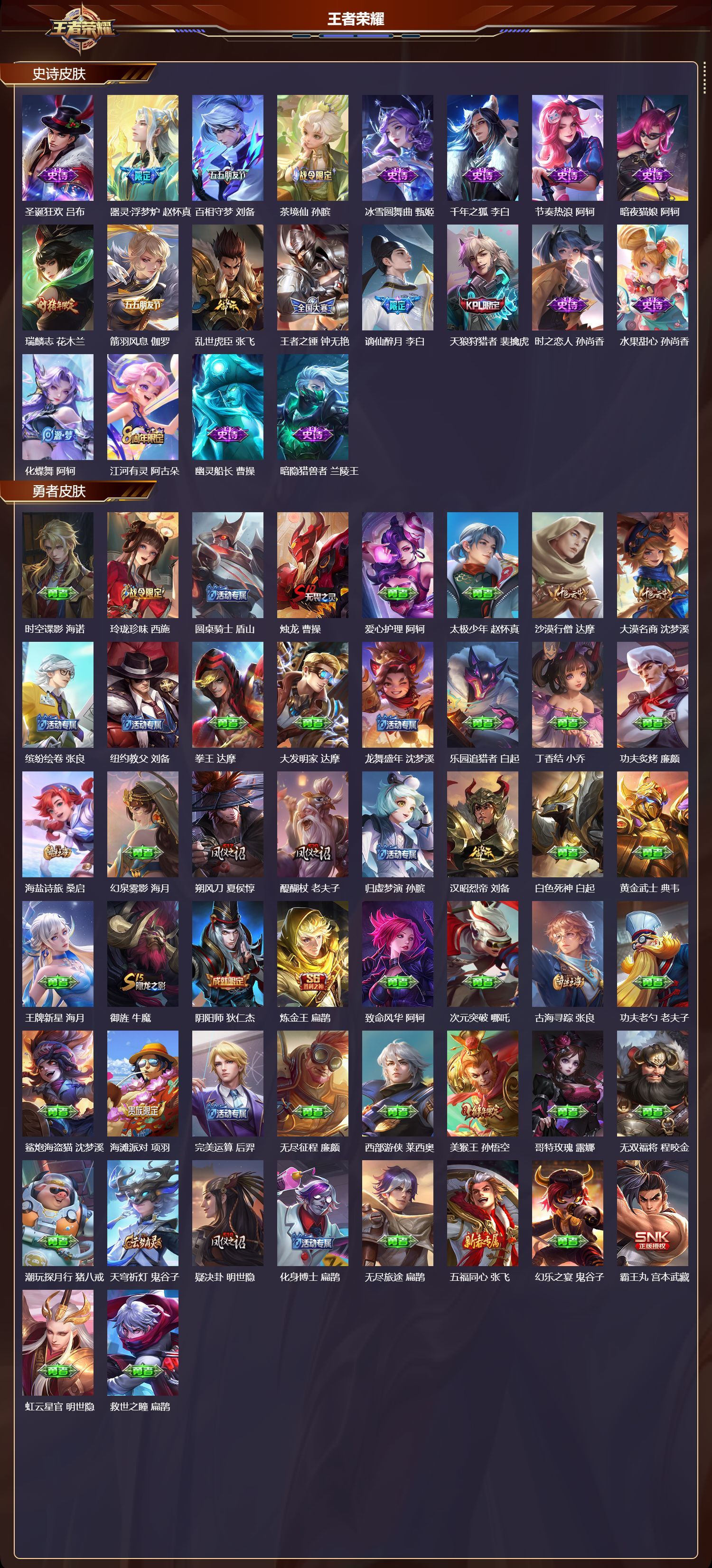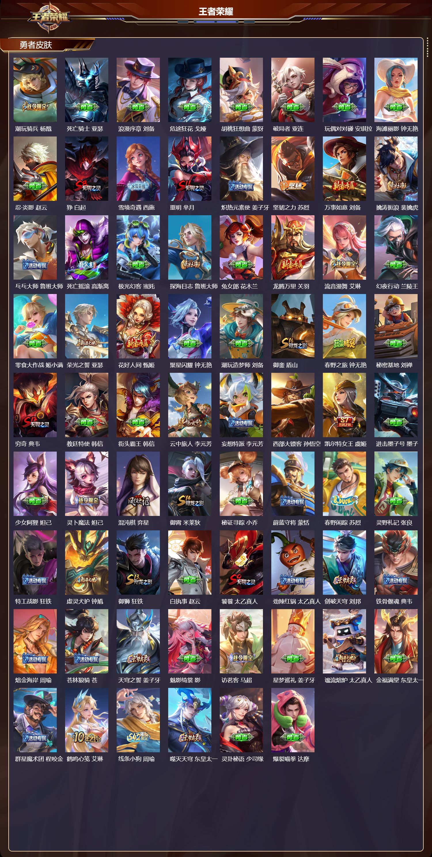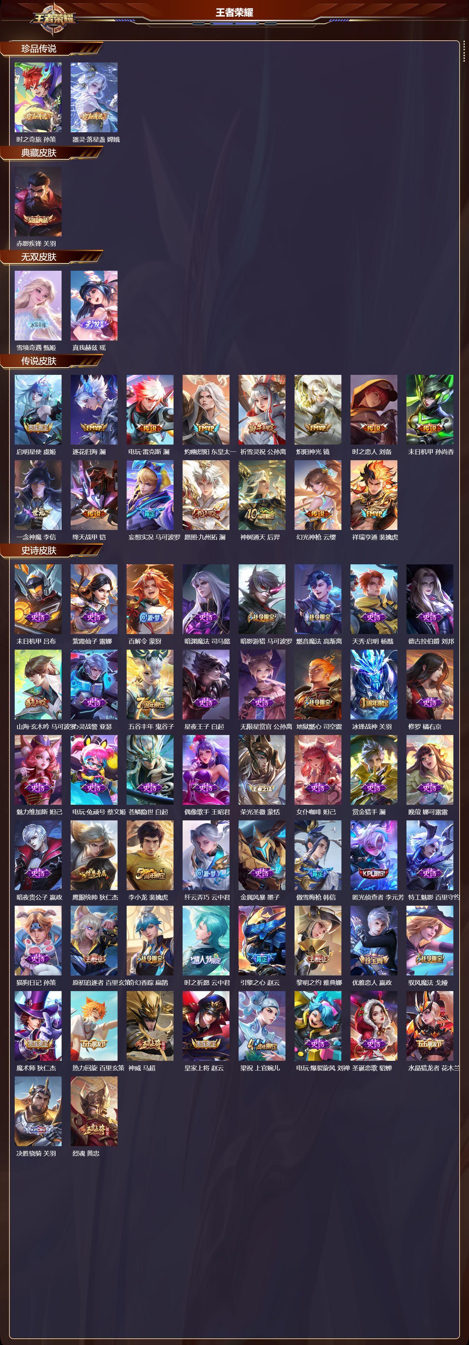 安卓QQ/尊贵铂金/254皮肤/127英雄/1典藏/0珍品无双/2无双/2珍品传说/15传说/70史