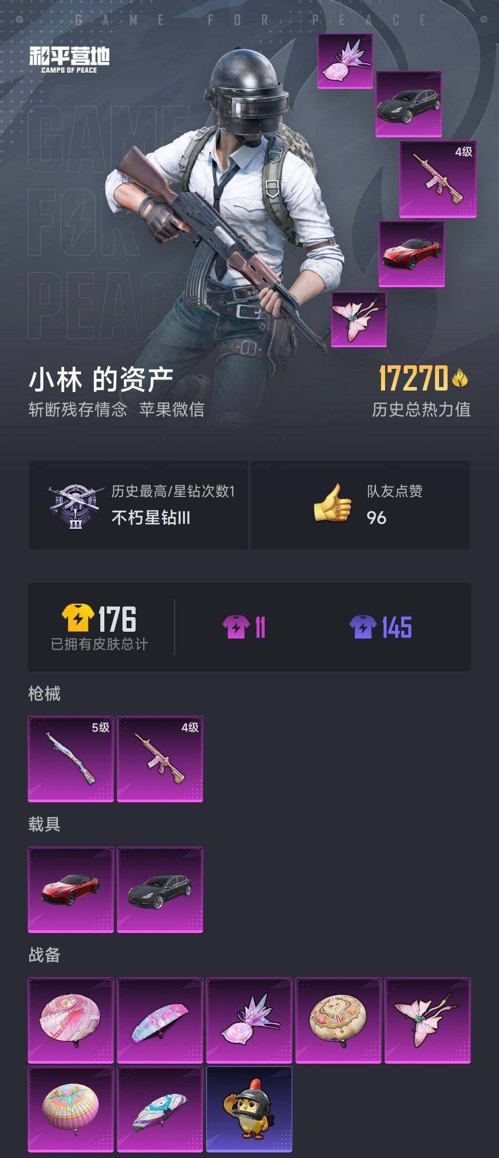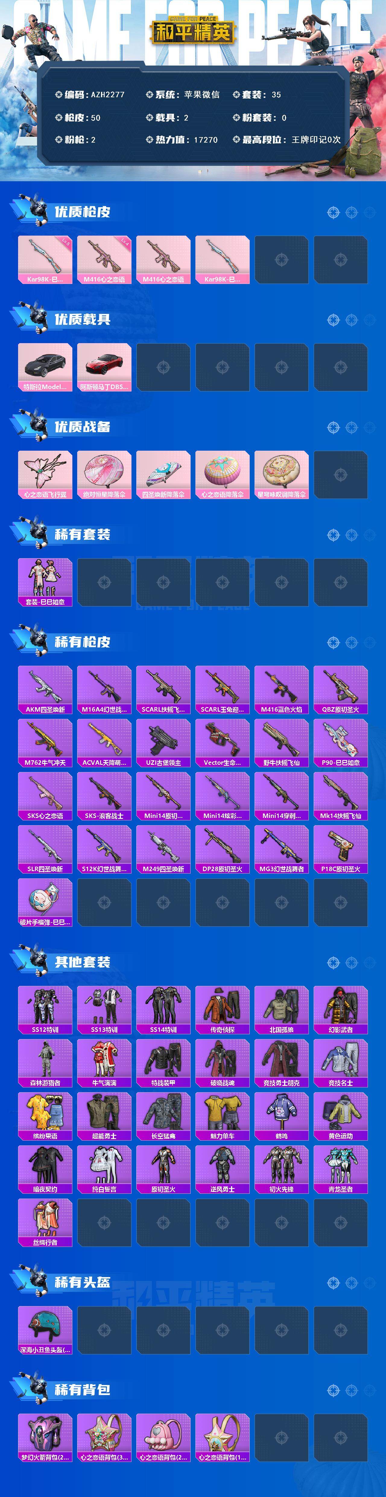 【AZH2277】苹果 微信【四级心之恋语M416 心之恋语背包 心之恋语飞行翼 2载具】0粉装-2特效枪-2载具-2粉色飞行器-17270热力值-2王牌印记-35套装-50枪皮