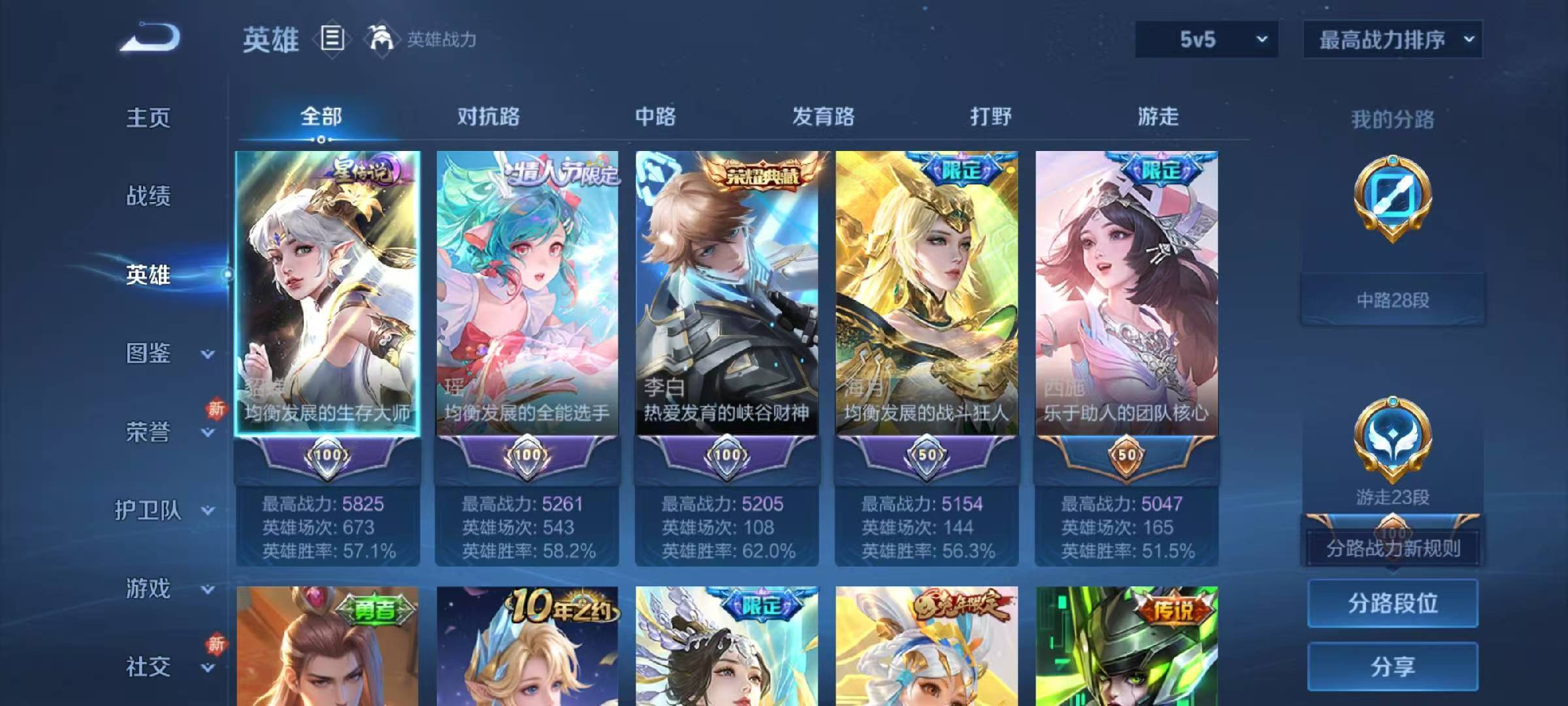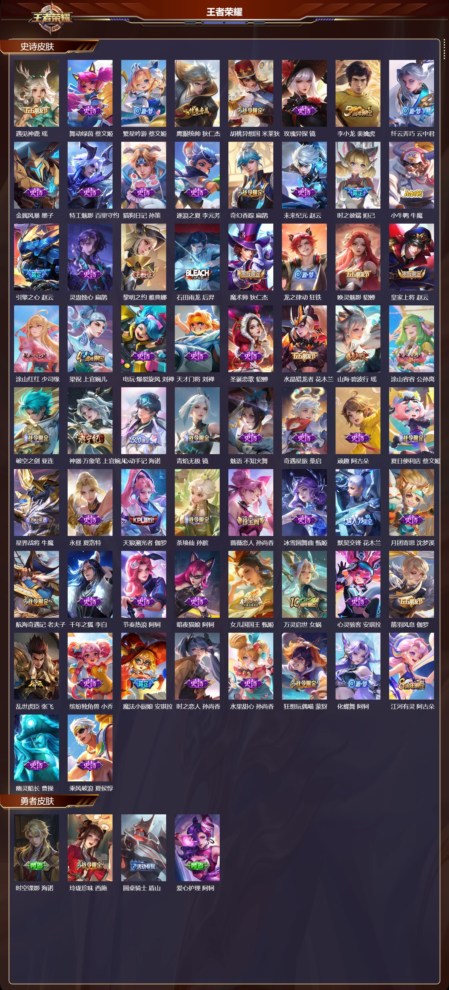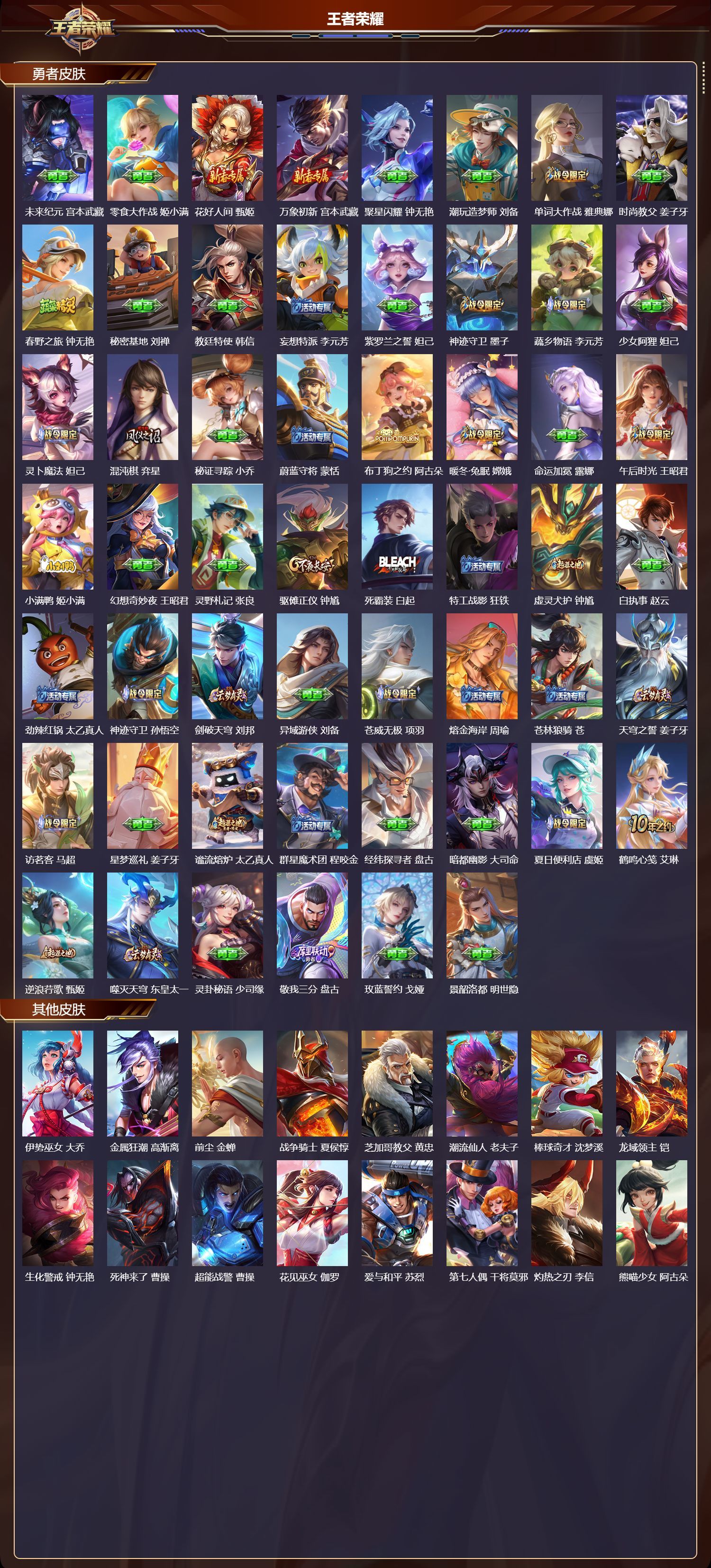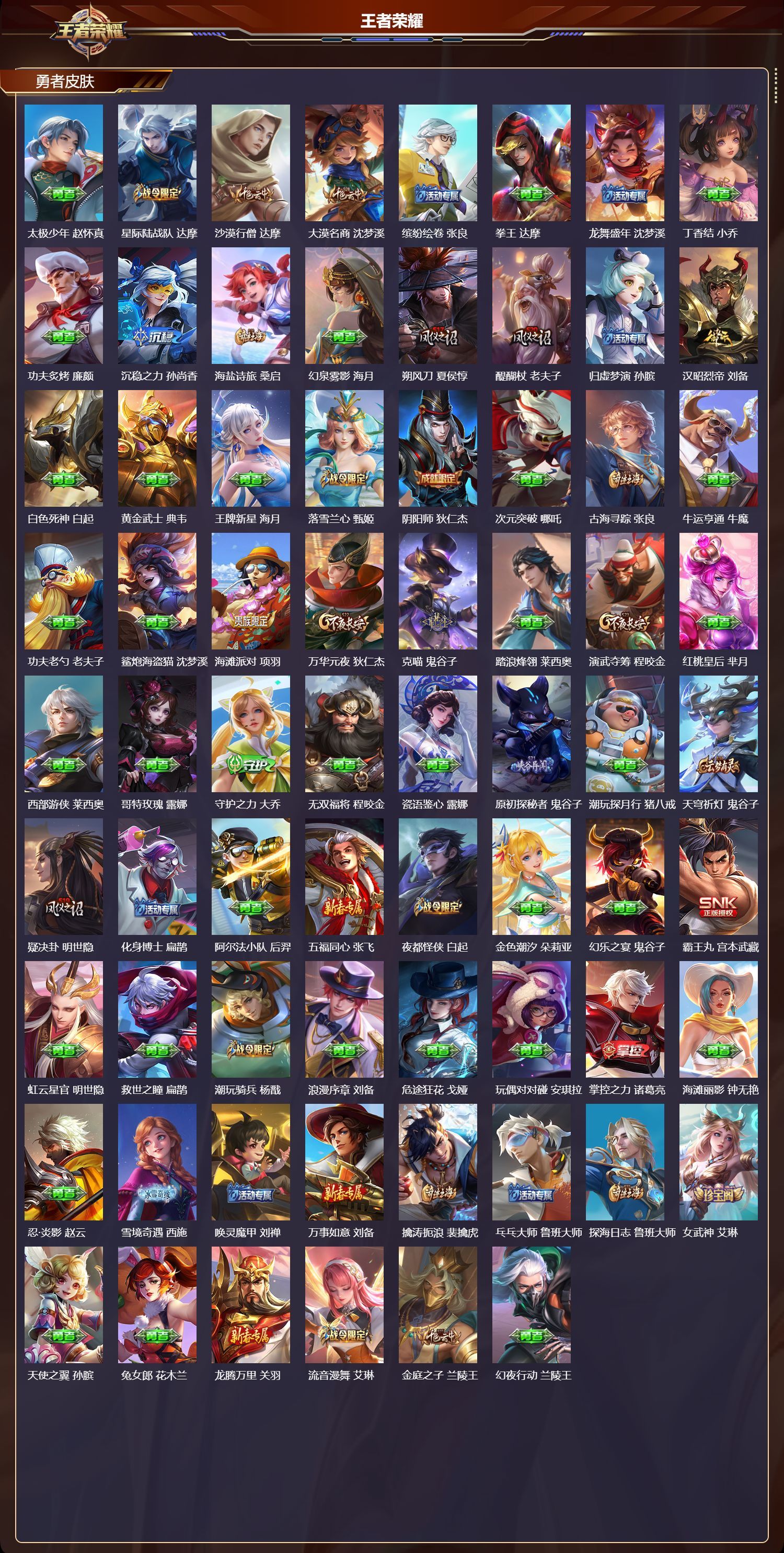 安卓QQ/无双王者/320皮肤/126英雄/2典藏/0珍品无双/0无双/2珍品传说/29传说/103