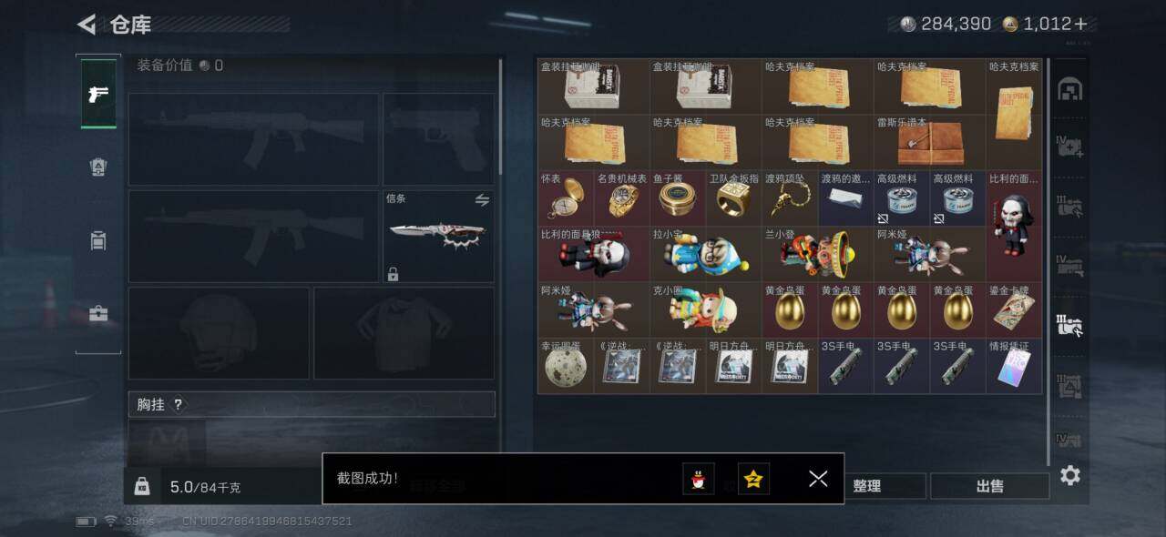 总资产(M):142M/哈夫币(K):284K/传说枪皮数:13/全面战场等级:43_段位:尉官/烽火地带等级:60_段位:黑鹰/