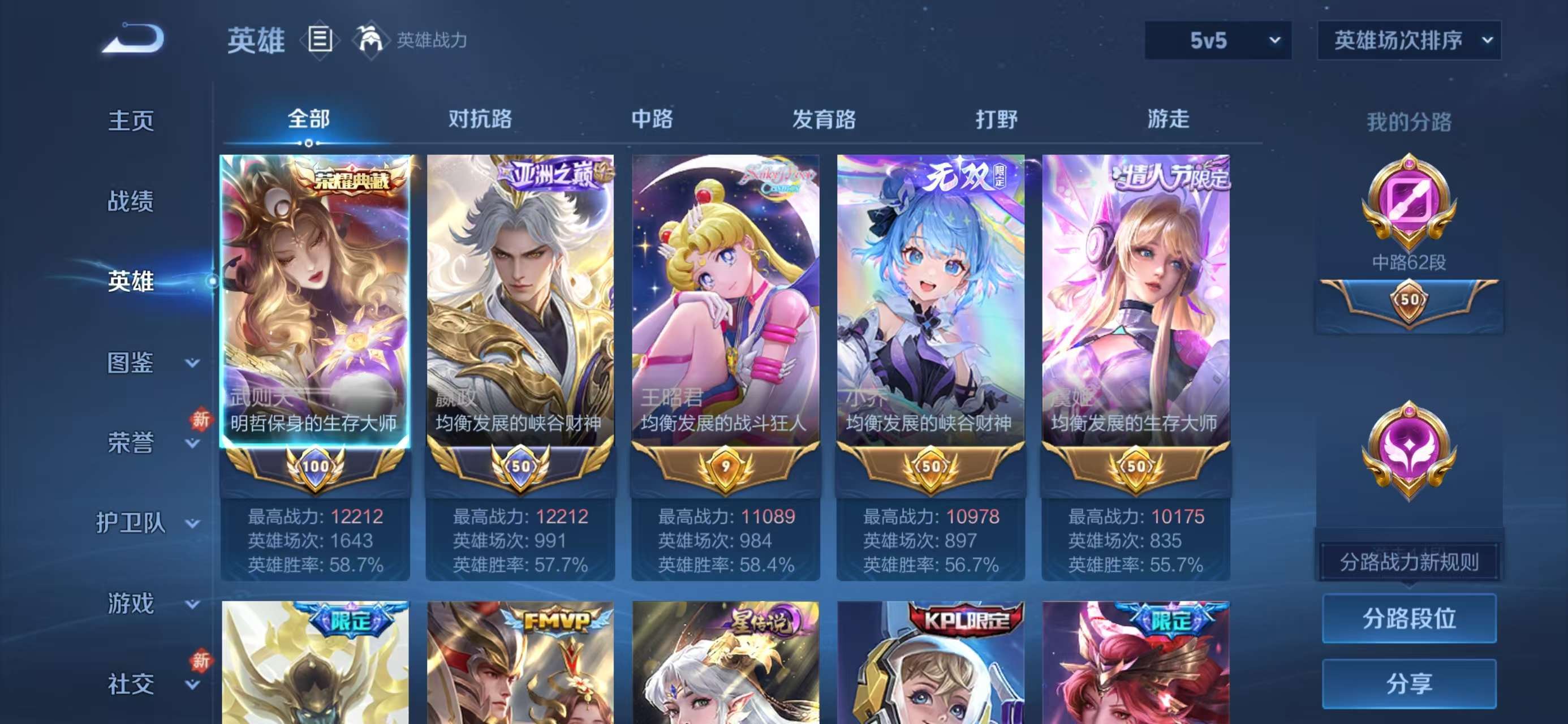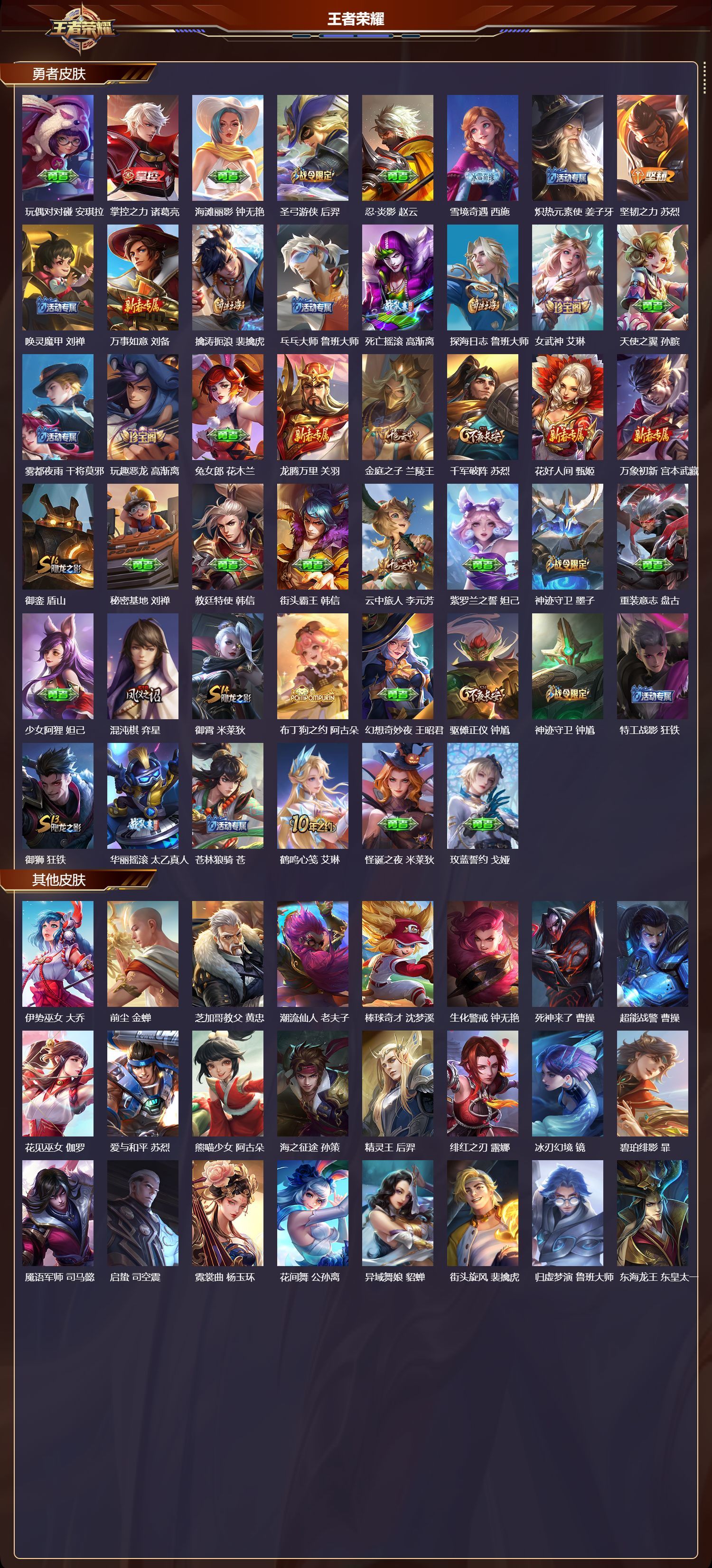安卓QQ/传奇王者/236皮肤/127英雄/1典藏/0珍品无双/2无双/2珍品传说/20传说/63史