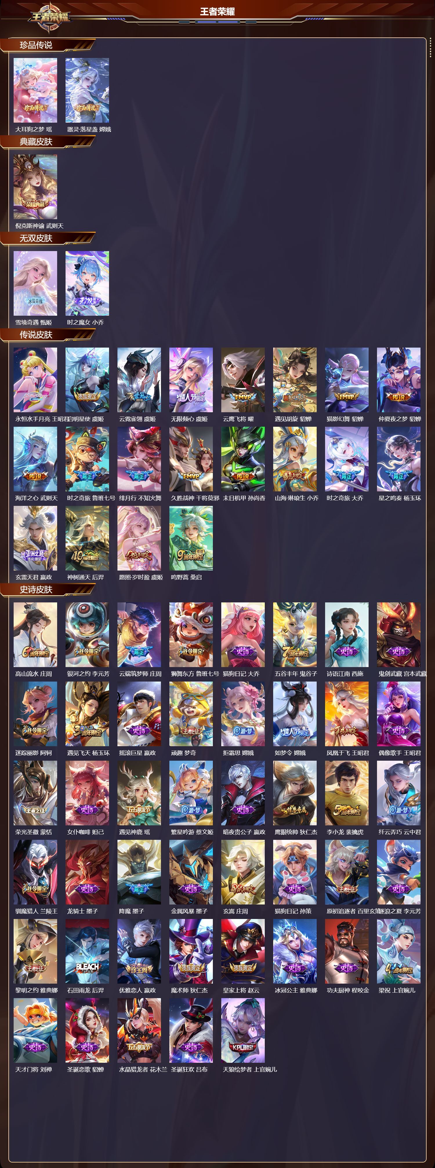 珍品传说皮肤: