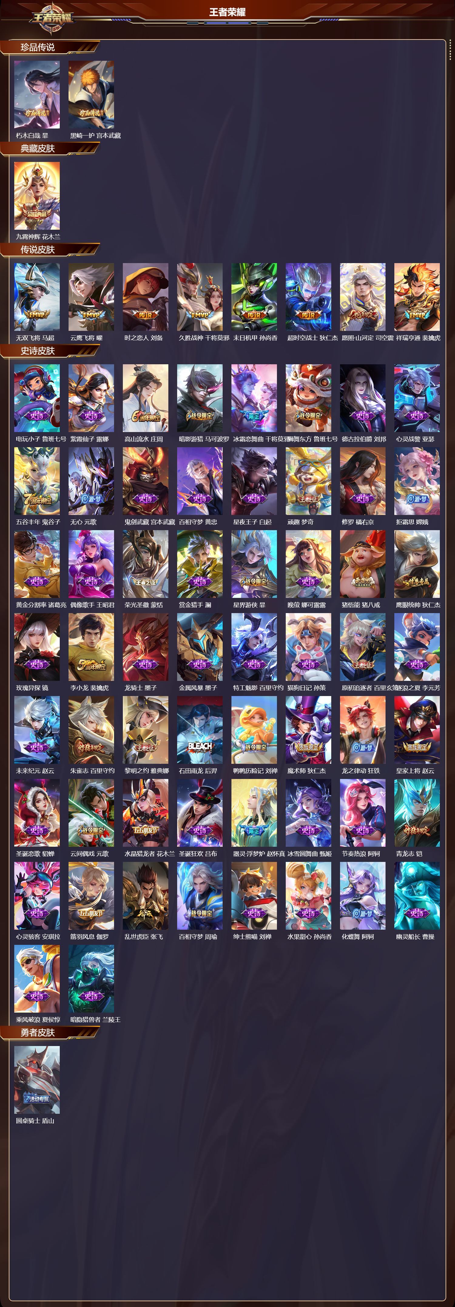 安卓QQ/至尊星耀/222皮肤/125英雄/1典藏/0珍品无双/0无双/2珍品传说/8传说/58史诗