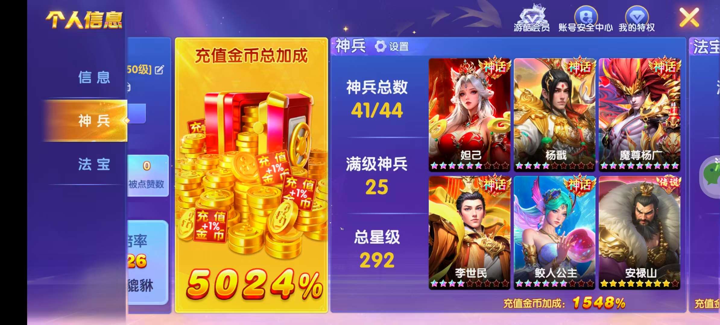 极品V16文字号40万启动资金带357转轮币,2神话羁绊,几千绿卷,基本全满,充值加成 5000多