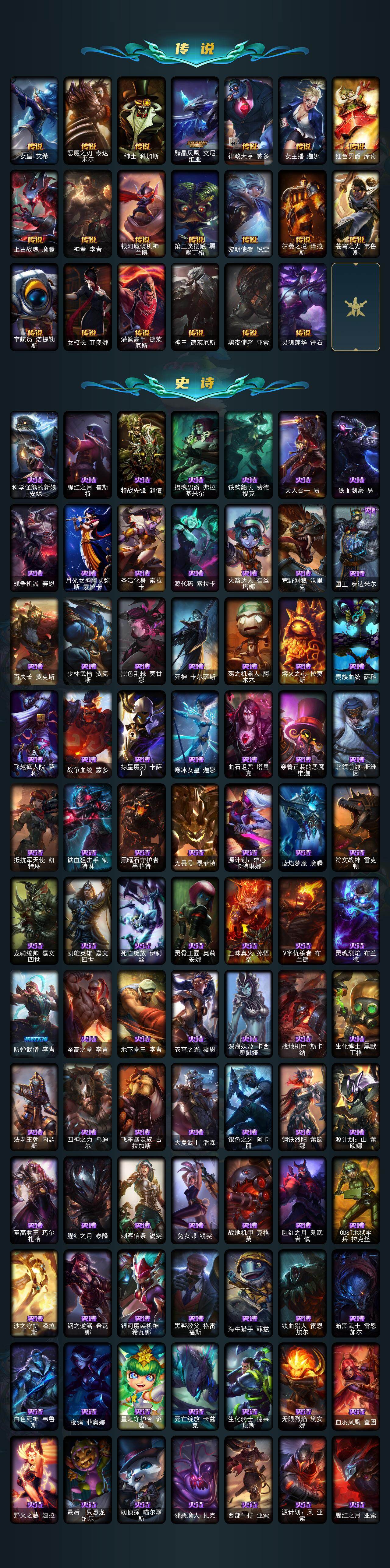 163英雄/337皮肤/1终极/2神话/61限定/2臻彩/40炫彩/27传说/95史诗/未定级/