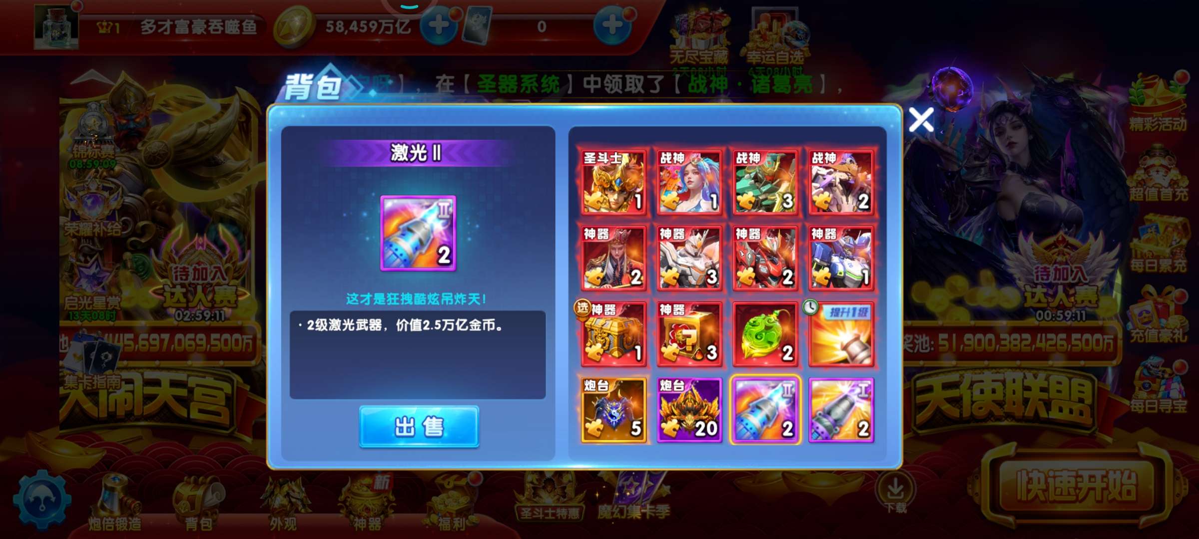 584万亿 60炮 带滋炮台 巅峰12级 5级狂2天 狂暴4259 核弹23 激光4