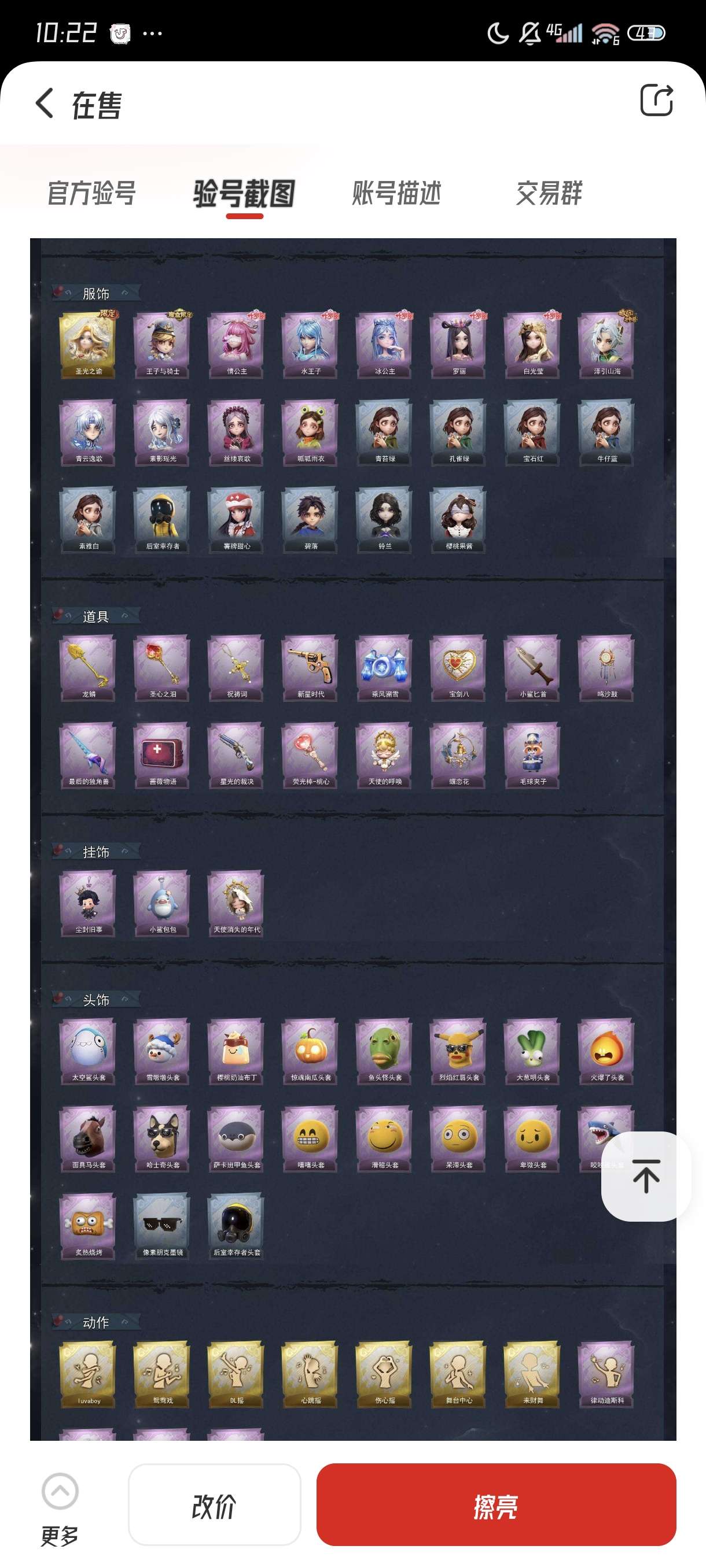 通过App,与卖家商议价格及保险,并向卖家索要账号最新截图,确认后下单购买。