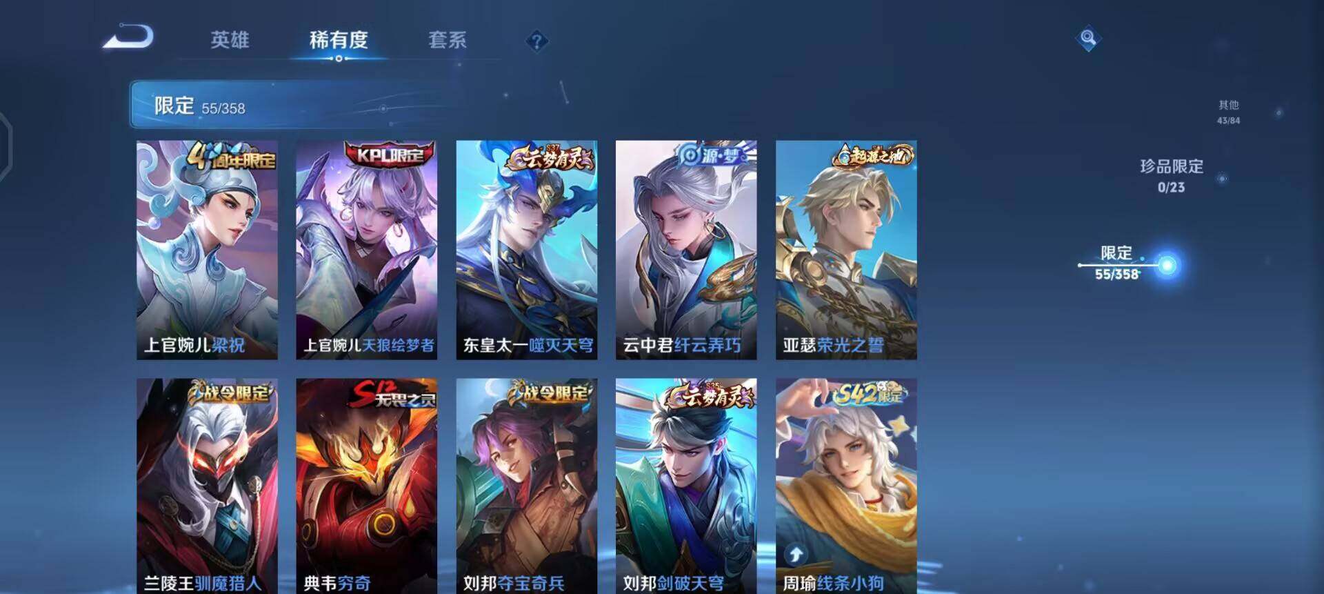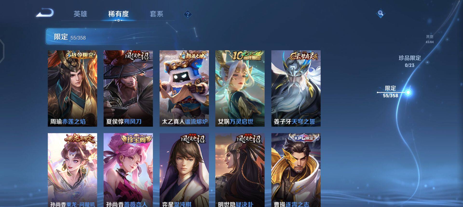 【限定皮肤】:蒙犽顽岩魄,姜子牙天穹之誓,狄仁杰阴阳师,赵云皇家上将,孙尚香蔷薇恋人,鲁班七号狮舞东方,阿轲迷踪丽影,周瑜赤莲之焰,