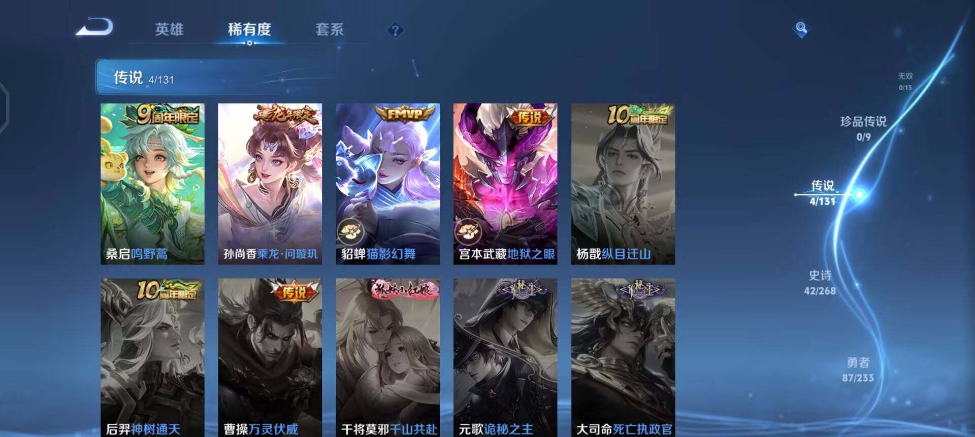 【传说皮肤】:桑启鸣野蒿,孙尚香乘龙问璇玑,貂蝉猫影幻舞,宫本武藏地狱之眼