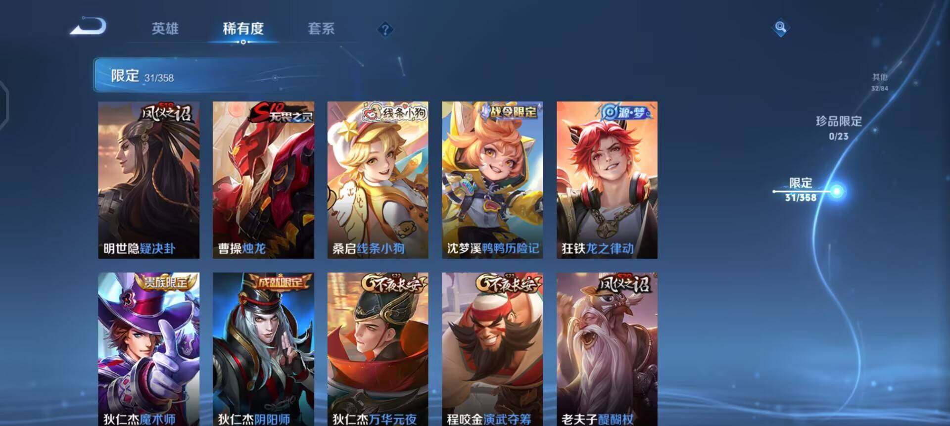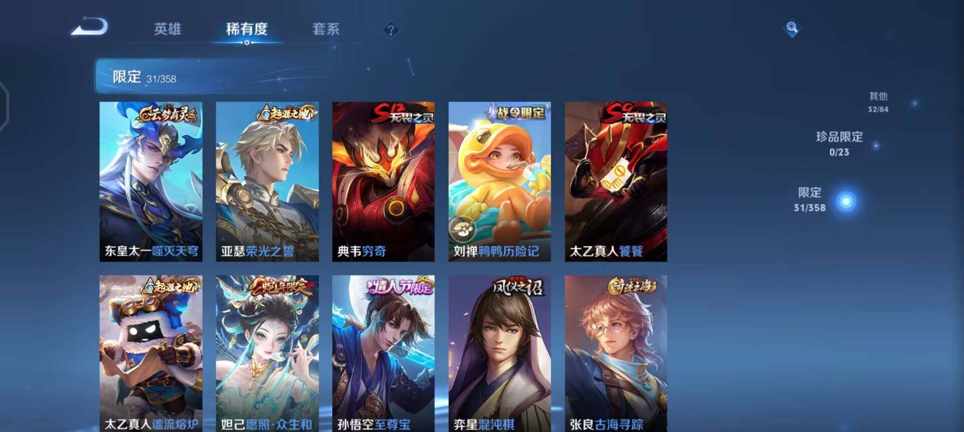 【限定皮肤】:狄仁杰阴阳师,赵云皇家上将,赵云龙胆,芈月重明,