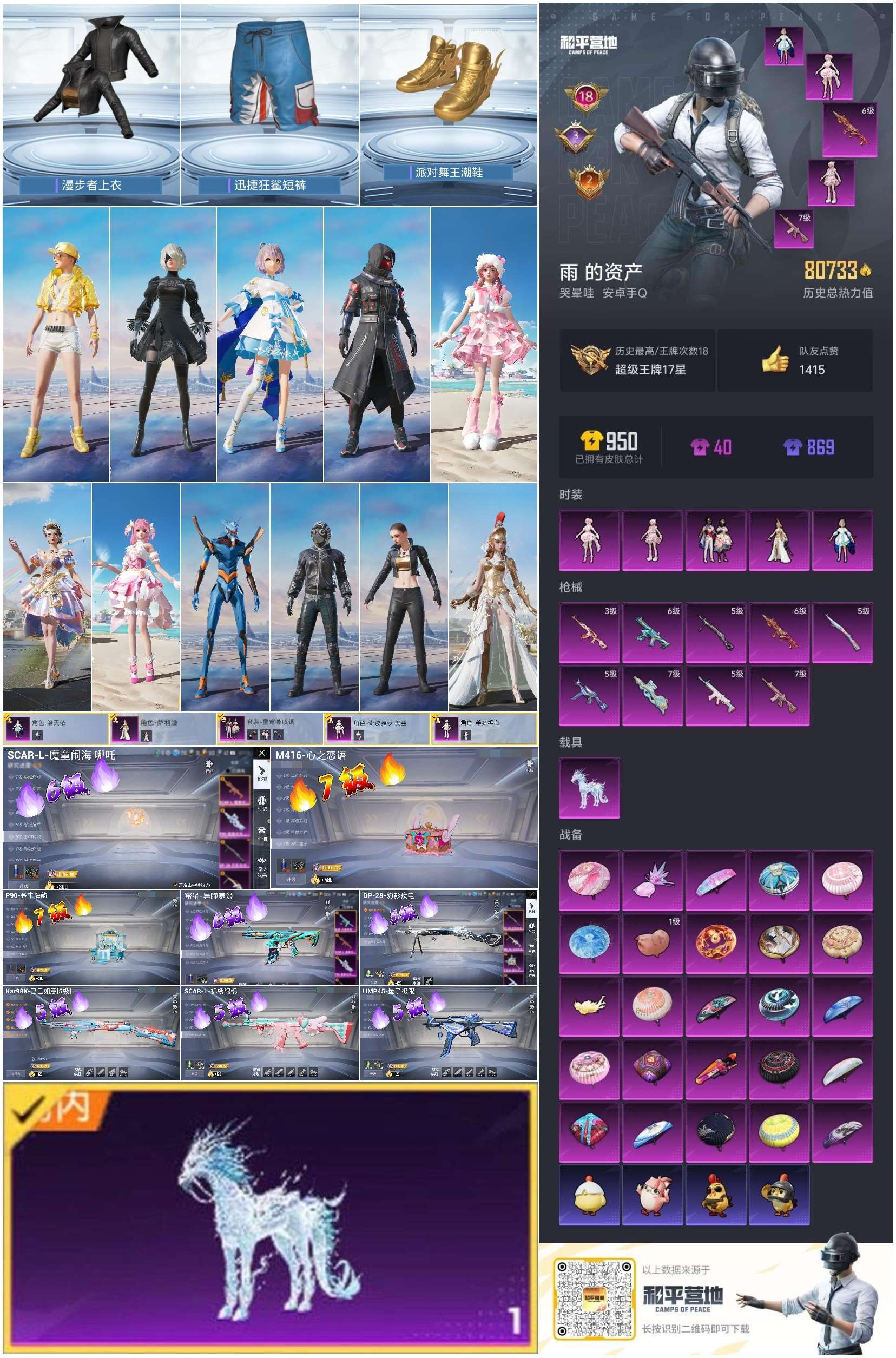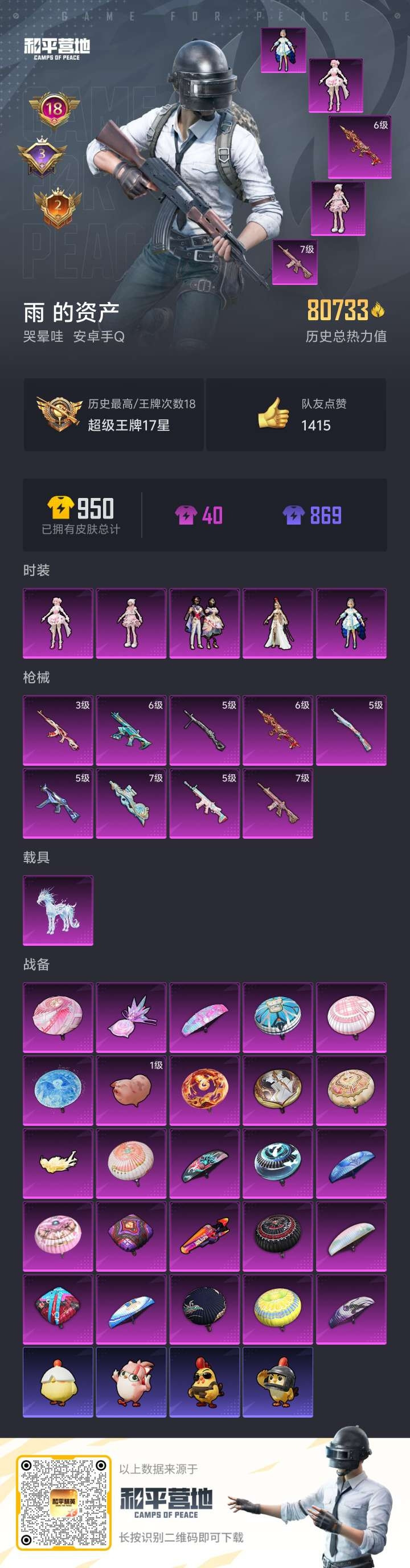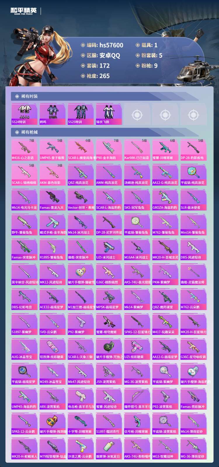 hs57600 安卓手Q-18王牌印记-5粉装-9特效枪-1载具-80781热力值-172套装-26