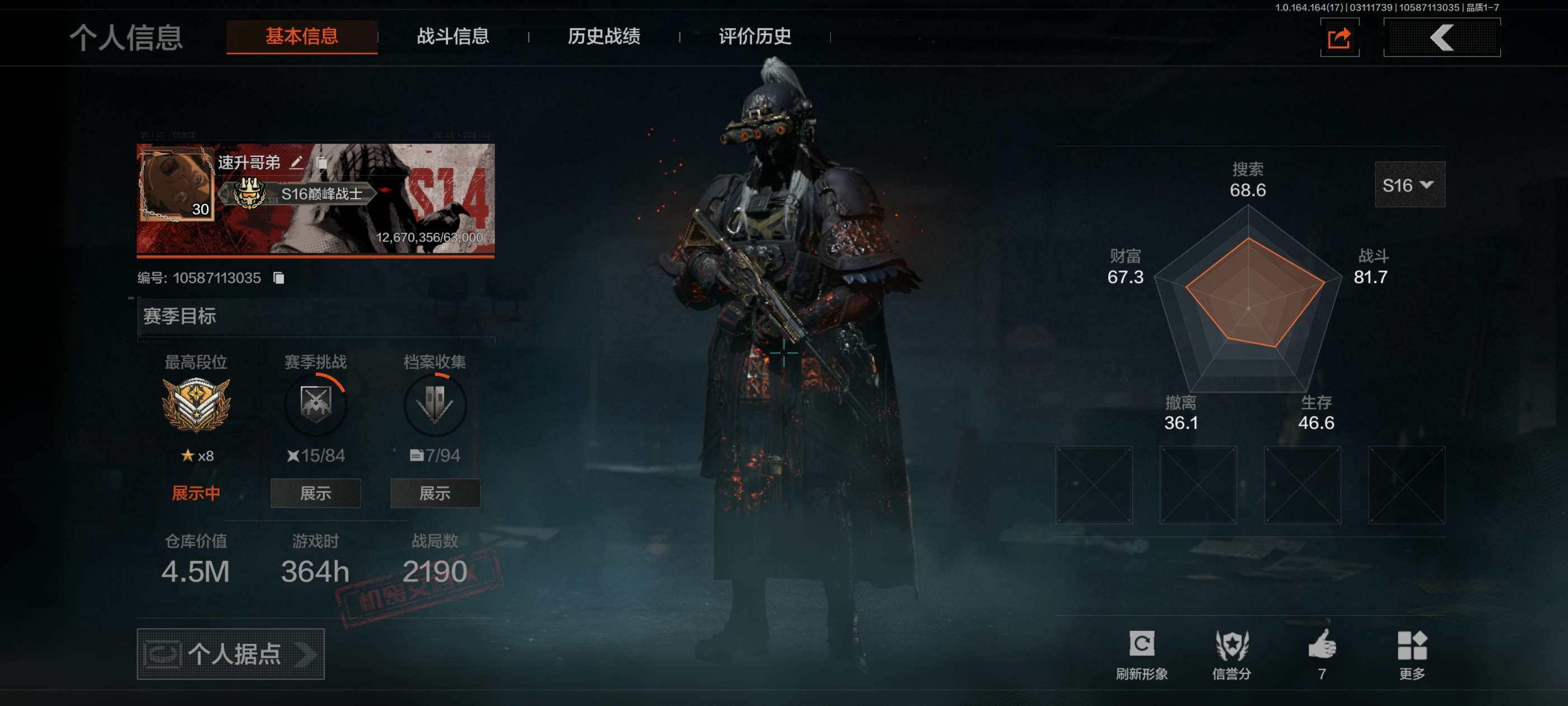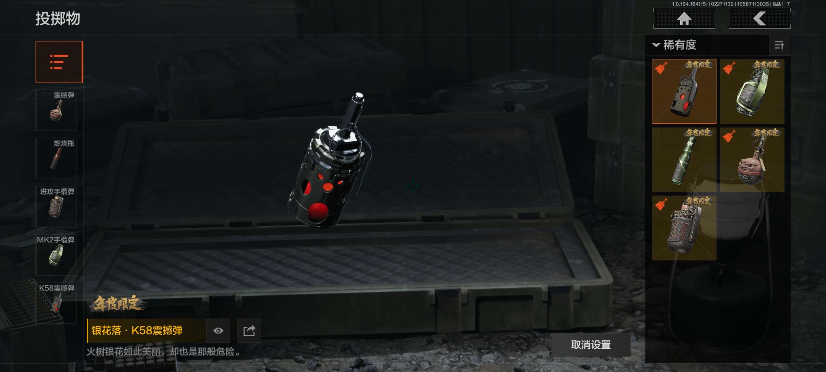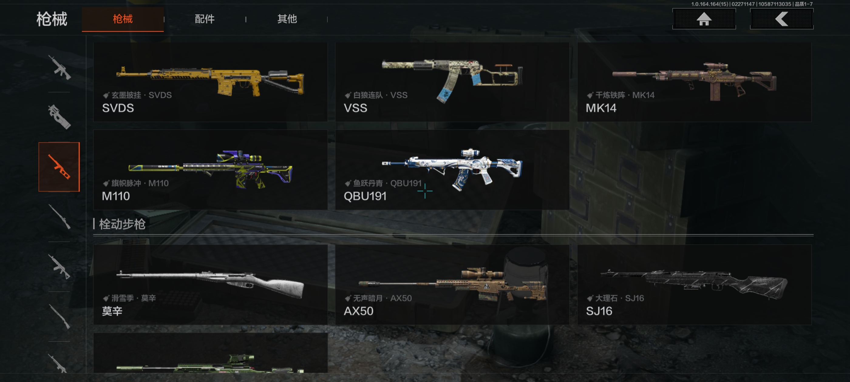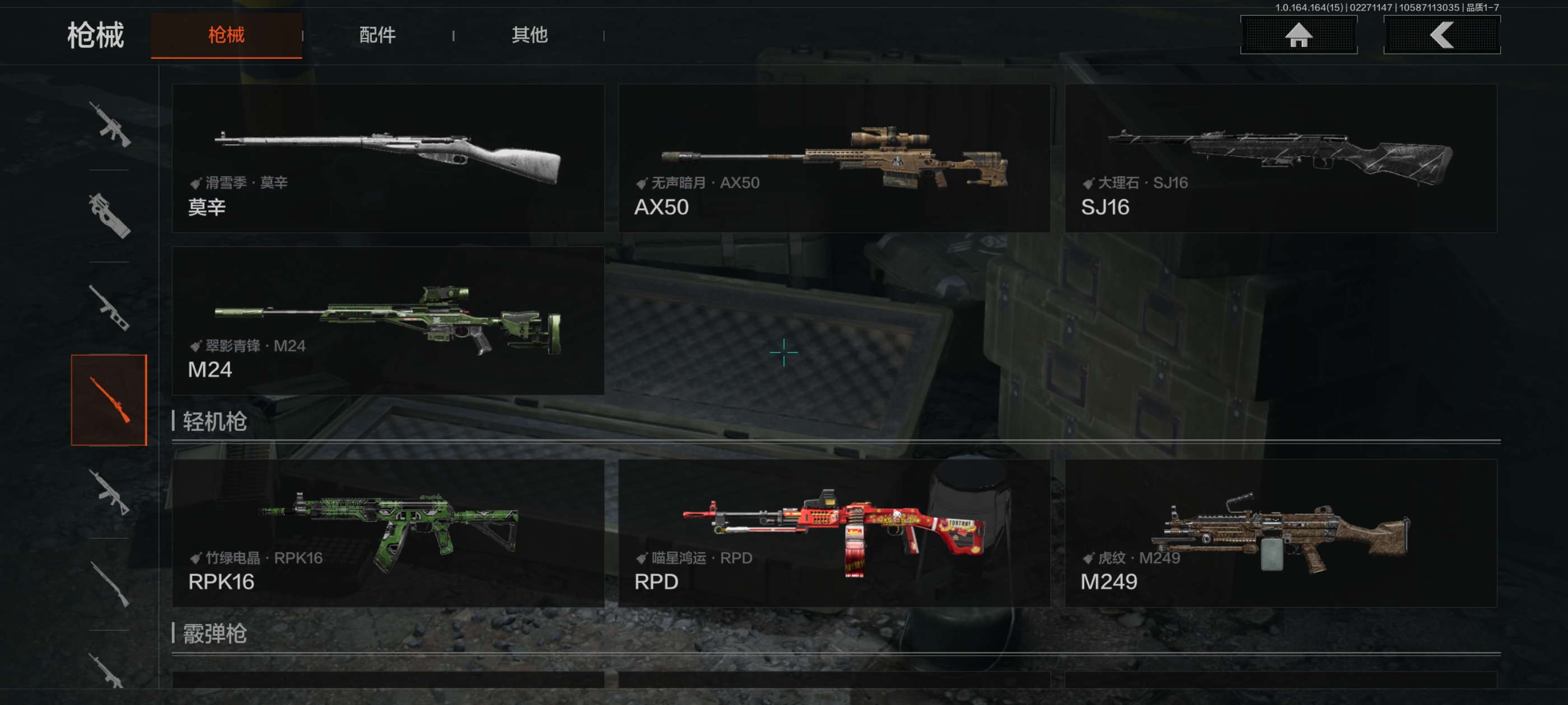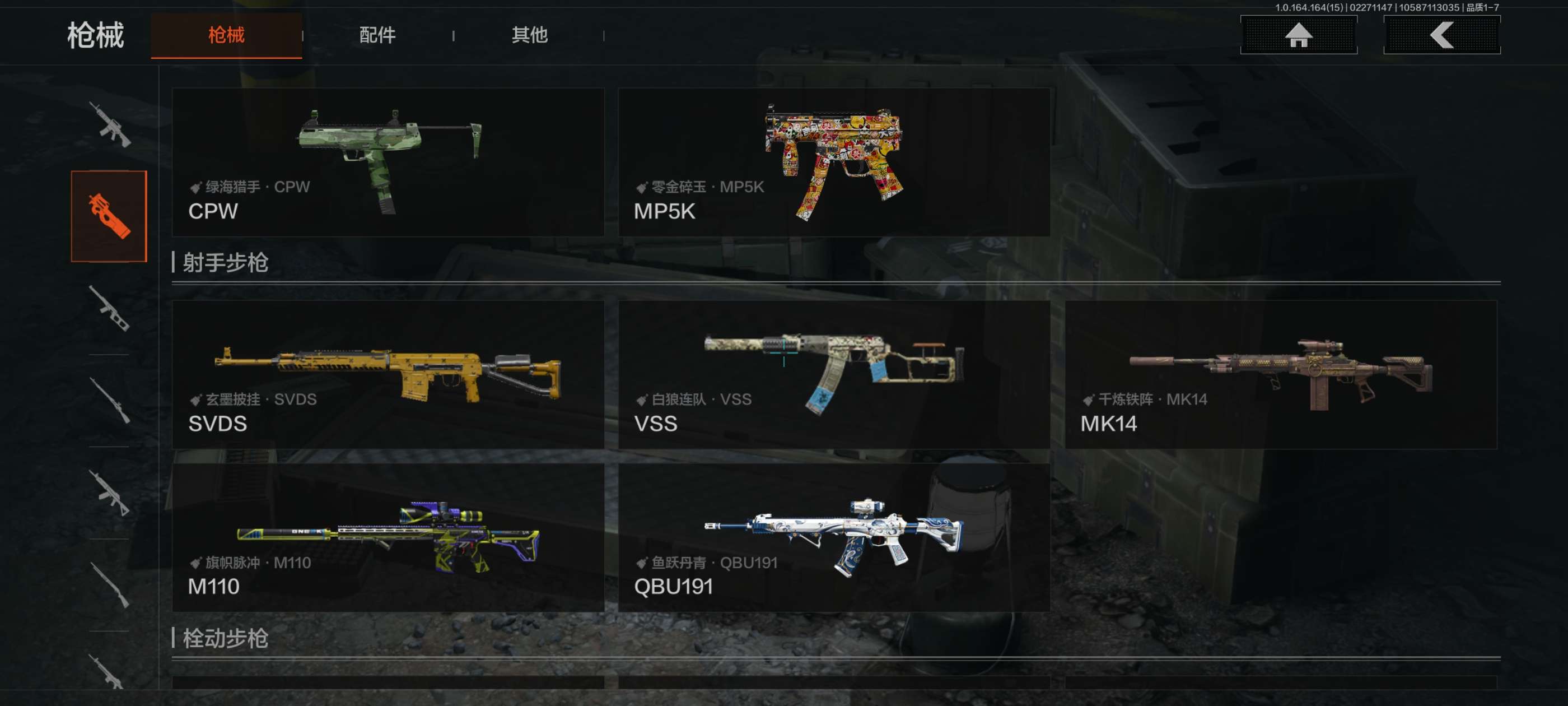 两个衣服,两个刀皮,还有个热成像皮肤,四五个金枪,若干紫皮