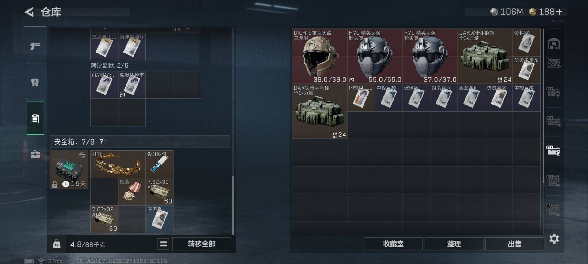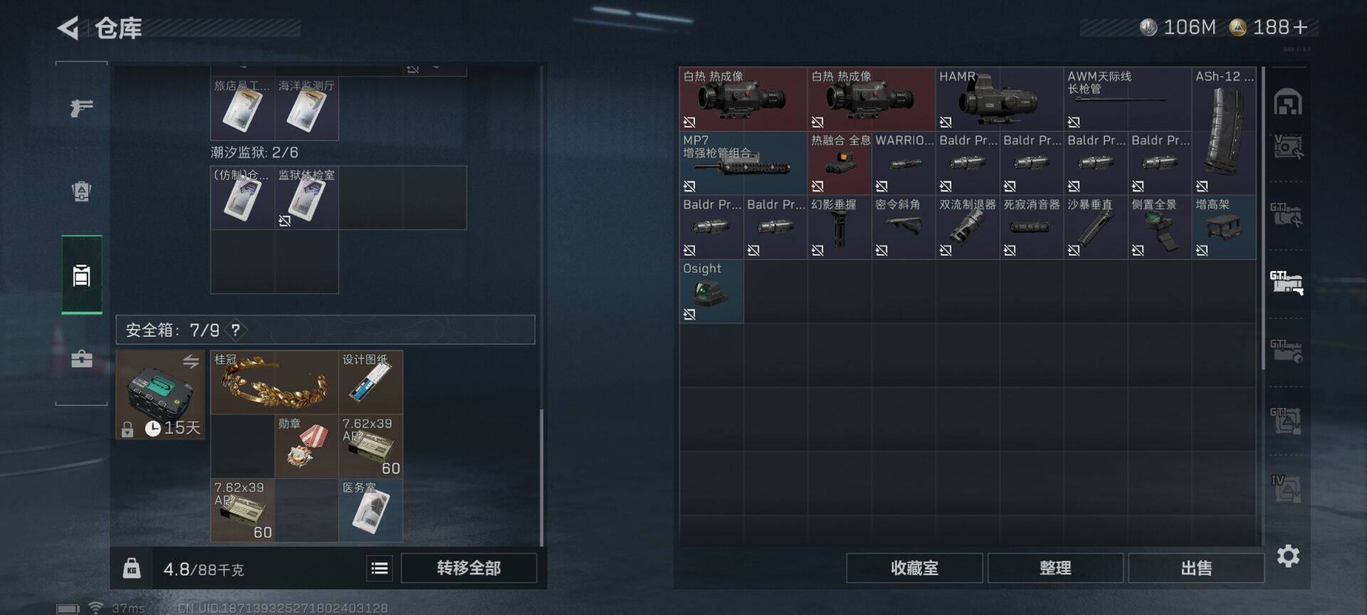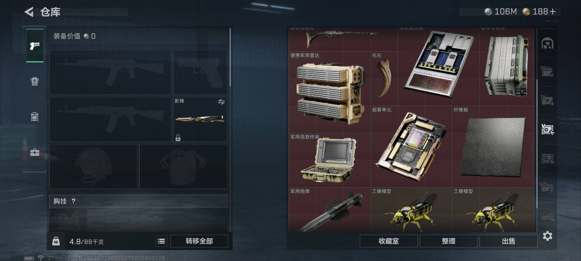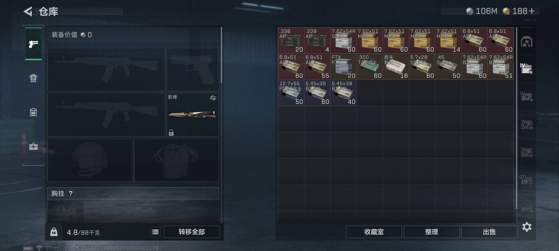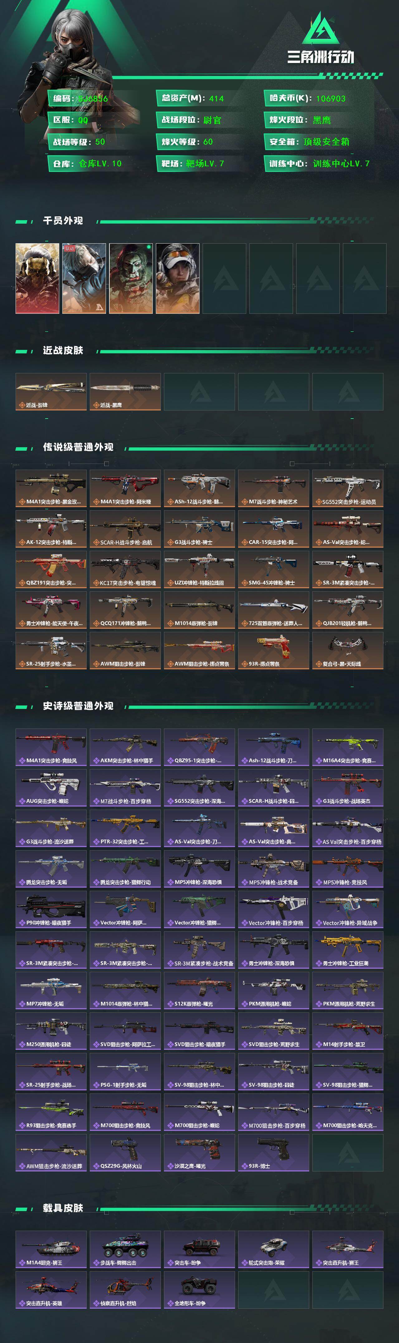 总资产(M):414M/哈夫币(K):106903K/哈夫币(K):106903K/传说枪皮数:25