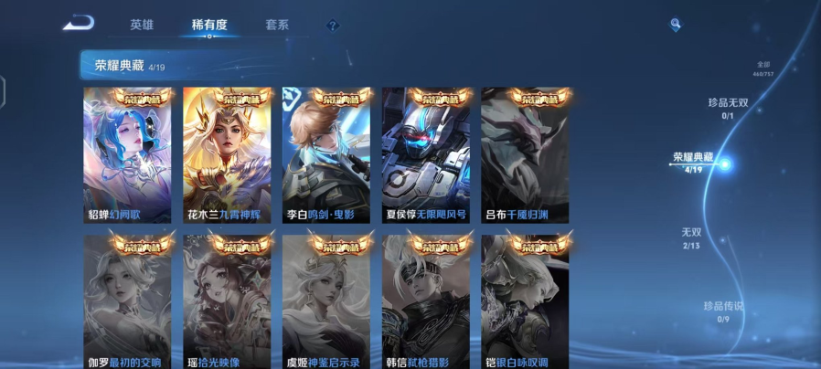 可二次【V10 460皮肤5水晶2无双3星元51传说2金标
