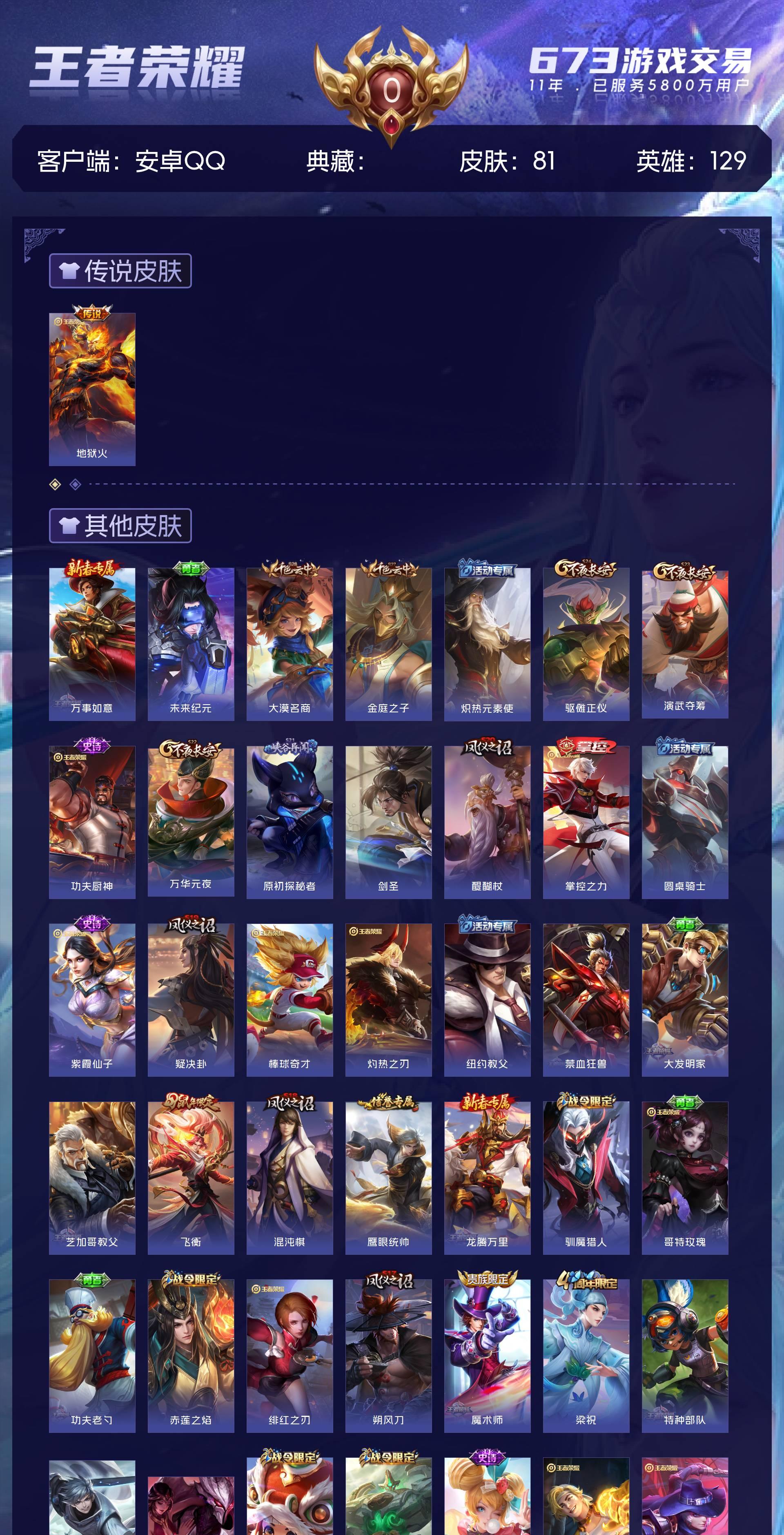 皮肤81 英雄129 秩序白银 传说1 其他皮肤86