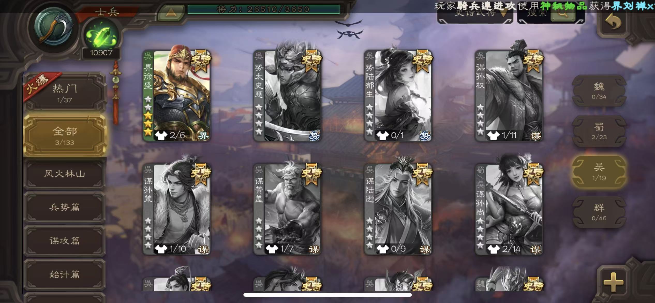 史诗武将数量: