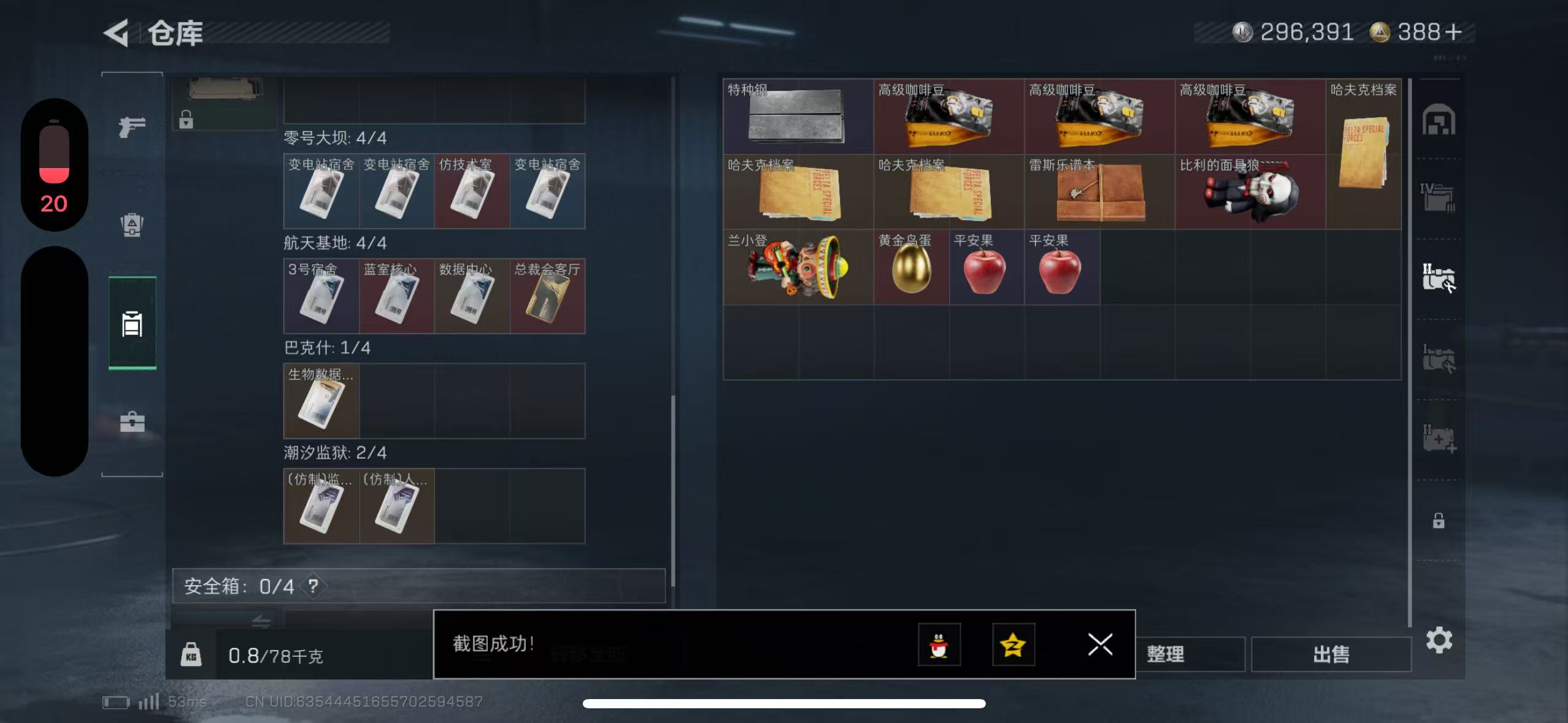 三端互通-总价值20M-哈夫币296k-烽火地带等级60-烽火地带段位黑鹰