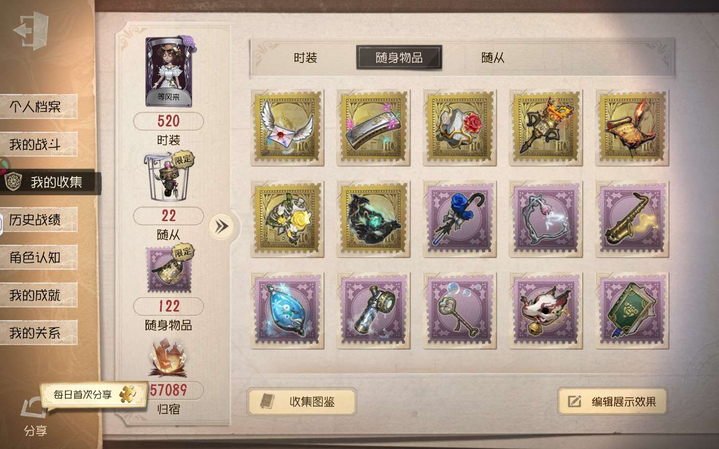 随身物品数量: