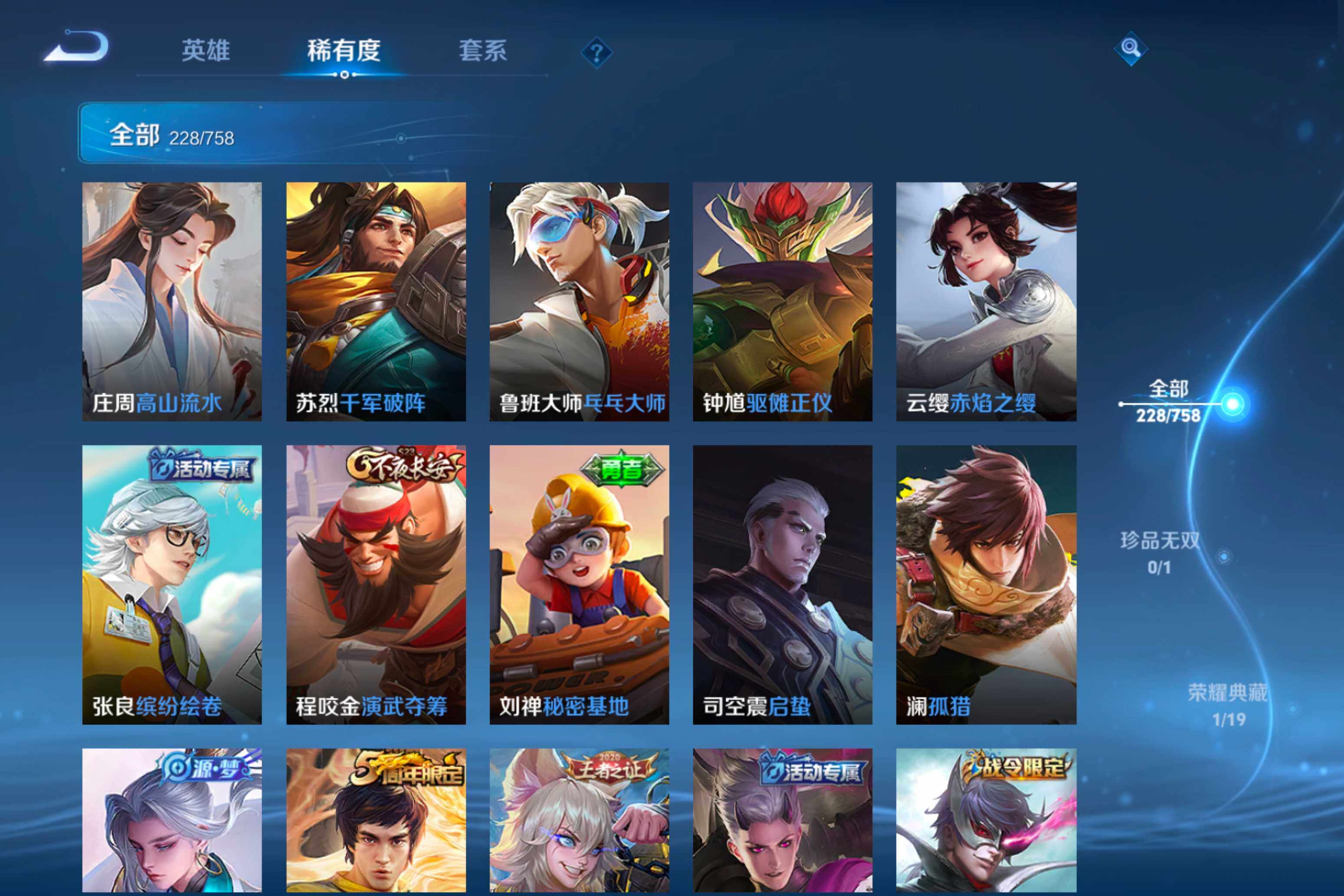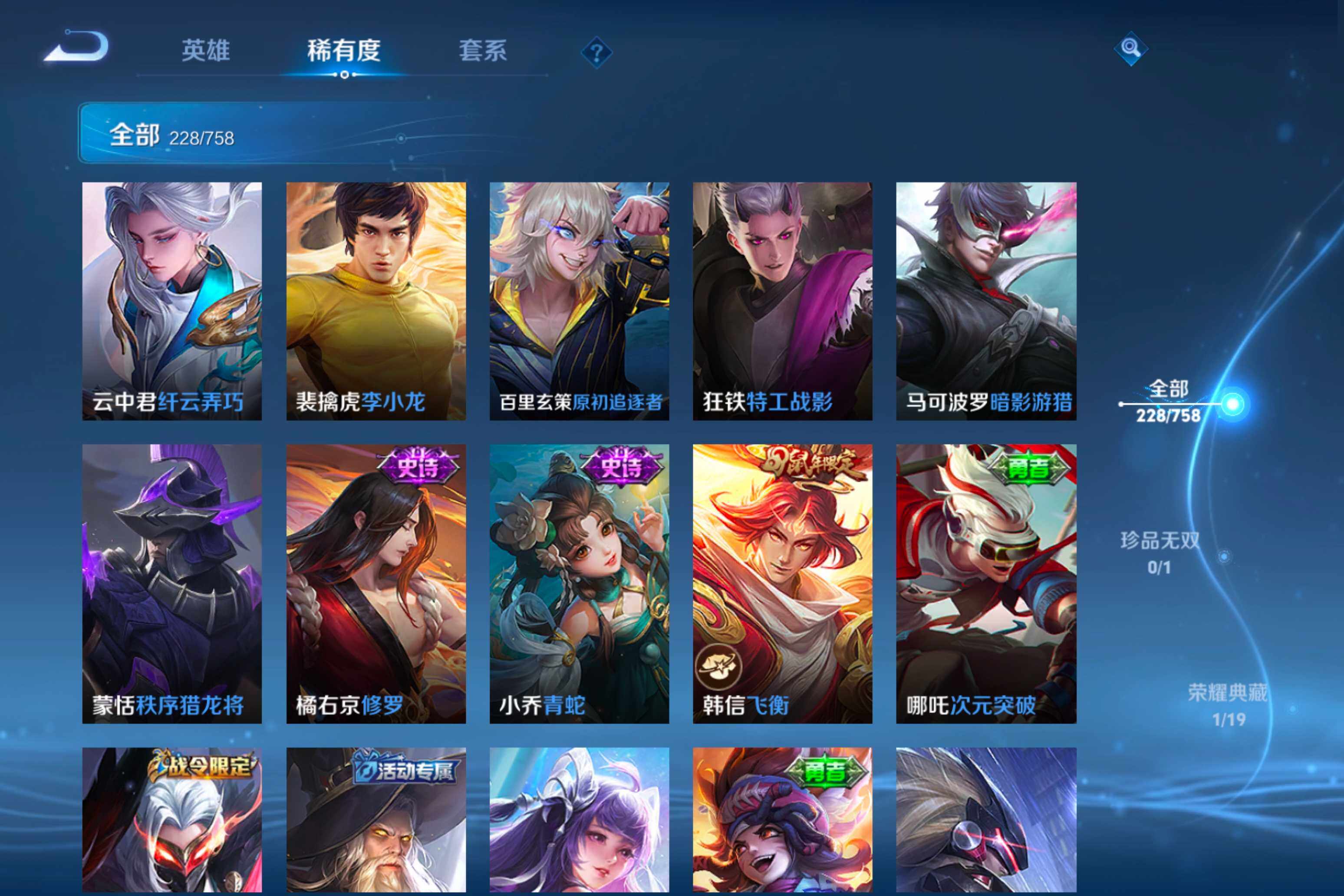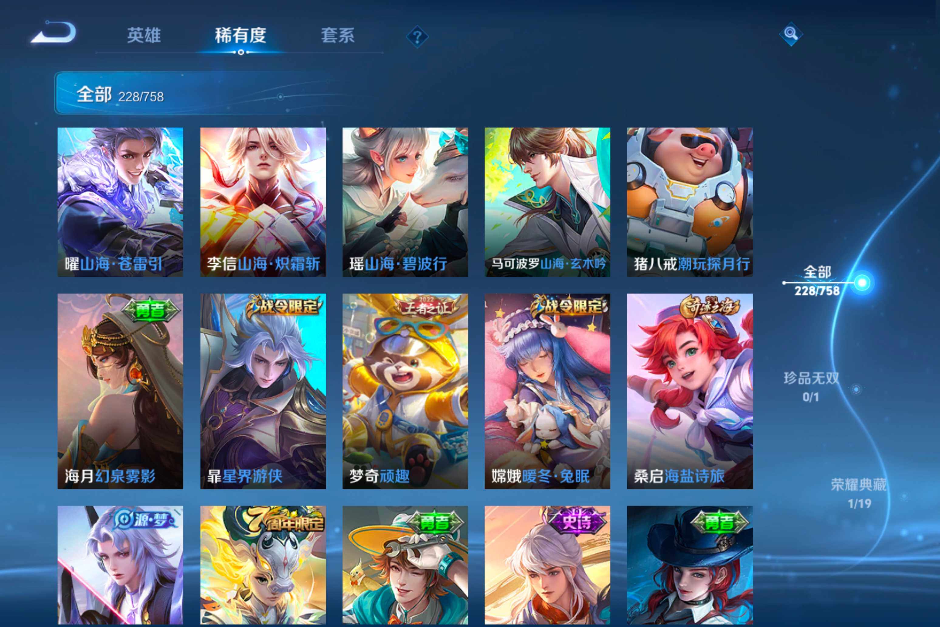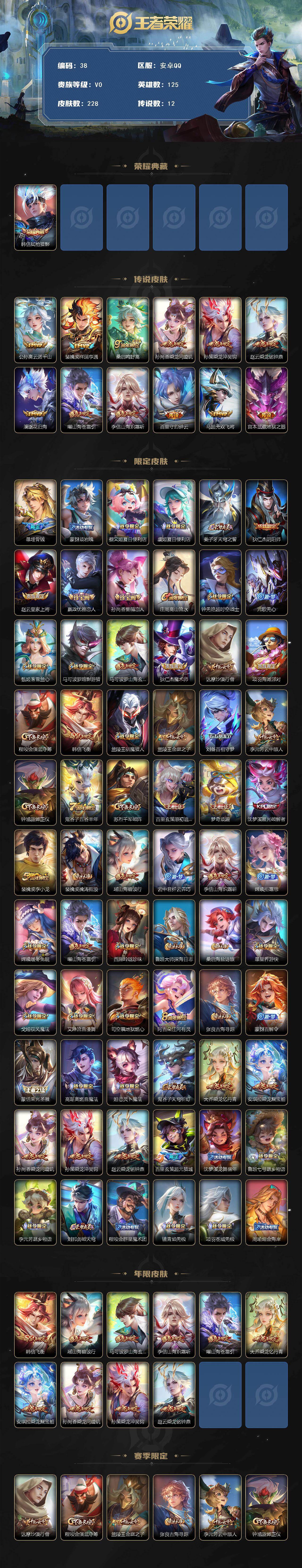 【38】安卓Q-V0-荣耀黄金II段位-125英雄-228皮肤-1典藏皮肤-12传说-79史诗