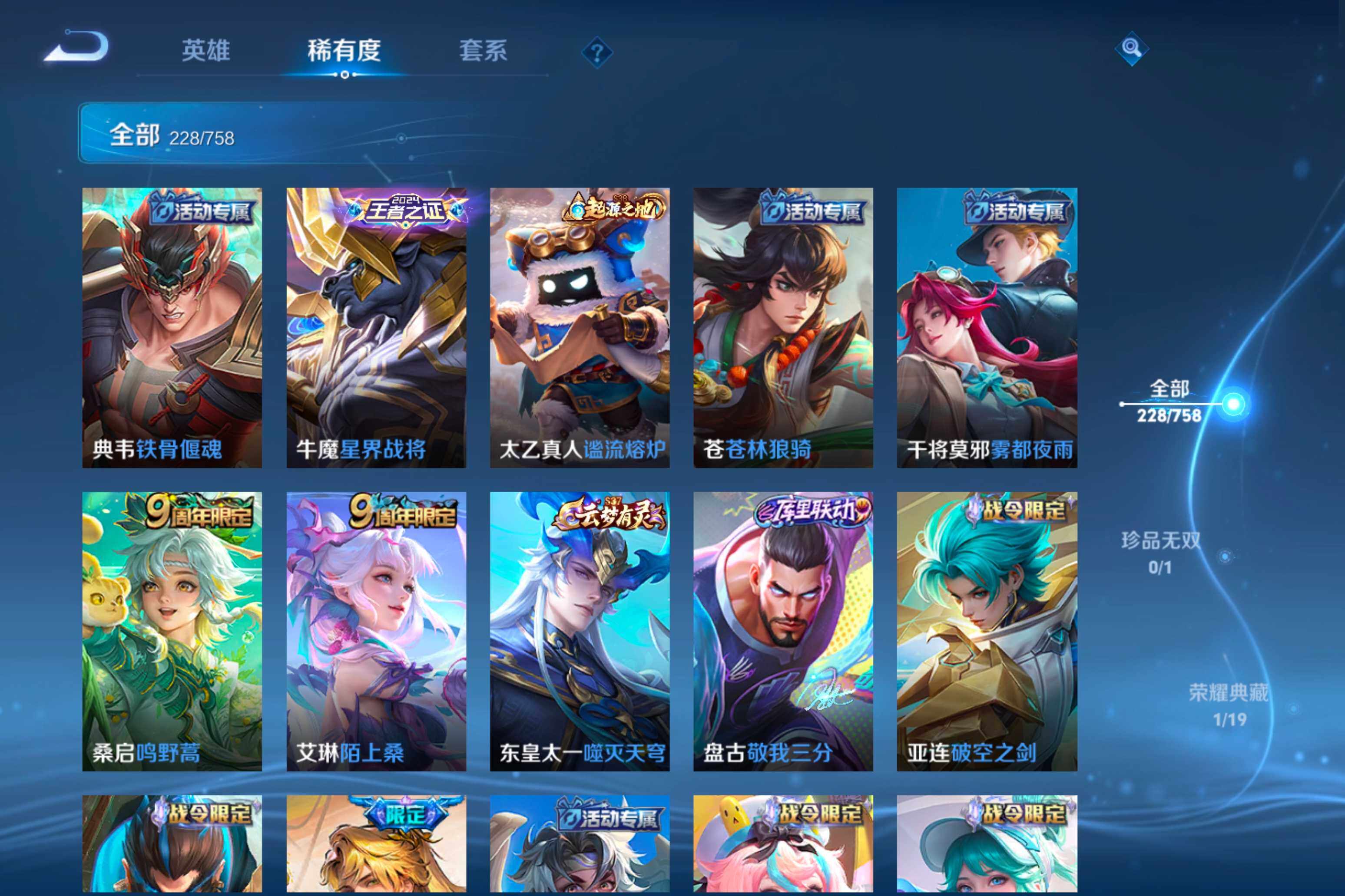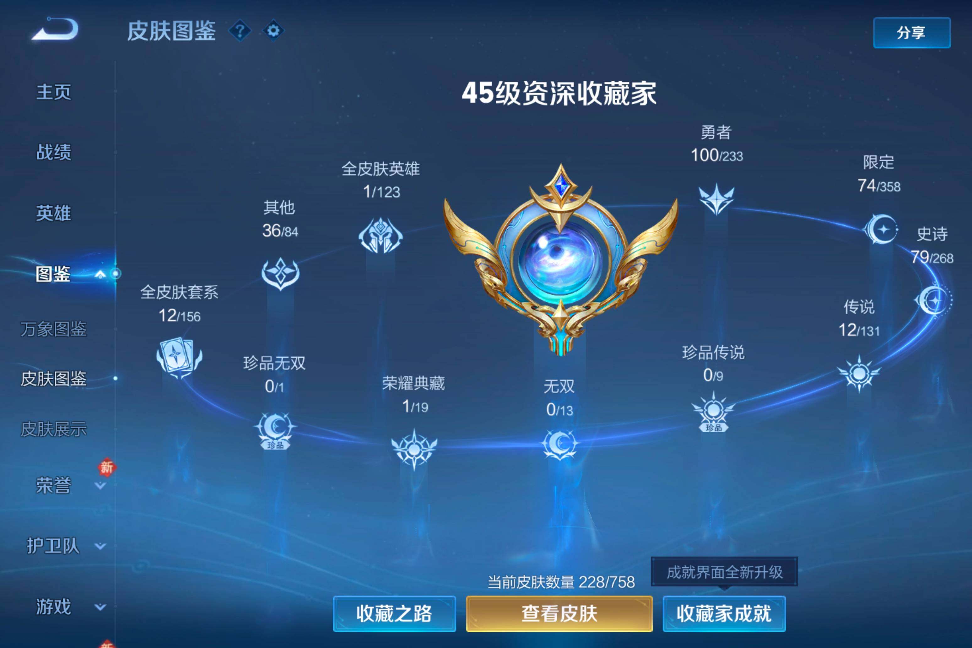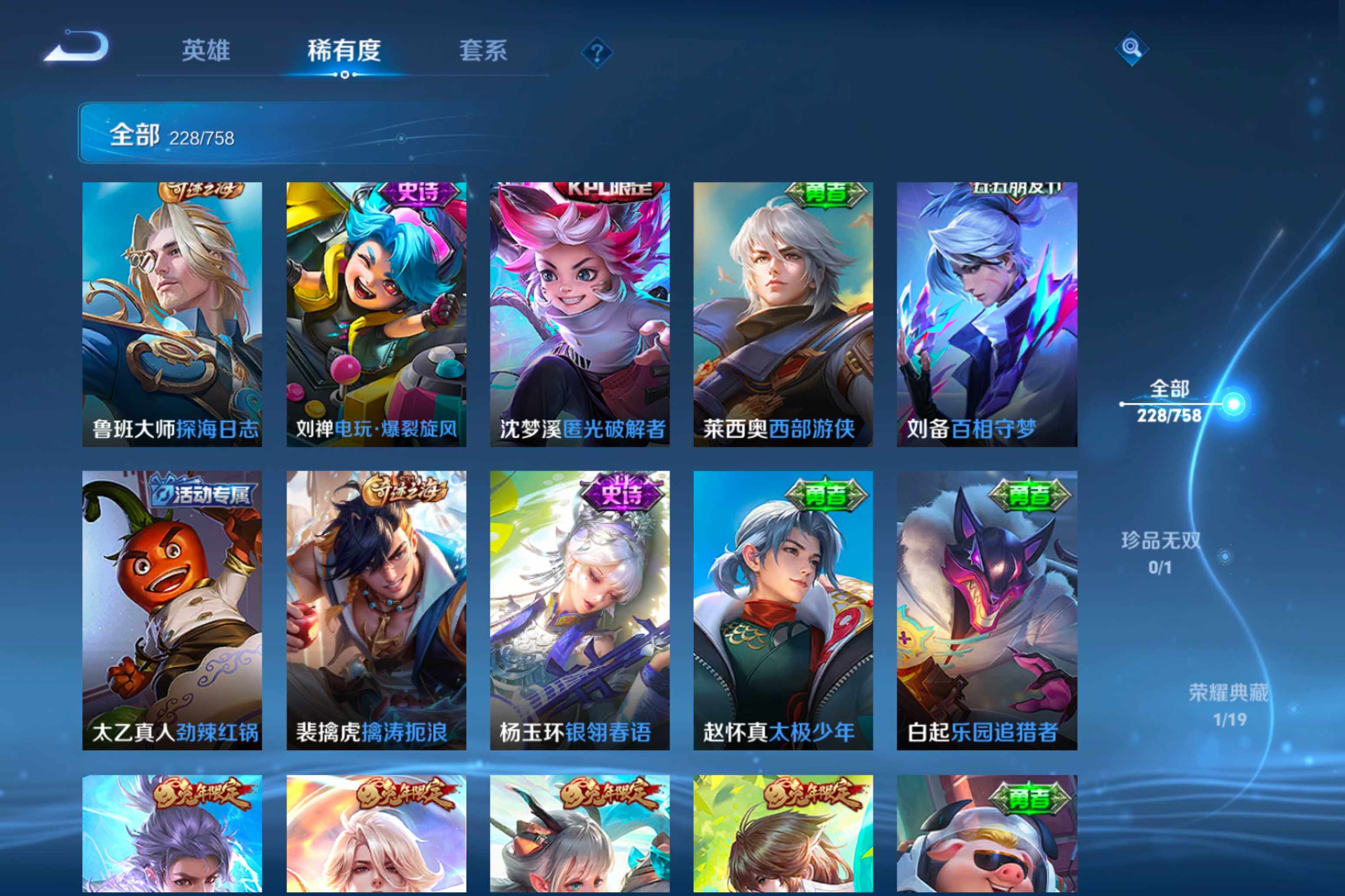 【38】安卓Q-V0-荣耀黄金II段位-125英雄-228皮肤-1典藏皮肤-12传说-79史诗
