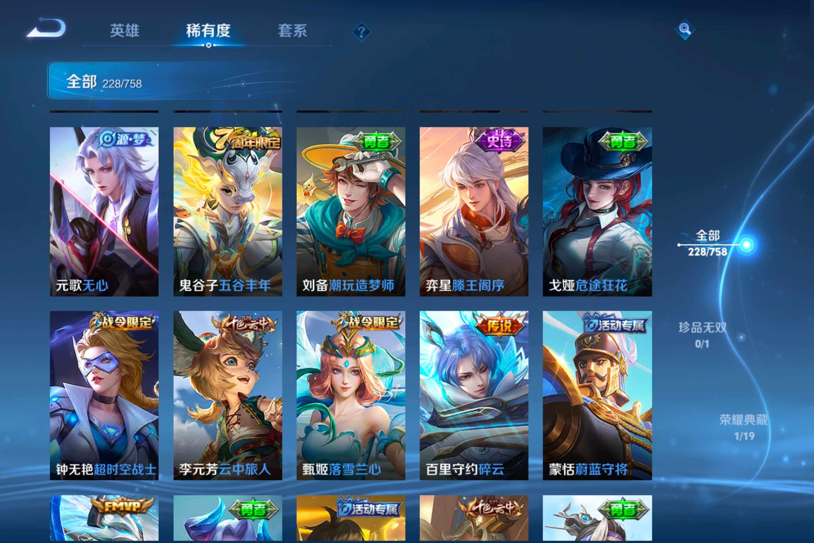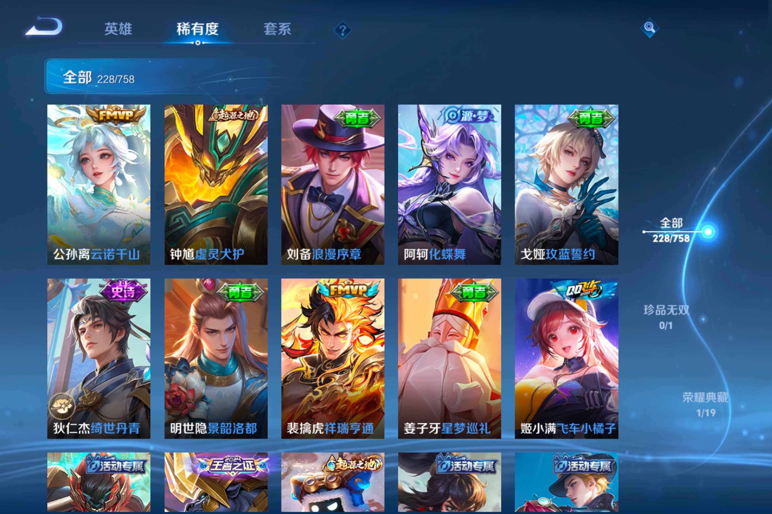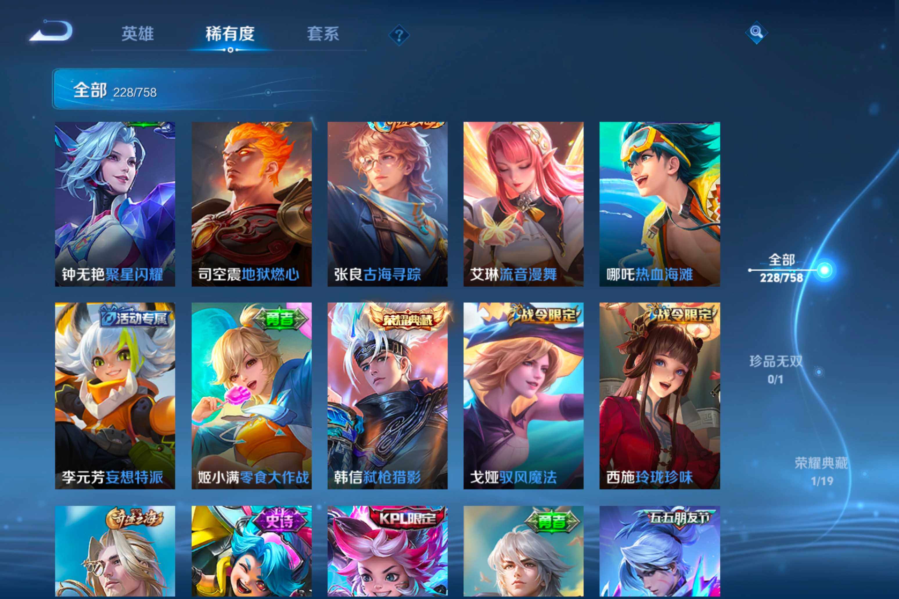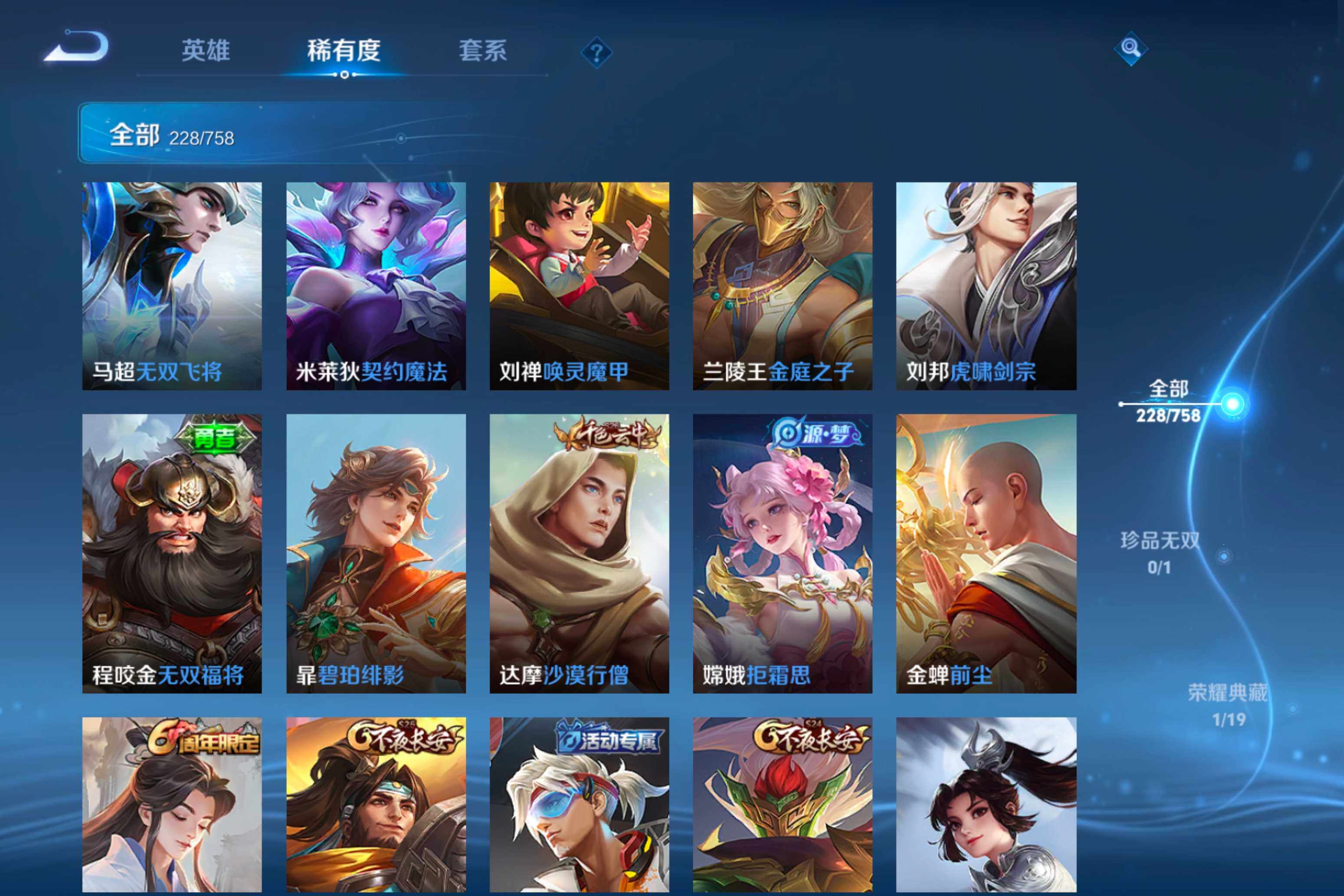 【38】安卓Q-V0-荣耀黄金II段位-125英雄-228皮肤-1典藏皮肤-12传说-79史诗
