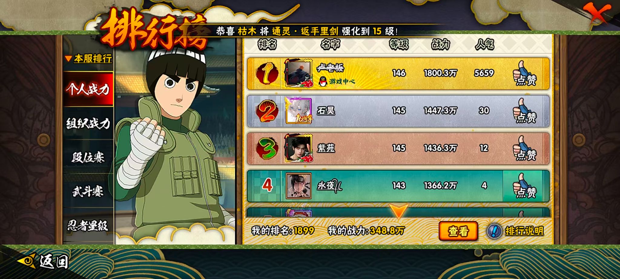 348w战力绿牛白面8s+夏日鼬1直购16a战力348忍者总