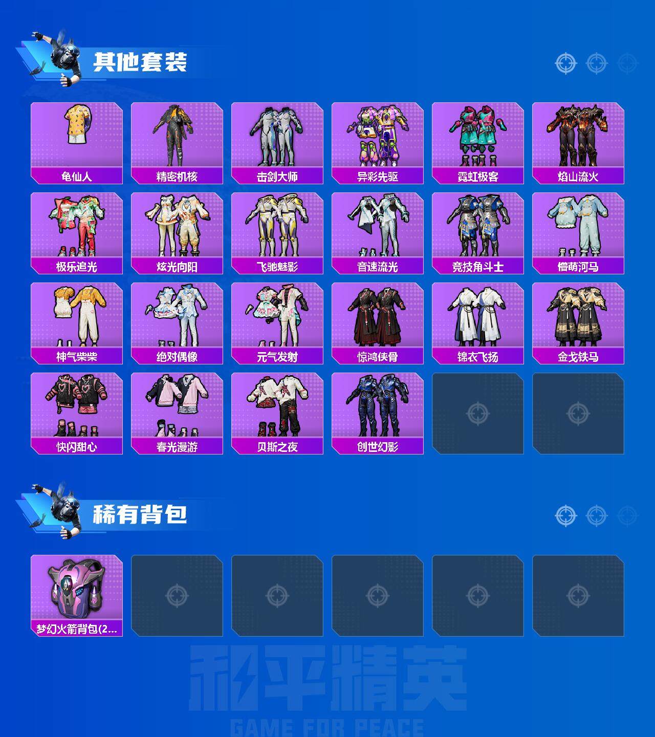 【粉色套装】:粉装-金曜白虎,粉装-新星烈龙,粉装-碧影闪光,粉装-未来歌姬,角色-茉莉星,角色-星云暗核,粉装-莲影清波