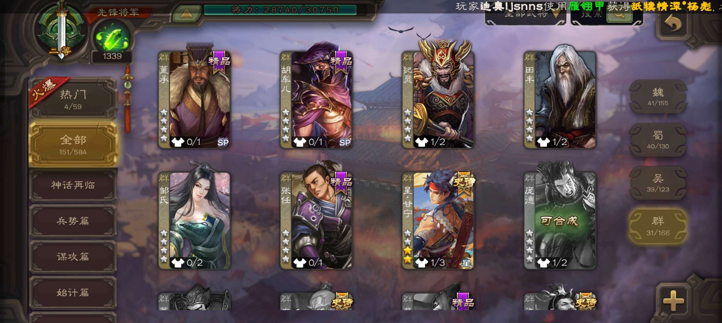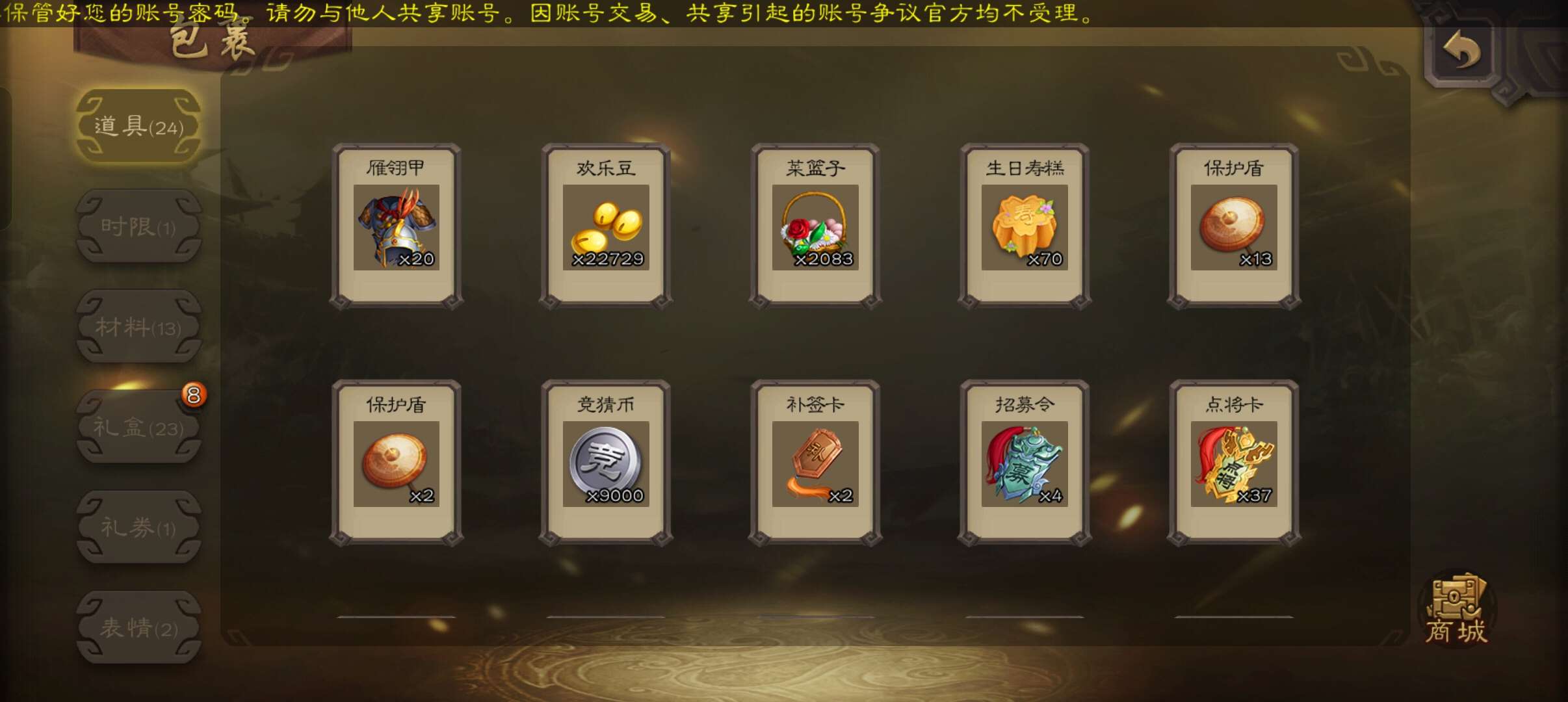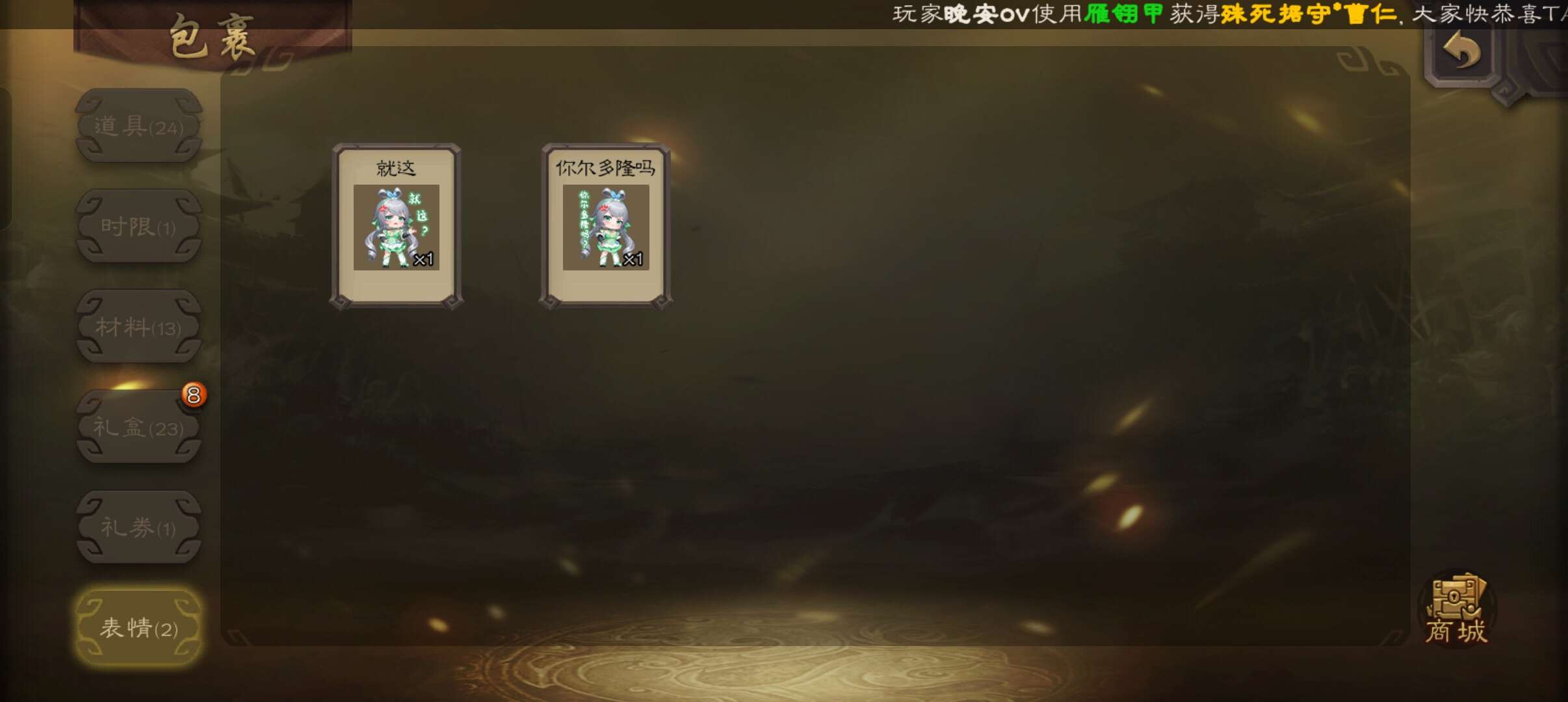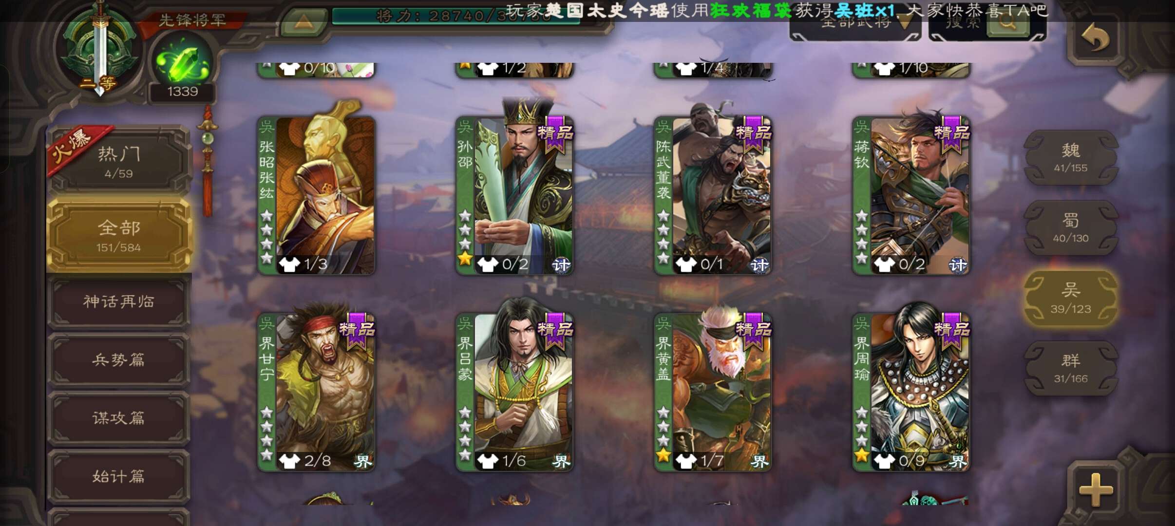 3动皮。4史诗武将,4星谋黄月英。马元义快出来了。多材料多盒子