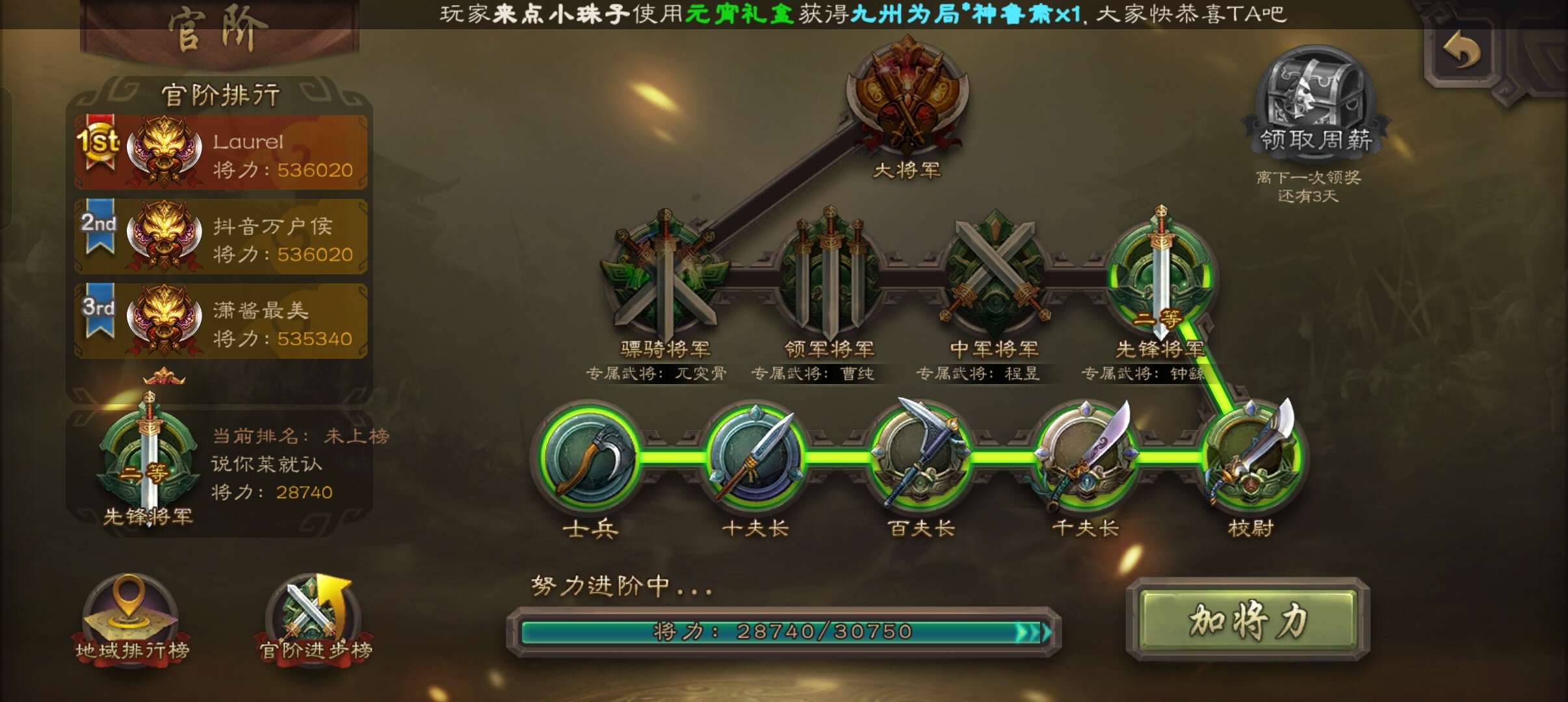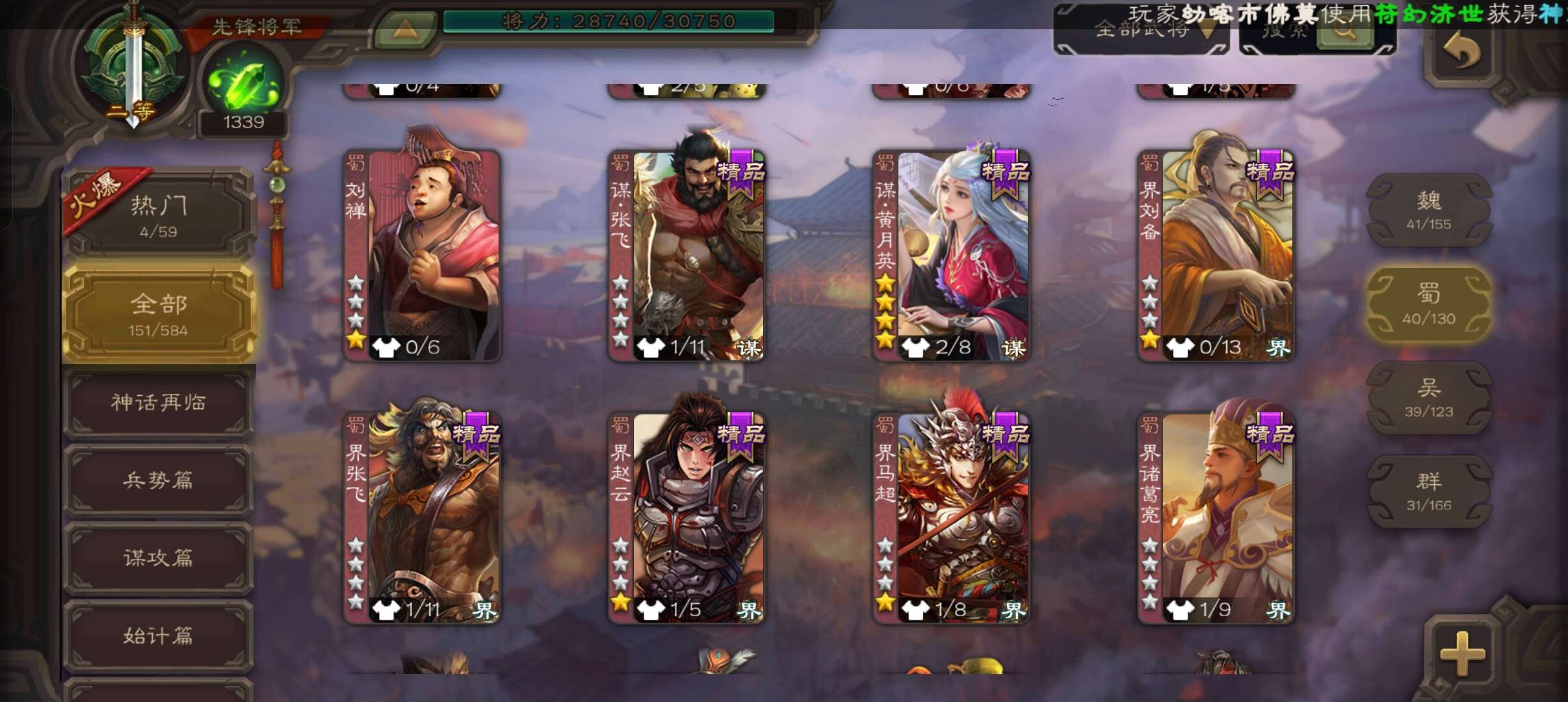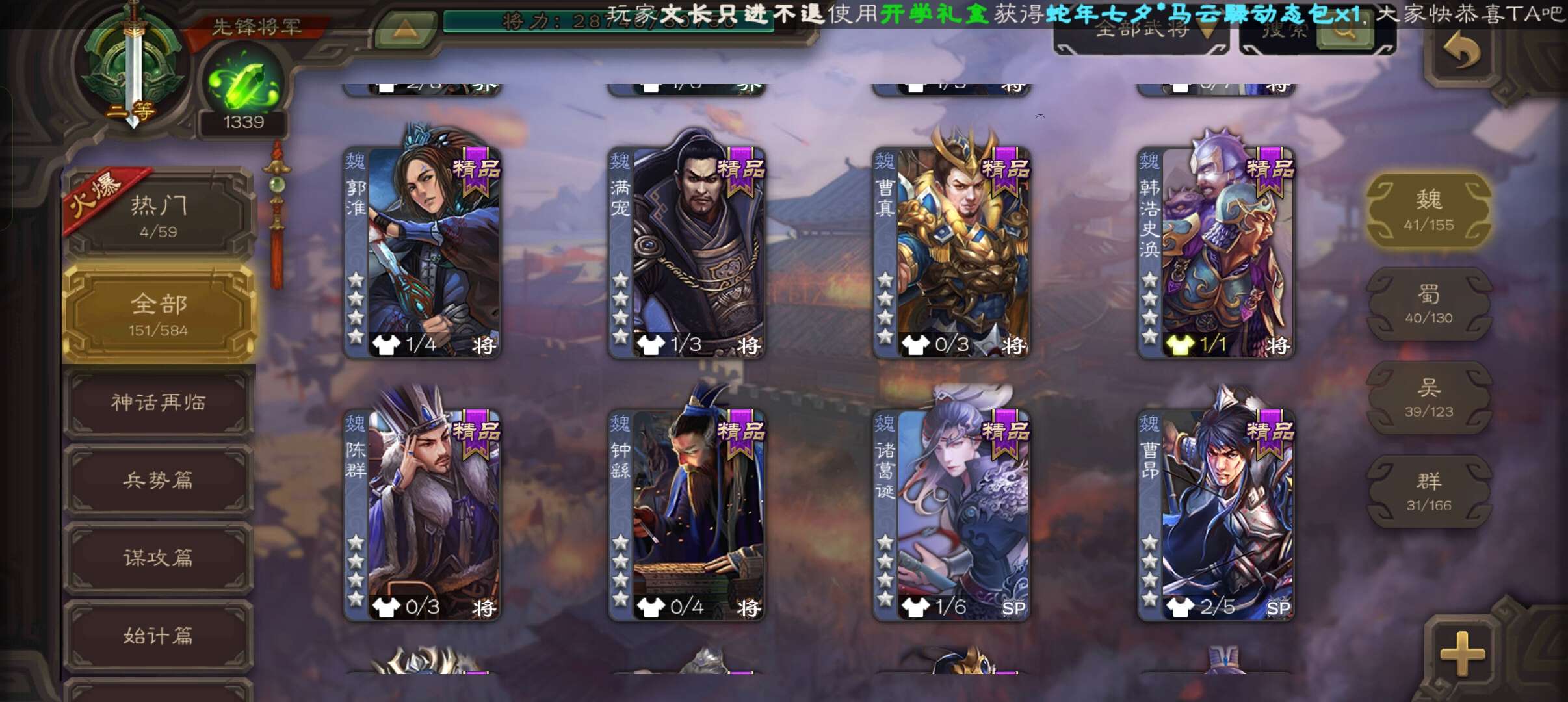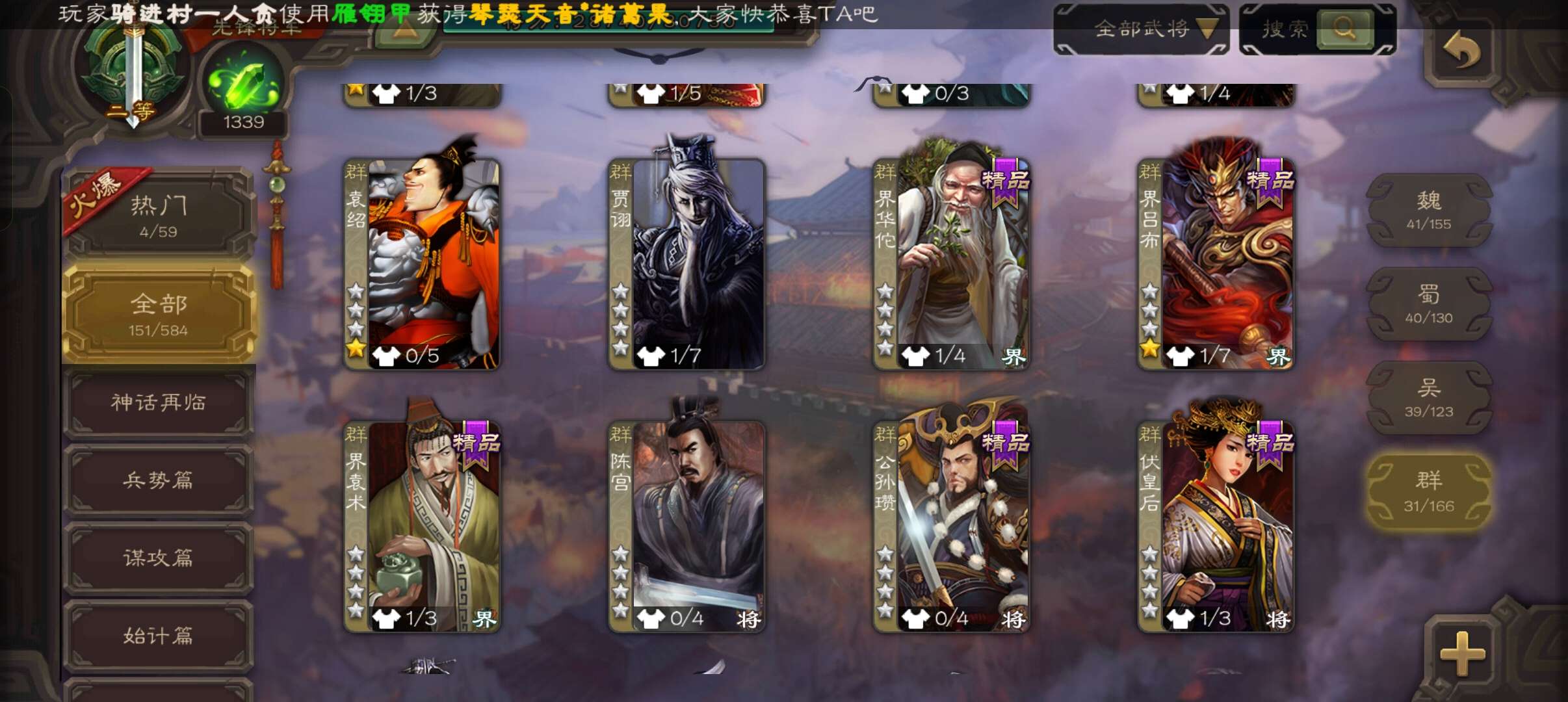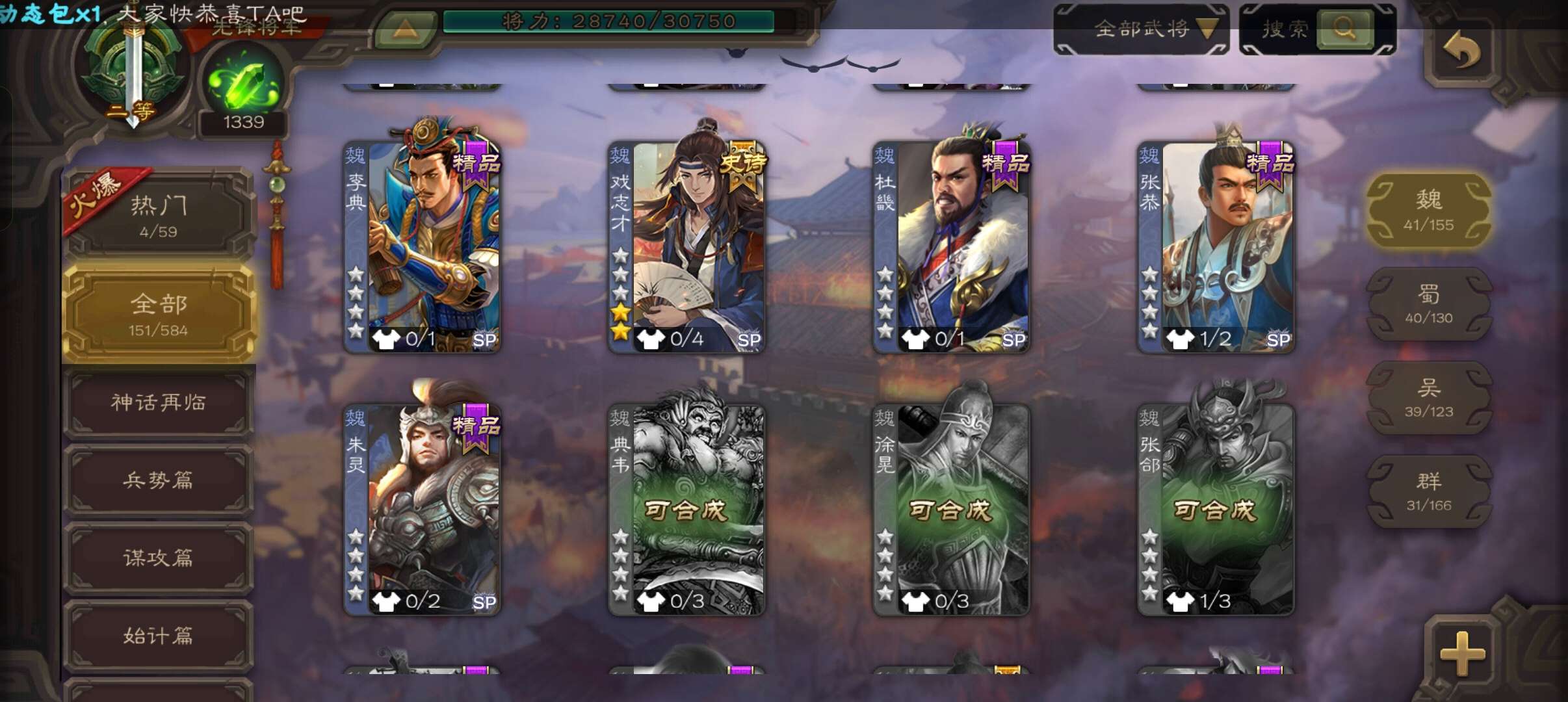 3动皮。4史诗武将,4星谋黄月英。马元义快出来了。多材料多盒子