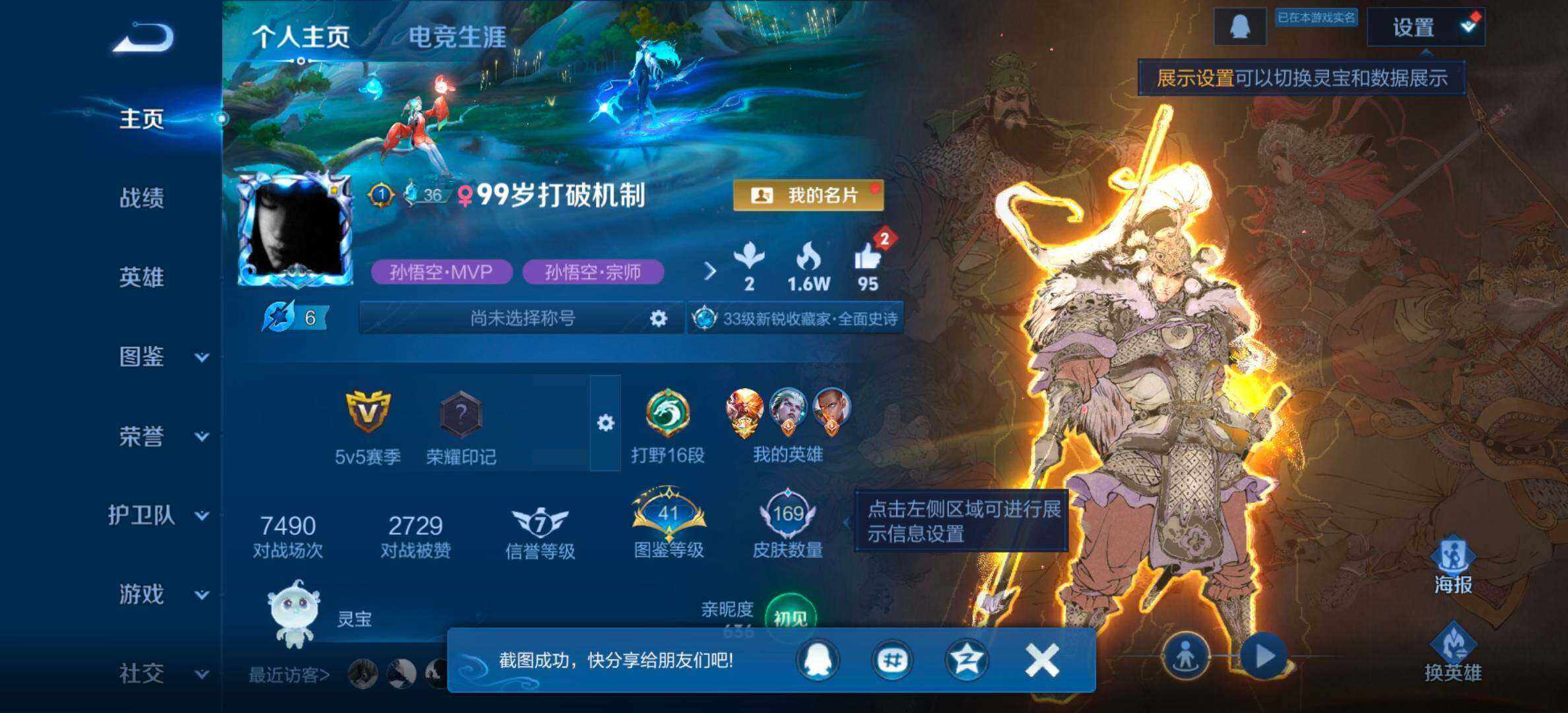 【猴子多皮号 全息碎影大圣娶亲零号赤焰全息碎影地狱火 169皮1典藏13传说】安卓Q-V7-尊贵铂金II段位-126英雄-171皮肤-1典藏皮肤-13传说-43史诗
