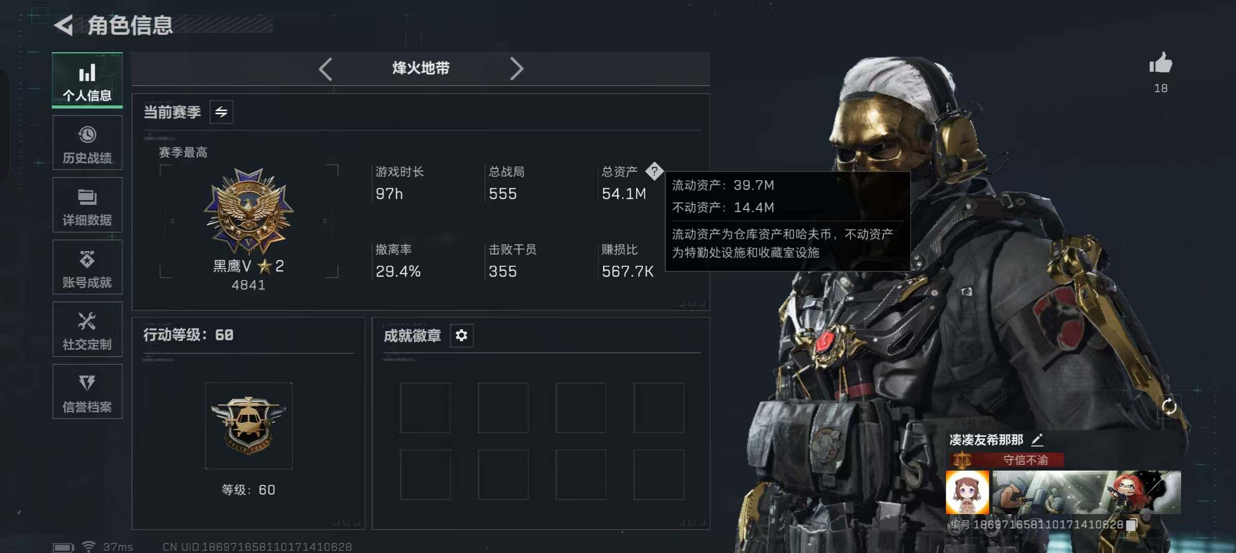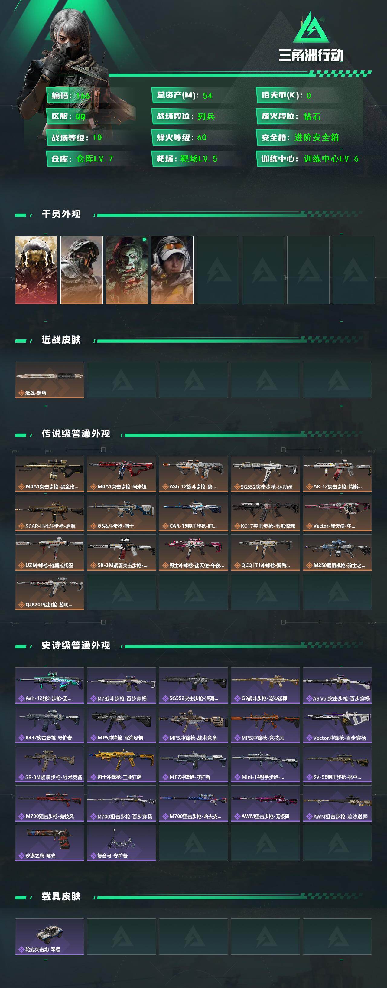 54m总资产-0k哈伏币-60烽火等级-钻石-10战场等级-列兵LL5712