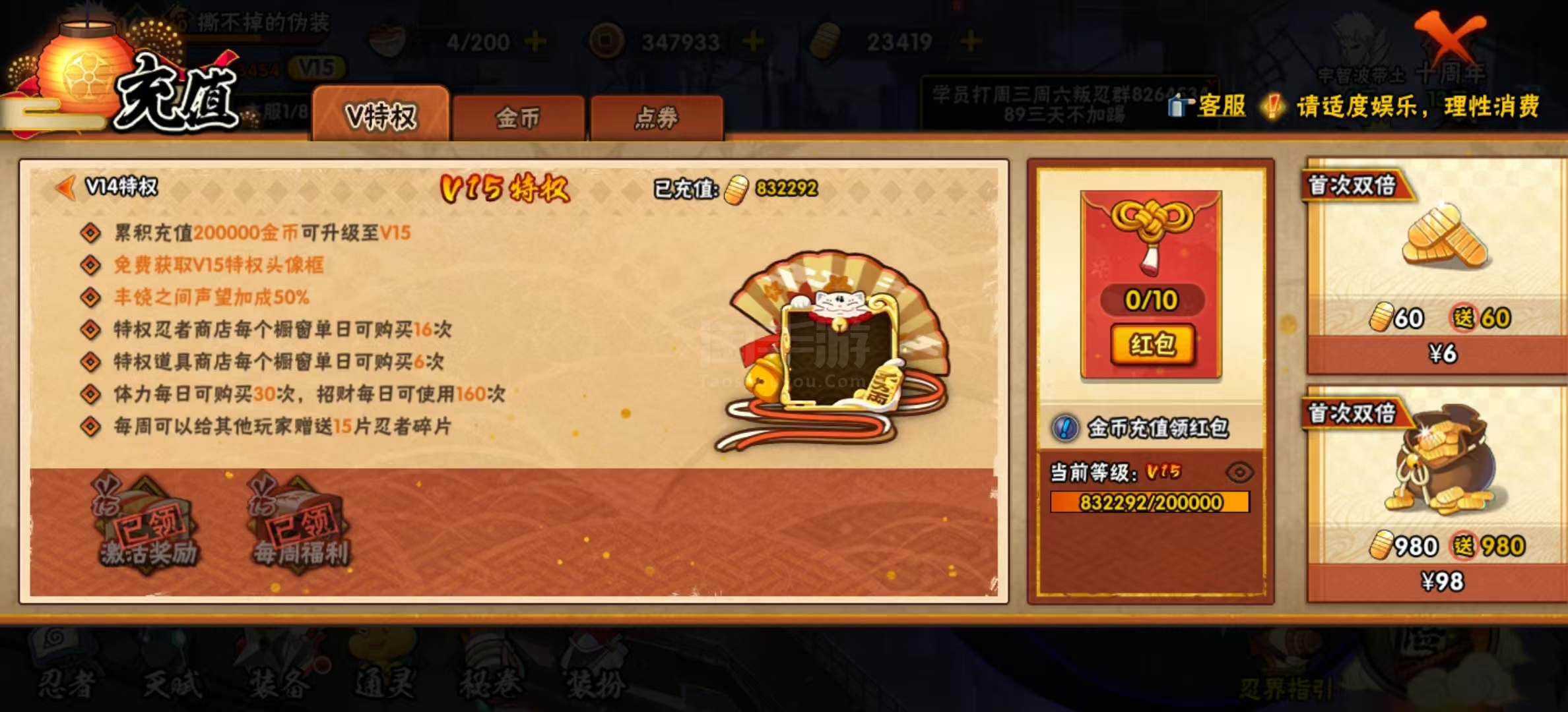 全忍者,全通灵,3700w高战,2.4万金币,5000点券