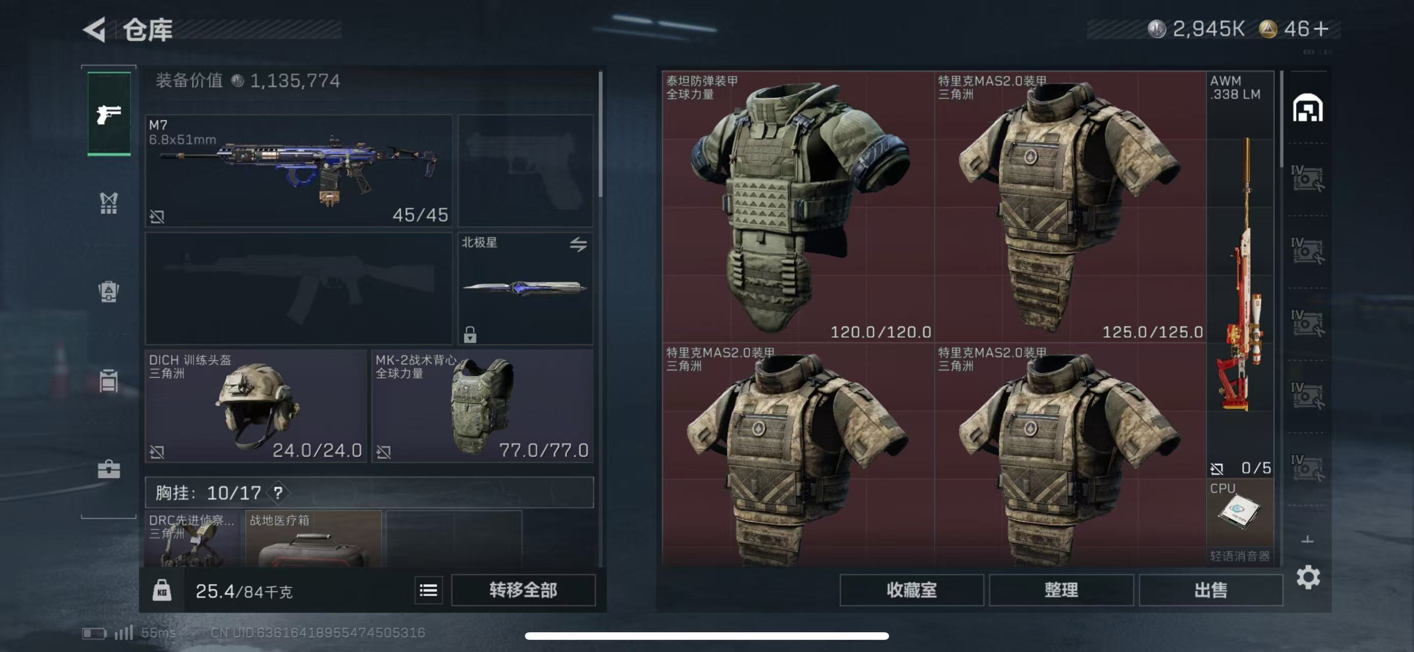 总资产189.17M,哈夫币 2945.98K,战场等级:28 上等兵,行动等级:60 钻石,角色皮