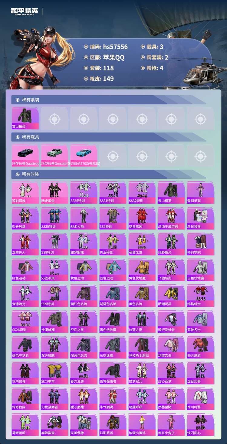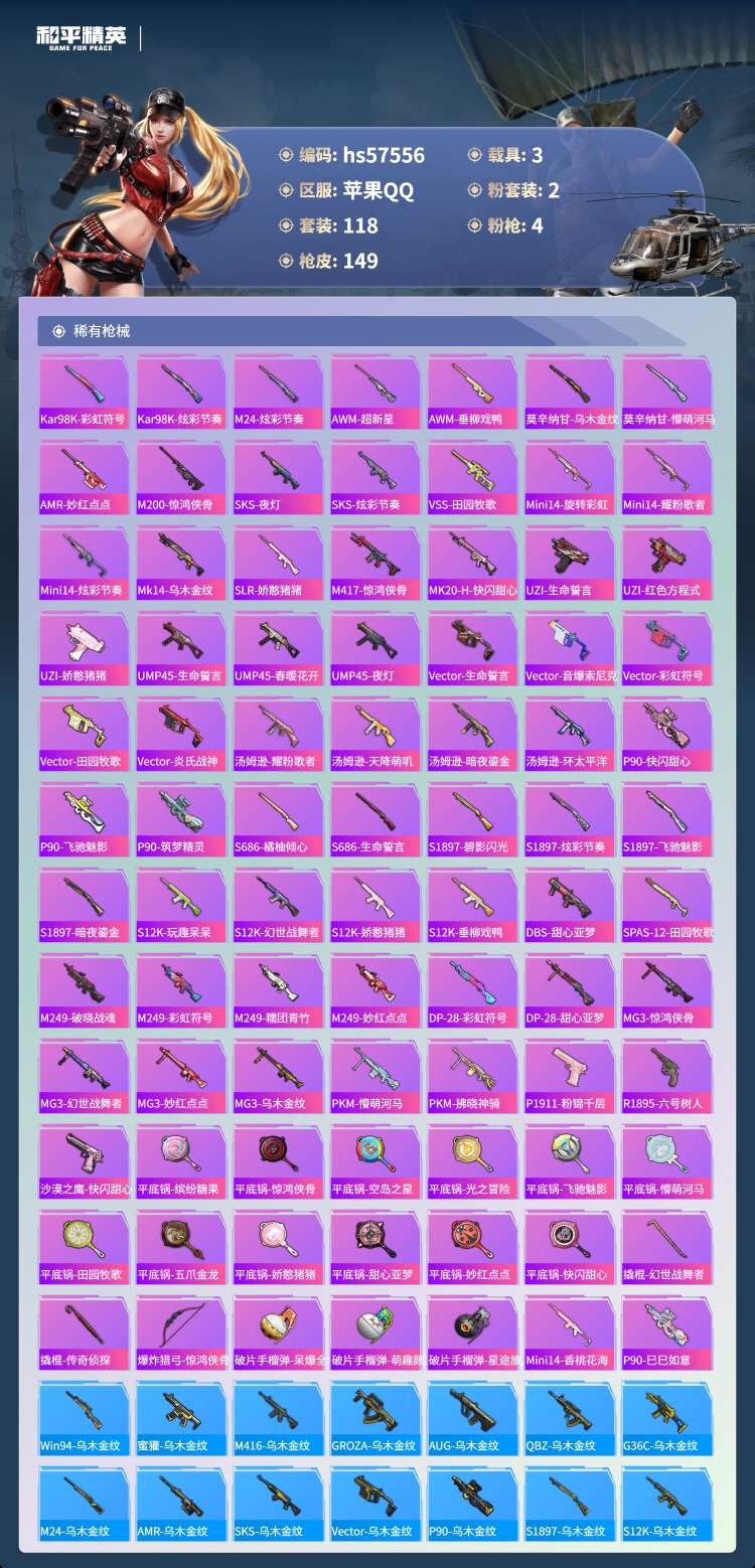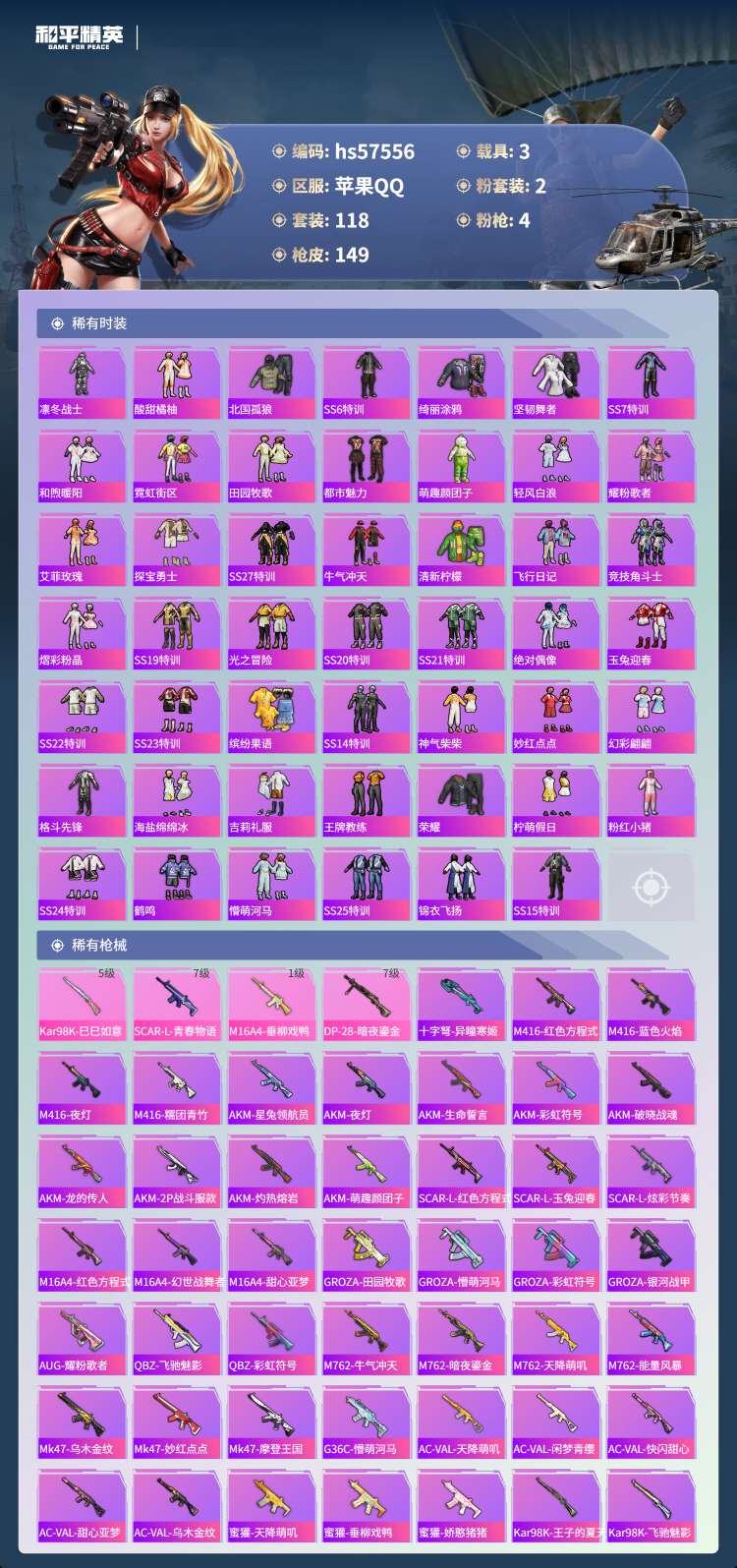 苹果Q-3载具2粉装4特效枪3热门118套装149枪皮 48232热力值 7印记 历史超级王牌5星