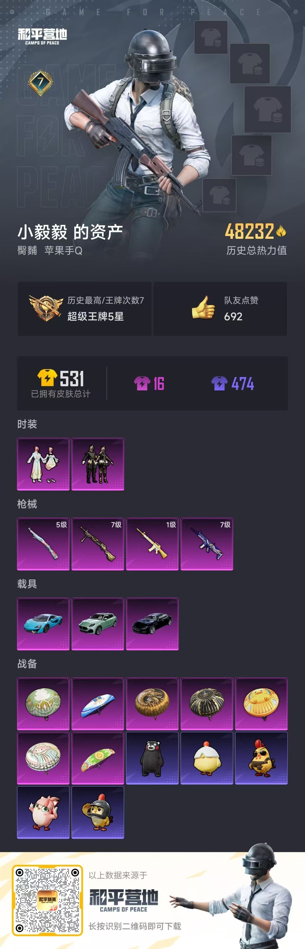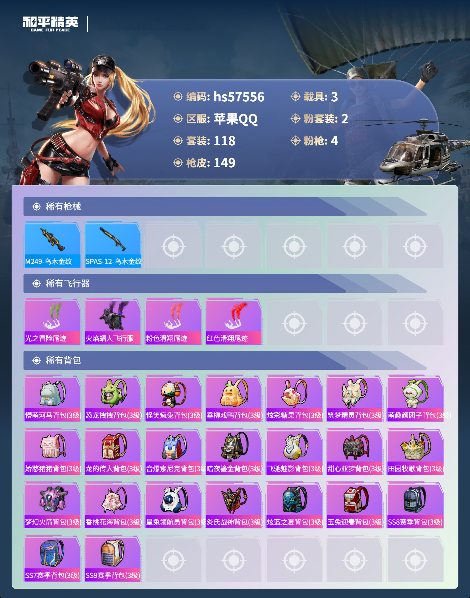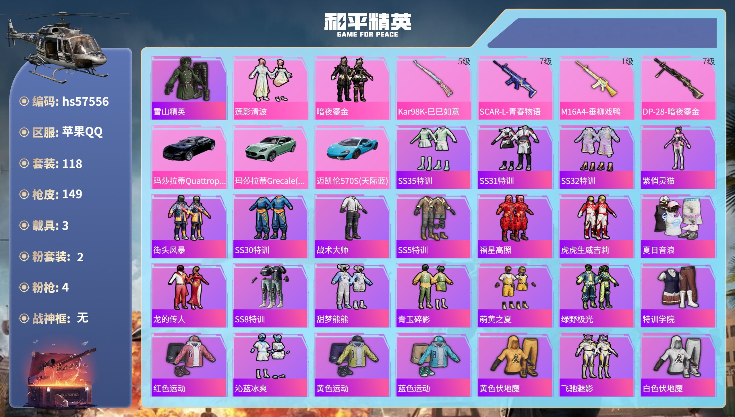 苹果Q-3载具2粉装4特效枪3热门118套装149枪皮 48232热力值 7印记 历史超级王牌5星