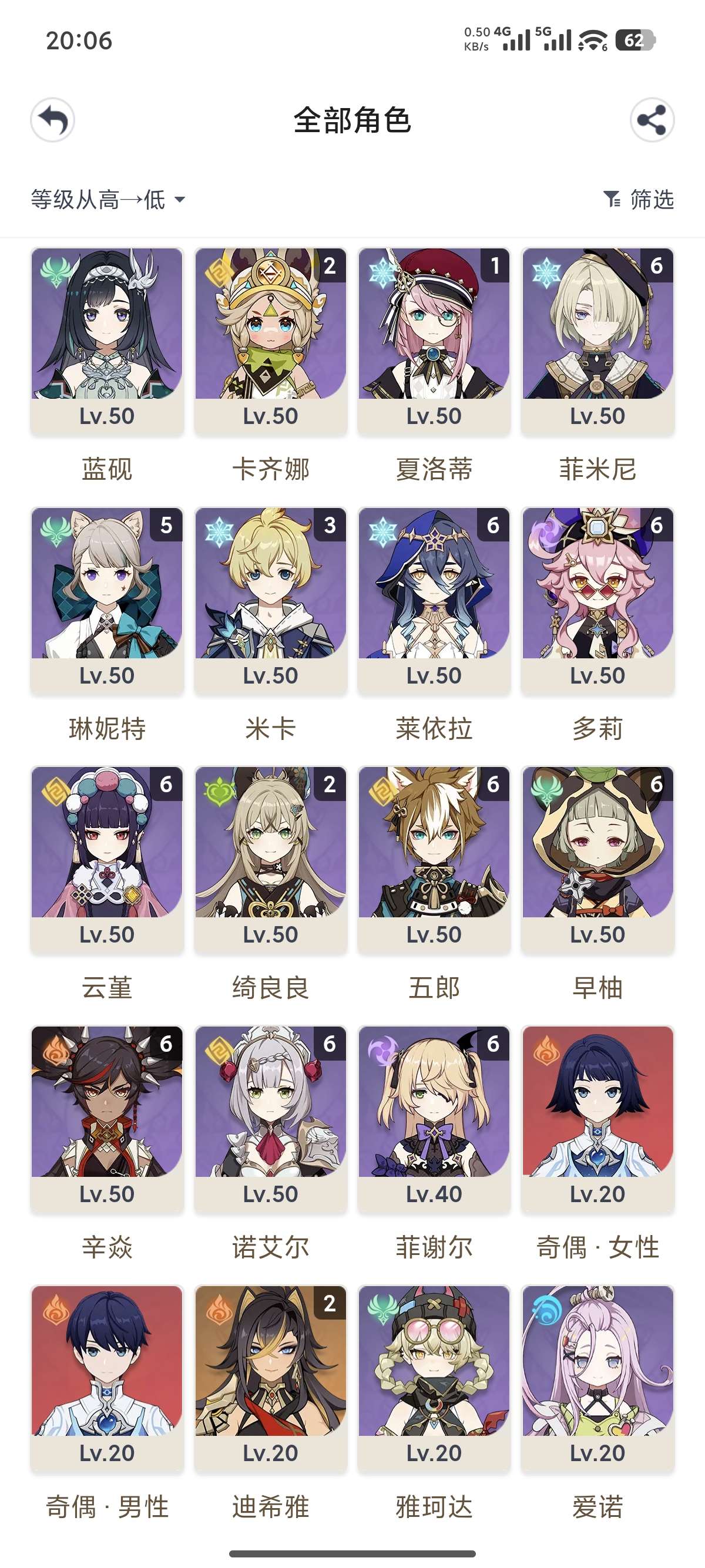 龙王,火神,仆人顶级主c,还有月神芙芙万叶希诺宁顶级***,还有超多4星满命角色,号上还有40多抽。