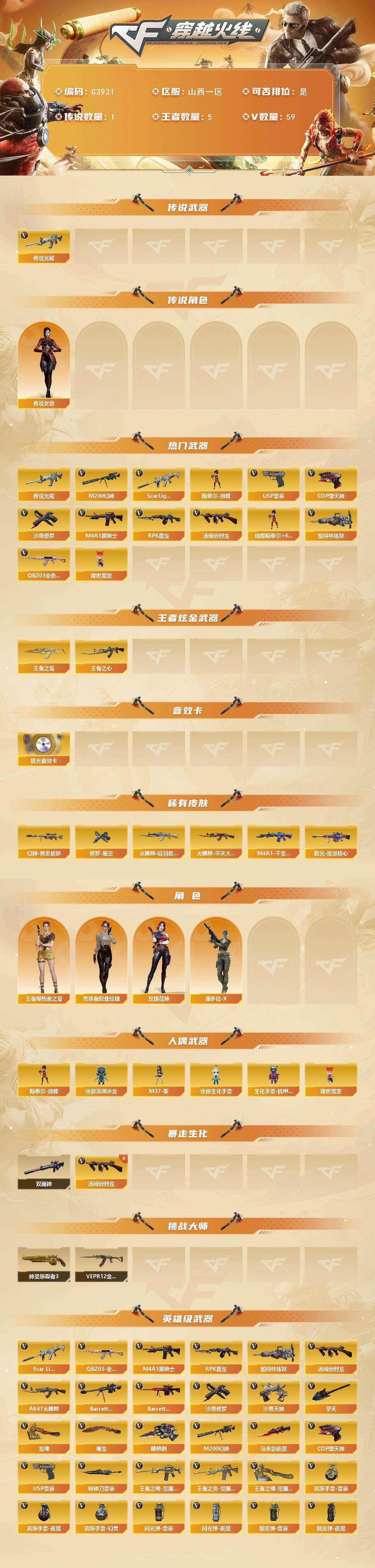 【C3931】山西一区-59V-5王者-0炫金