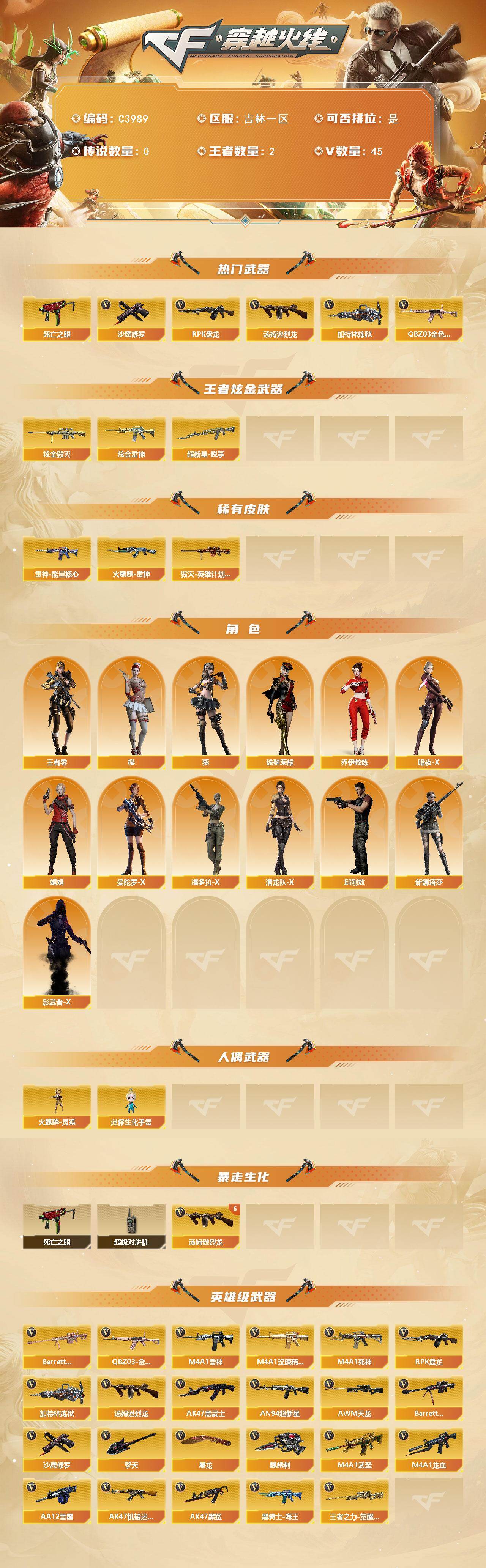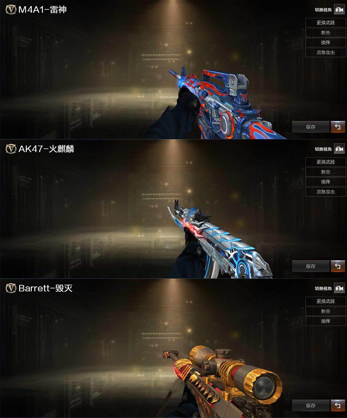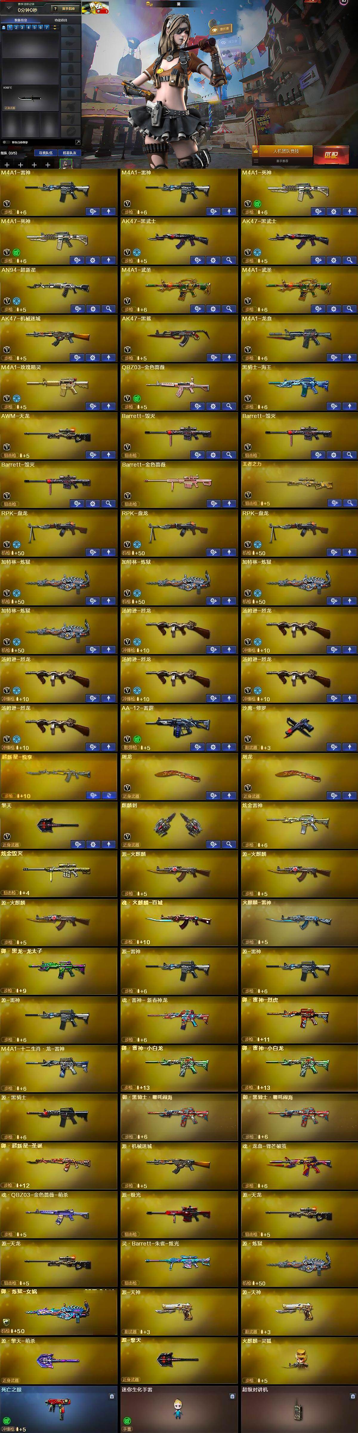 【热门武器】:QBZ03-金色蔷薇,死亡之眼,汤姆逊-烈龙*6,RPK-盘龙*3,加特林-炼狱*4,沙鹰-修罗