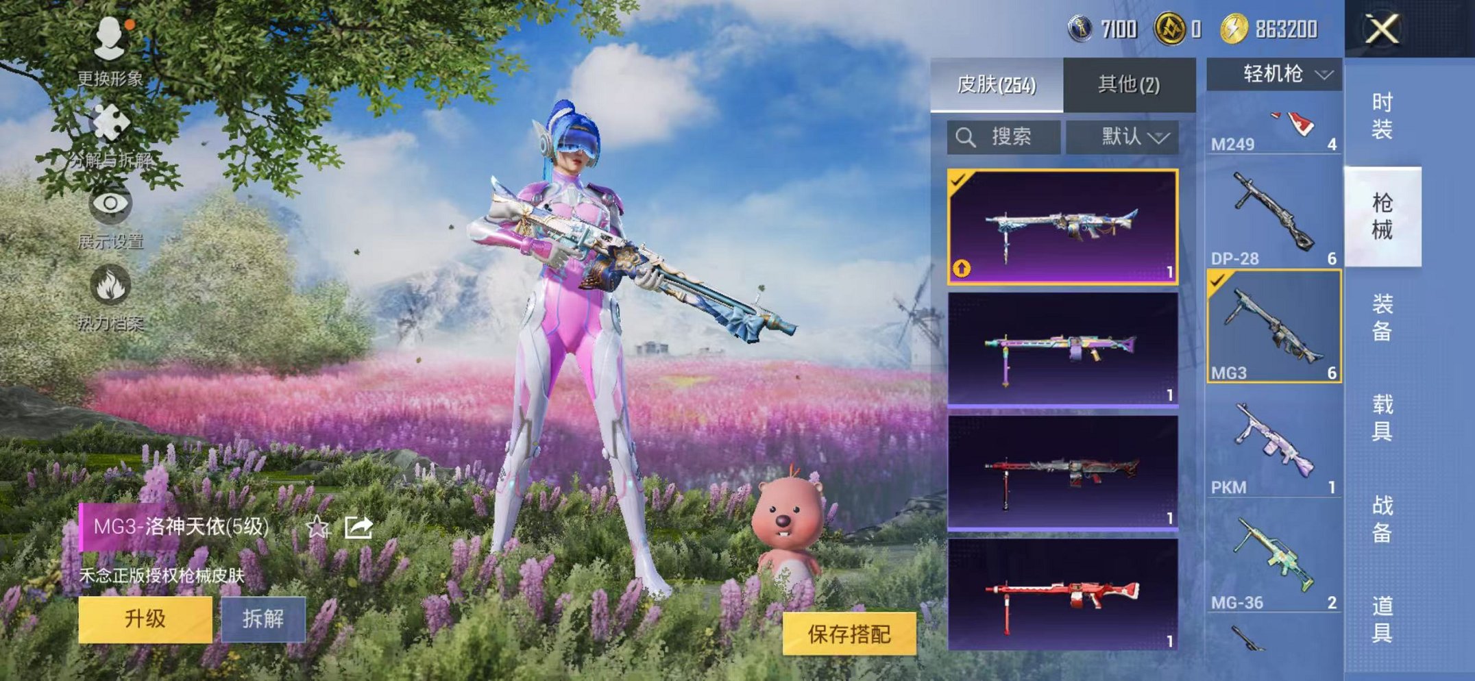 678-可二次【梦幻洛天依 9粉装7特效枪可秒换绑】 苹果Q区-76784热力值--185套装-253枪皮 【9粉装】 梦幻火箭 洛天依 圣堂之誓 角色-小蓝 角色-美雪 角色-美琪 角色-严莉莉 角色-智耀战神 角色-冷漠罗丽【7特效枪】 SCAR-L-梦幻火箭(7级) AKM-炫紫旋律(7级) MG3-洛神天依(5级) M416-电玩时刻(5级) P90-冷漠罗丽(6级) Kar98K-巳巳如意(5级) DP-28-豹影疾电(5级)【53热门】 M416-蓝色火焰 GROZA-异彩先驱 GR