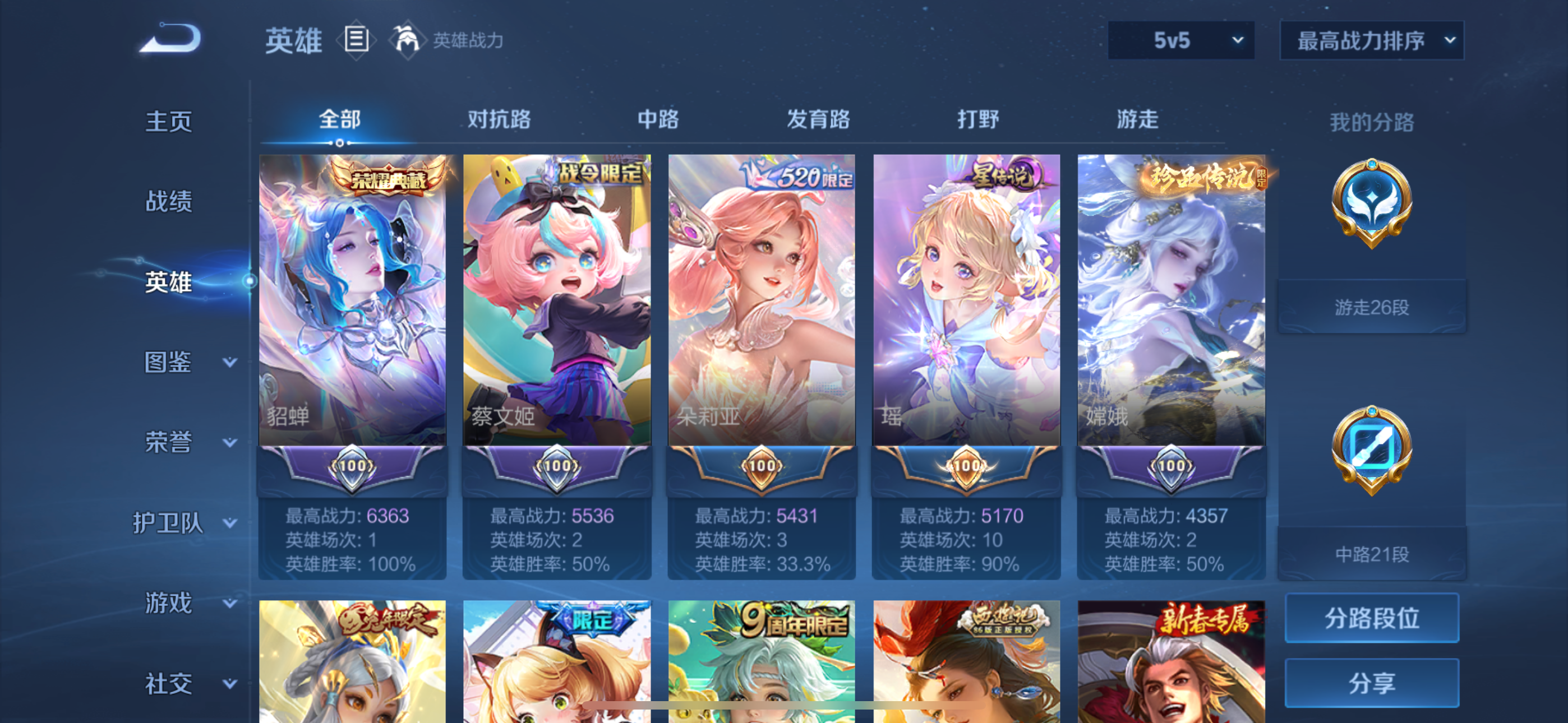 V7 皮肤266 英雄129 永恒钻石 荣耀典藏1 珍品传说2 传说13 其他皮肤256