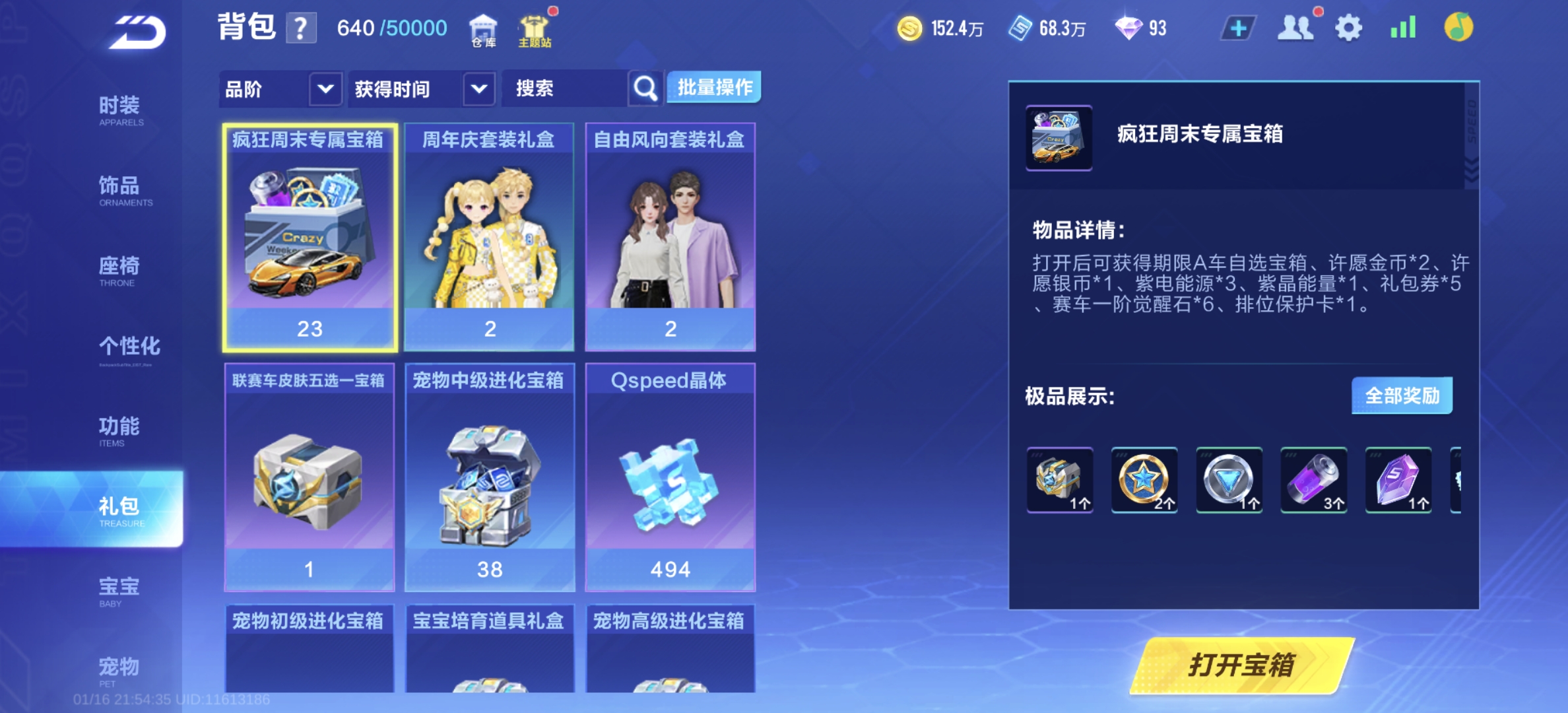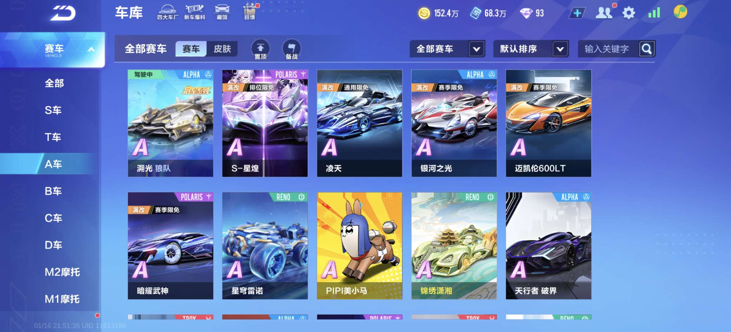 32A 满改S-溯光联赛车 带狼队皮肤 68万点券大量服饰箱子科技点物资等等成品号可二次