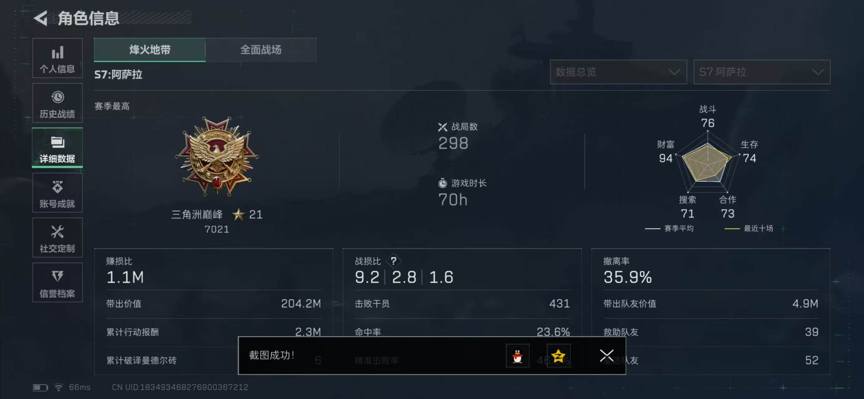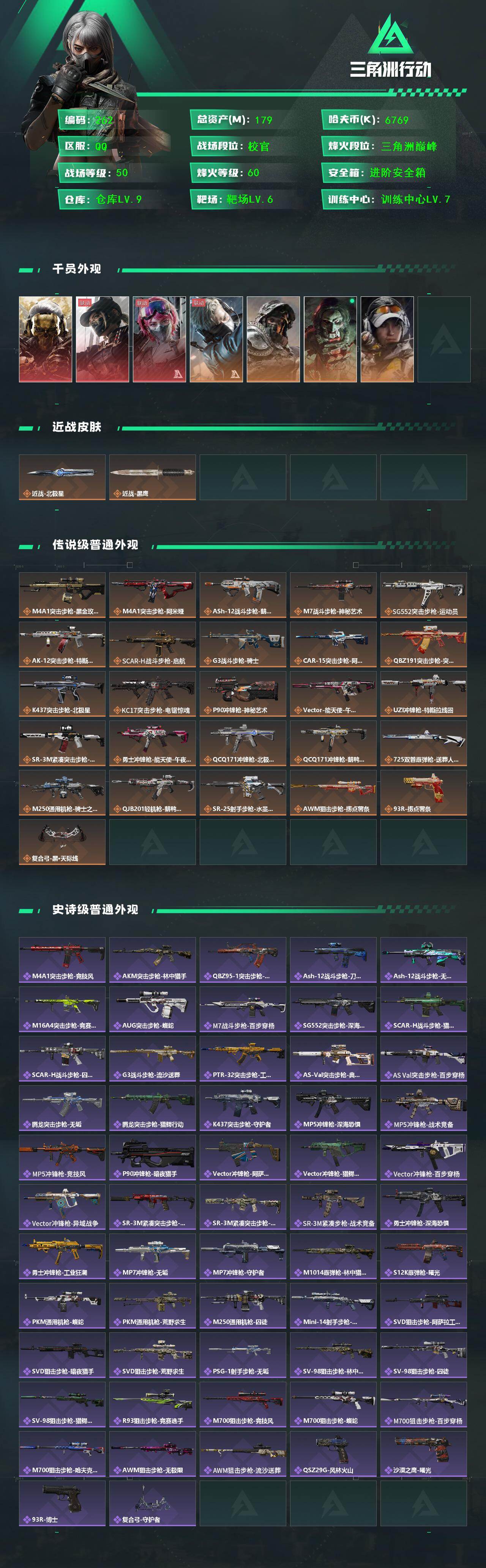 179m总资产-6769k哈伏币-60烽火等级-三角洲巅峰-50战场等级-校官