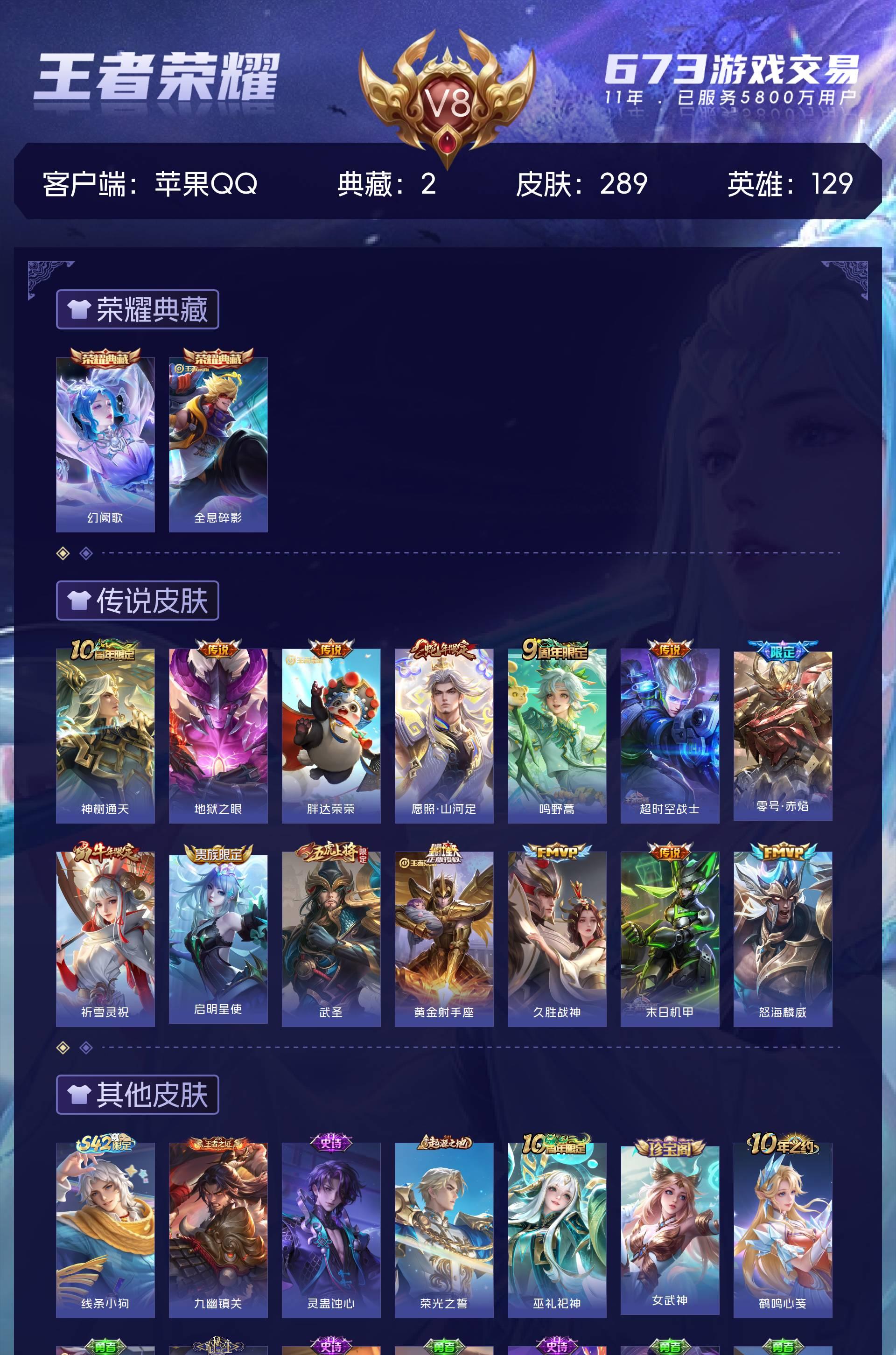 V8 皮肤289 英雄129 永恒钻石 荣耀典藏2 星传说3 传说14 其他皮肤279