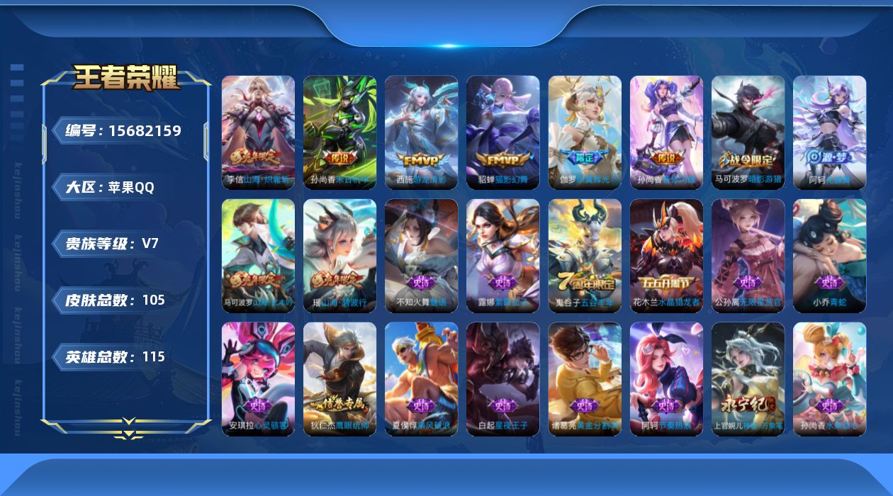 [15682159]V7 7传说 115英雄 105皮肤 可修改实名