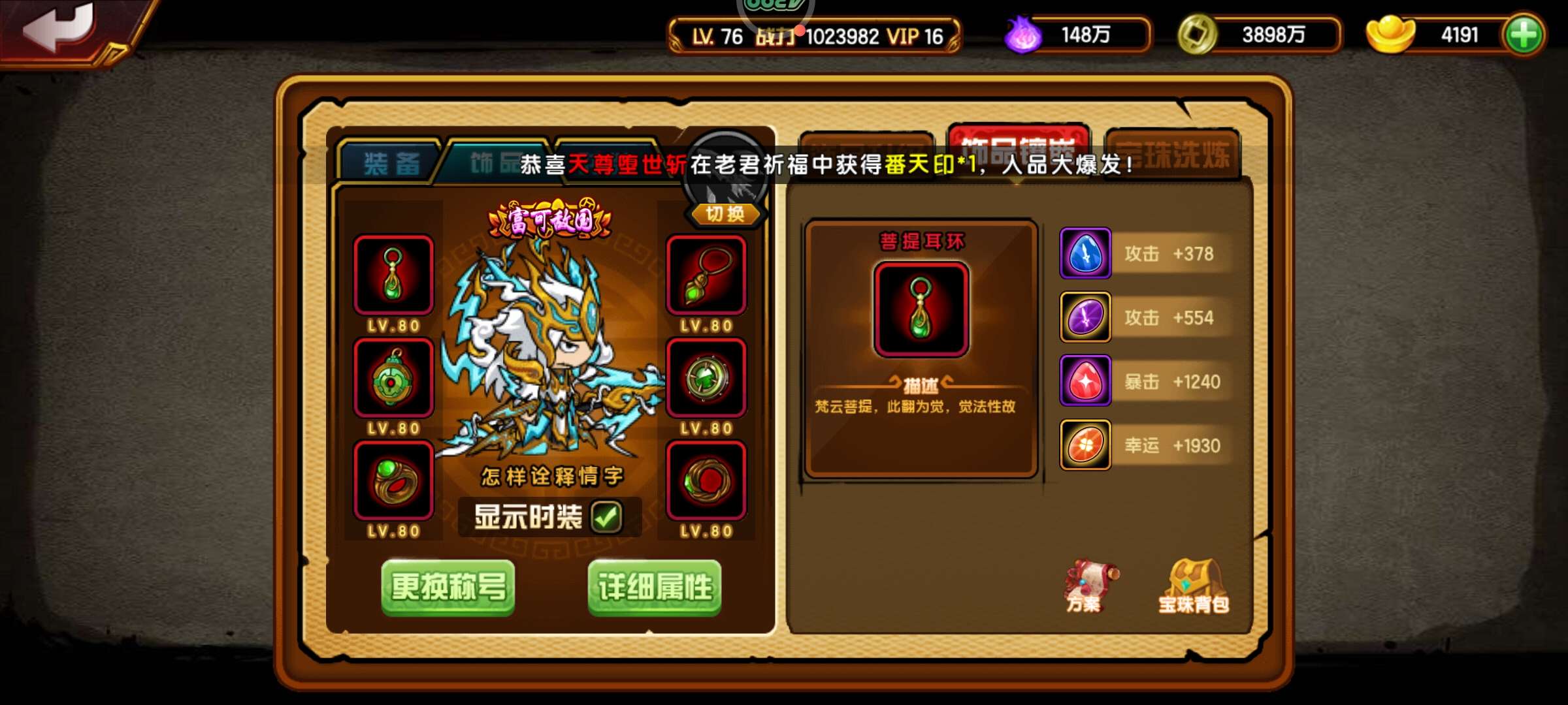 百万起步龙,4红经文三星九耀三阶蛇坐骑狐狸翅膀幽冥法宝炉子外加无双百万龙和造4端游百万鬼戒沙