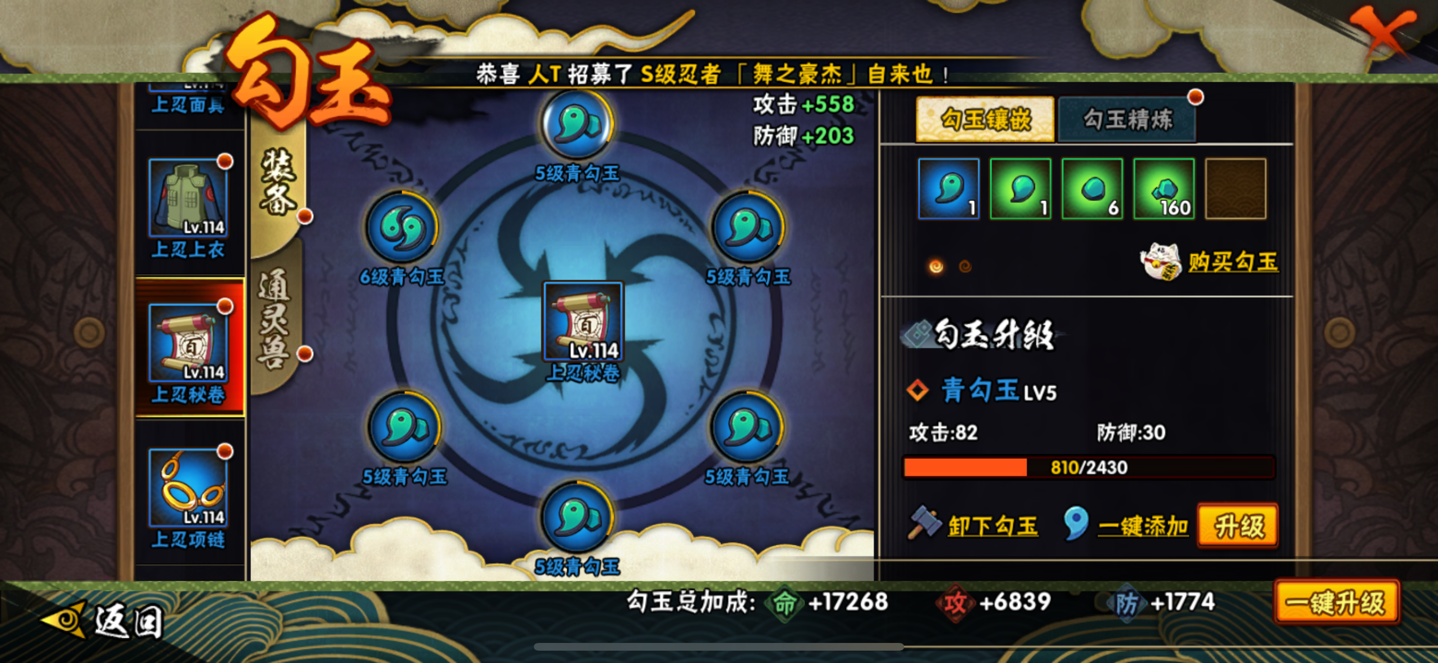 勾玉全解锁19800金币新高招49片详细快图片忍法贴已买霸体4级过年新年理财霸体买10级QQ音乐也有会员还有两次团本没有用还有一个究