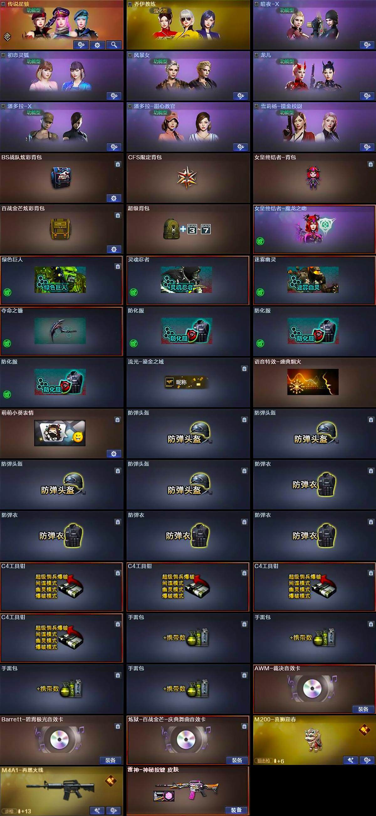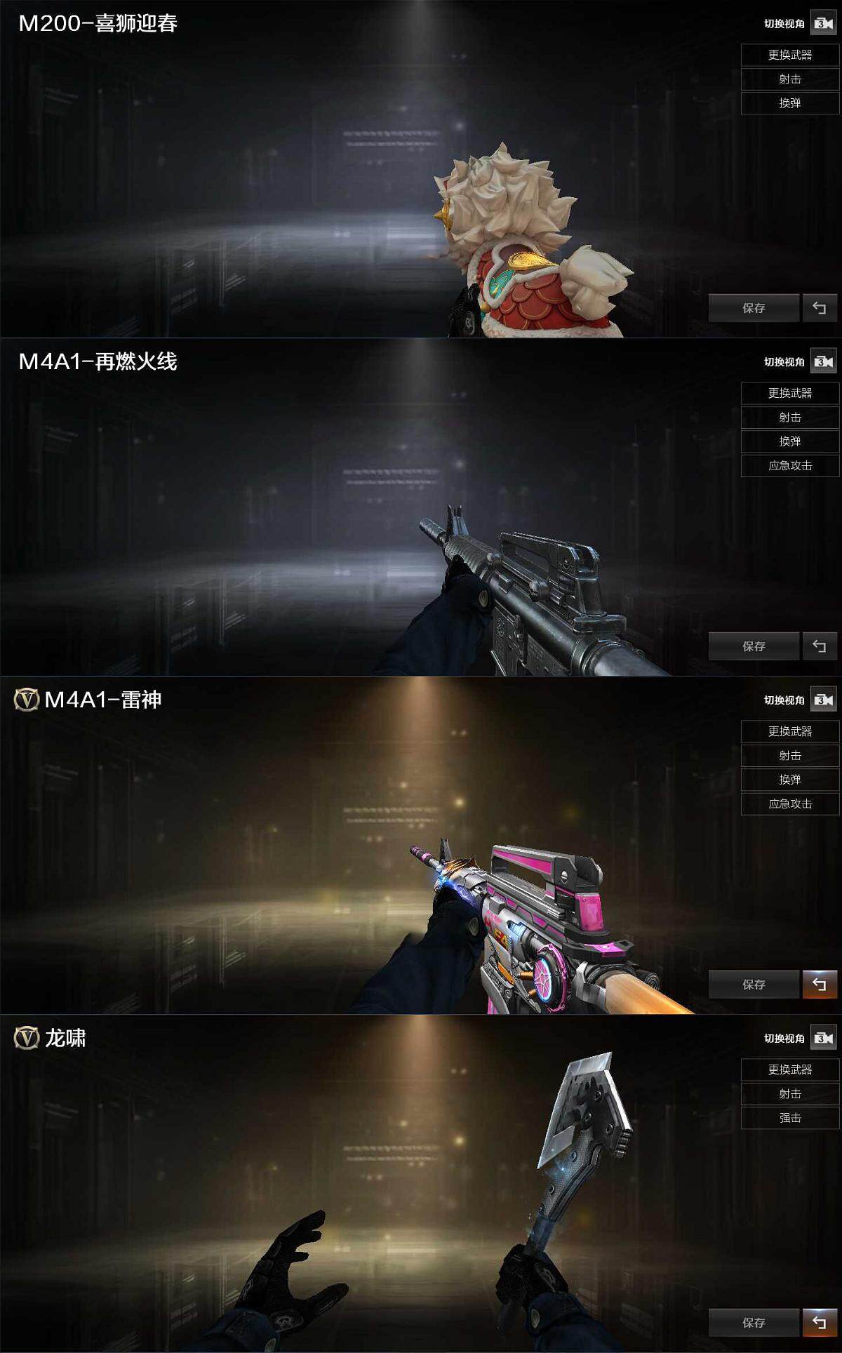 【皮肤】:M200-喜狮迎春,裁决-胜者为王 皮肤,M4A1-再燃火线,雷神-神秘按键 皮肤,轻型军用手斧-再燃火线