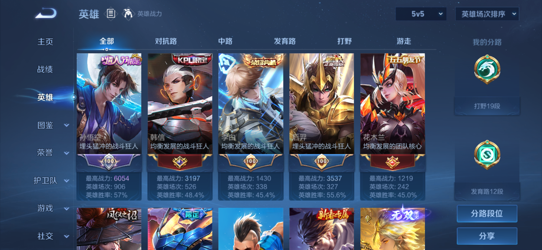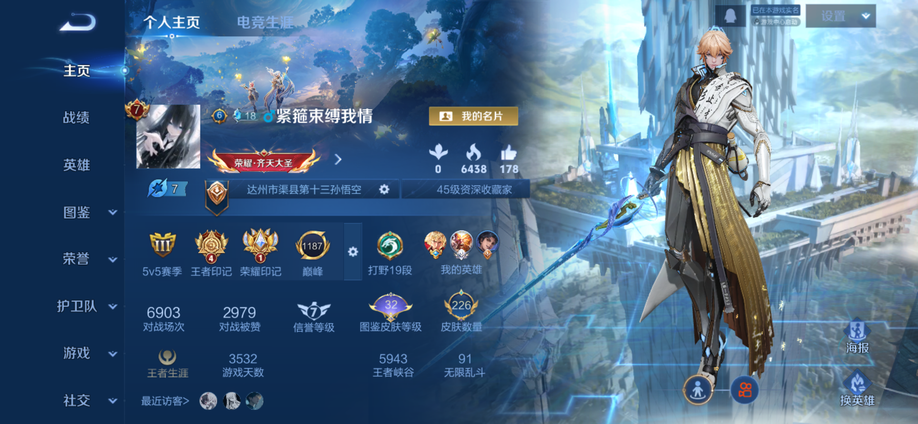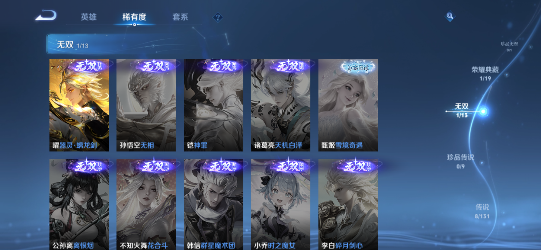 V7 皮肤226 英雄129 至尊星耀 荣耀典藏1 无双皮肤1 传说8 其他皮肤222