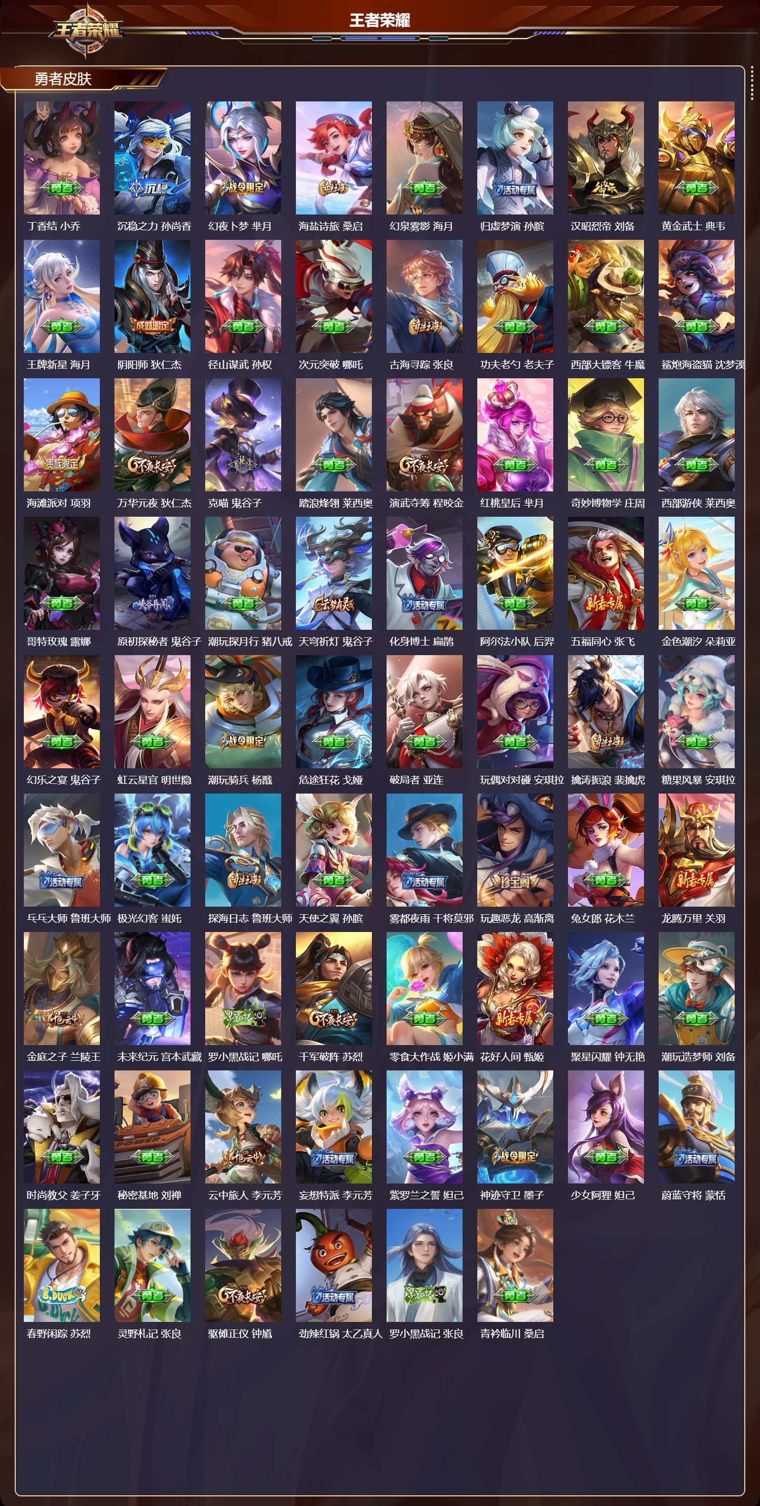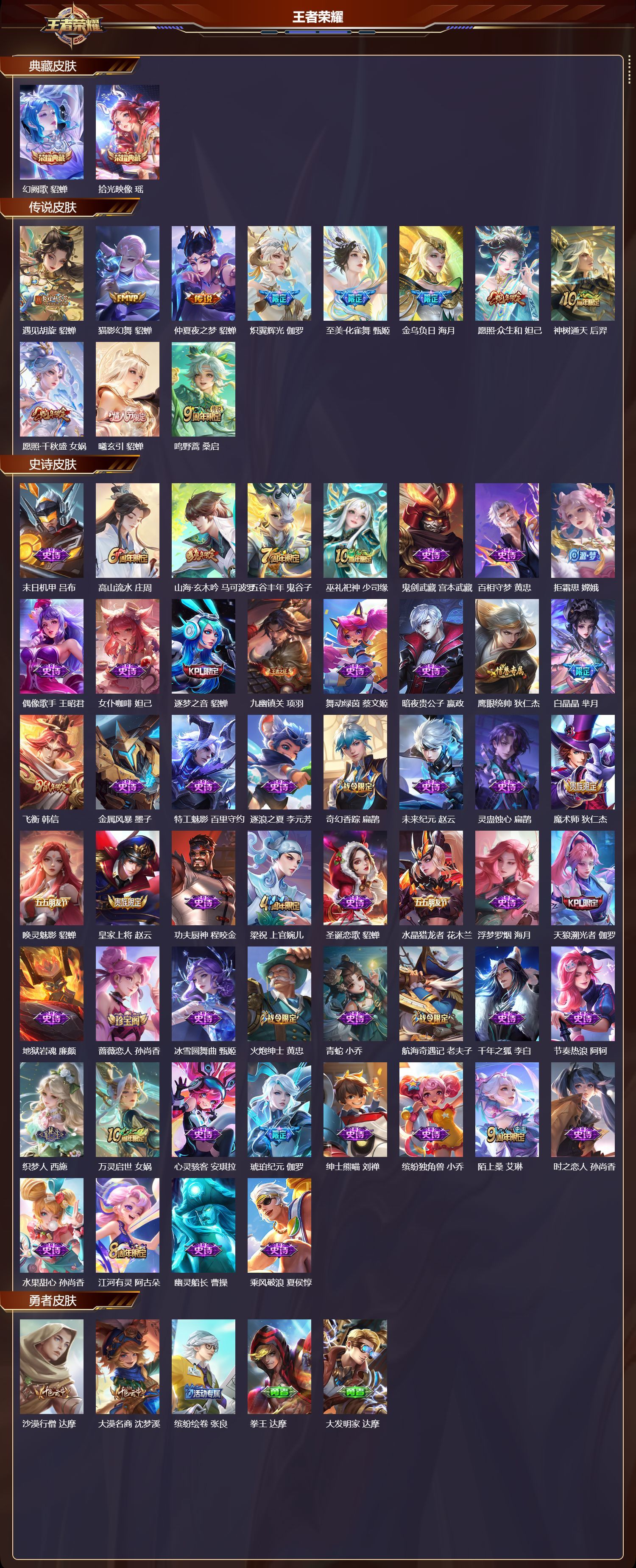 安卓QQ/永恒钻石/187皮肤/124英雄/2典藏/0珍品无双/0无双/0珍品传说/11传说/52史
